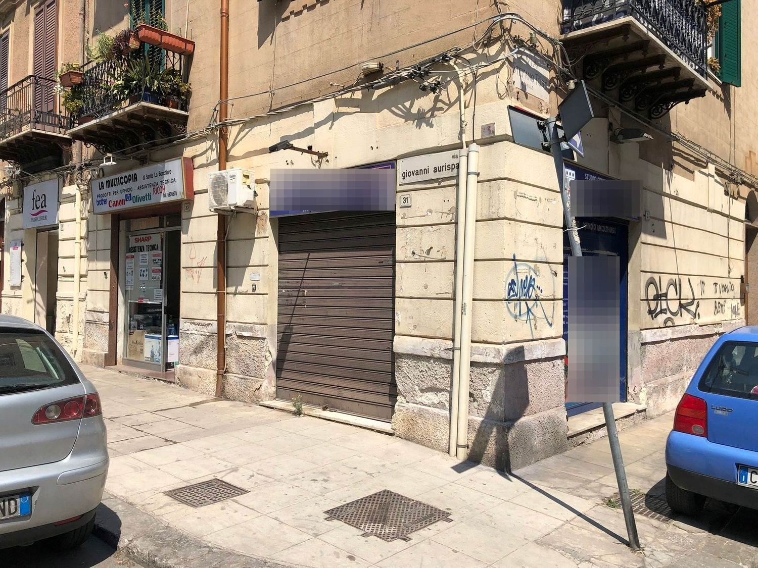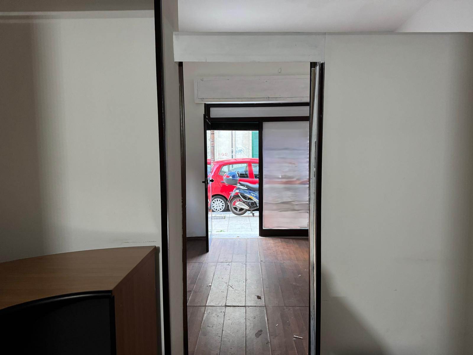 In via Giovanni Aurispa we have a commercial space consisting of two rooms and two toilets with anteroom. It has two windows on the street, one on Via Aurispa with an electric shutter and one on Via Turr with a manual shutter.
