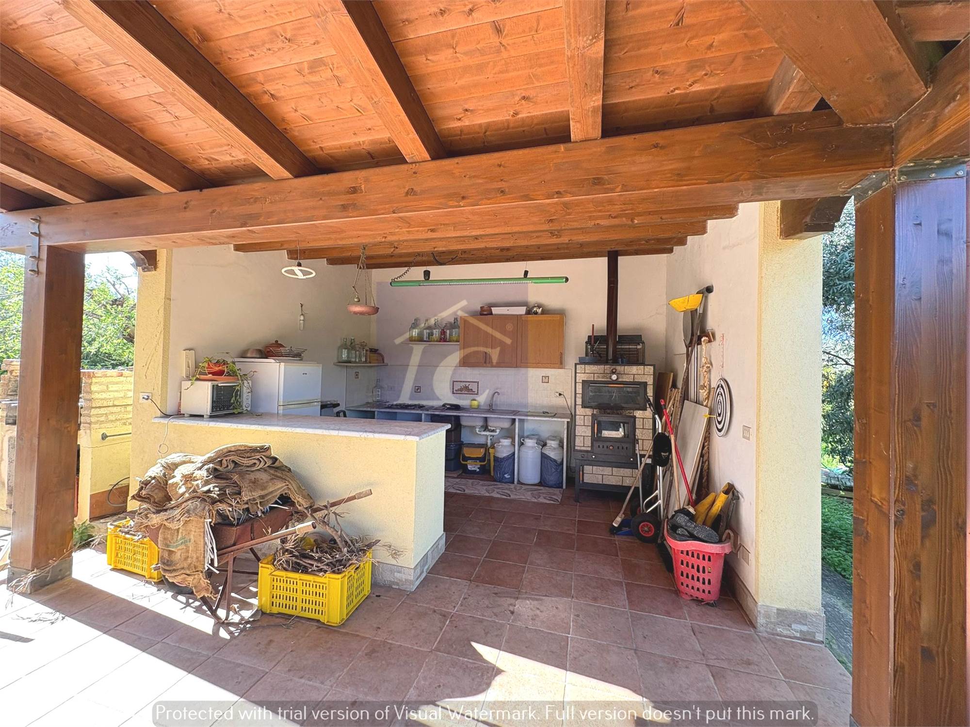 Completing the property outside is a porticoed cooking area with a professional 90x90 Vulcano brand wood-fired oven and barbecue.