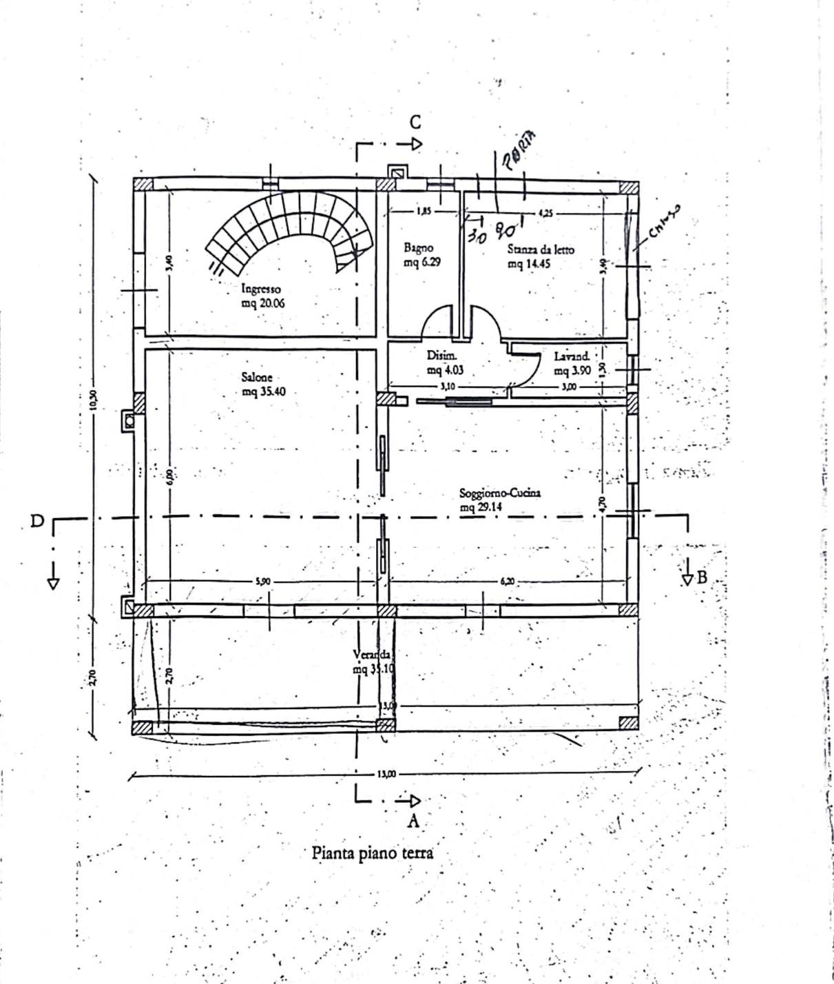 The current building, although connected by an internal brick and iron staircase, consists of two residential units with water, gas, electricity, and heating systems. These units are designed to ensure both the complete autonomy of the two floors and the possibility of unified management.