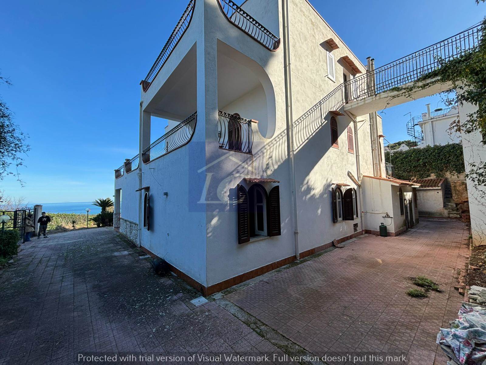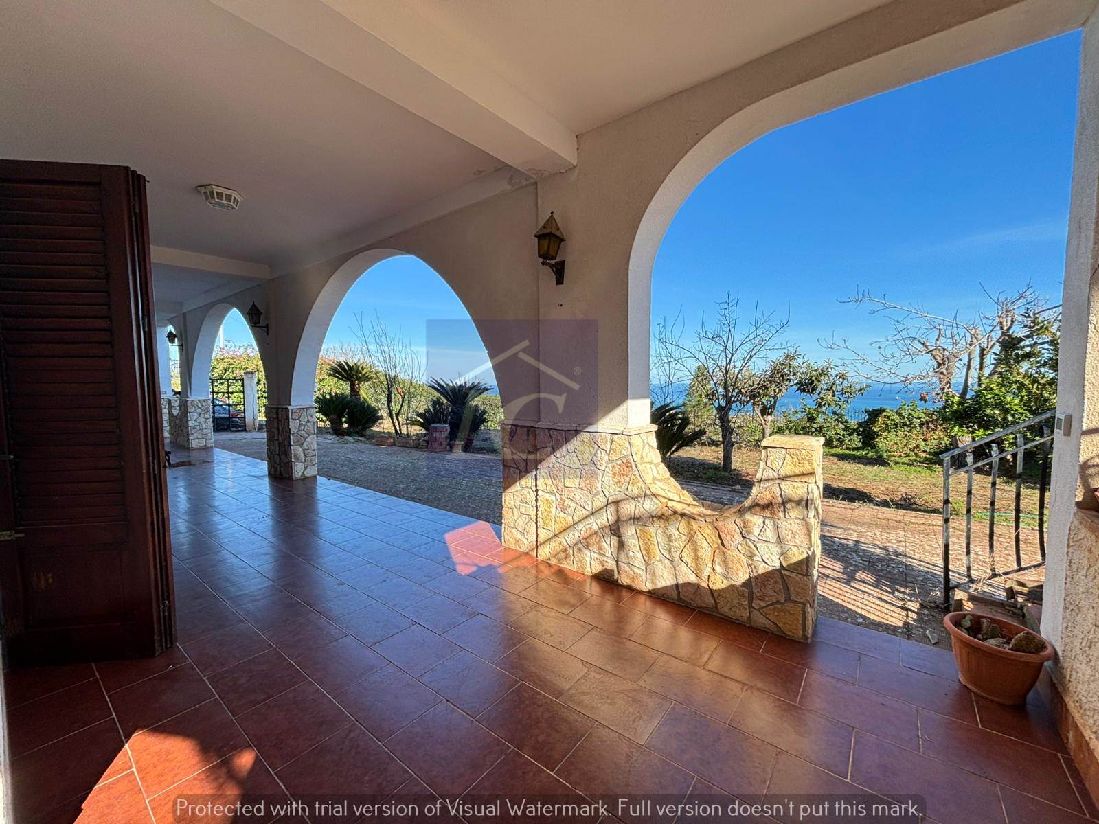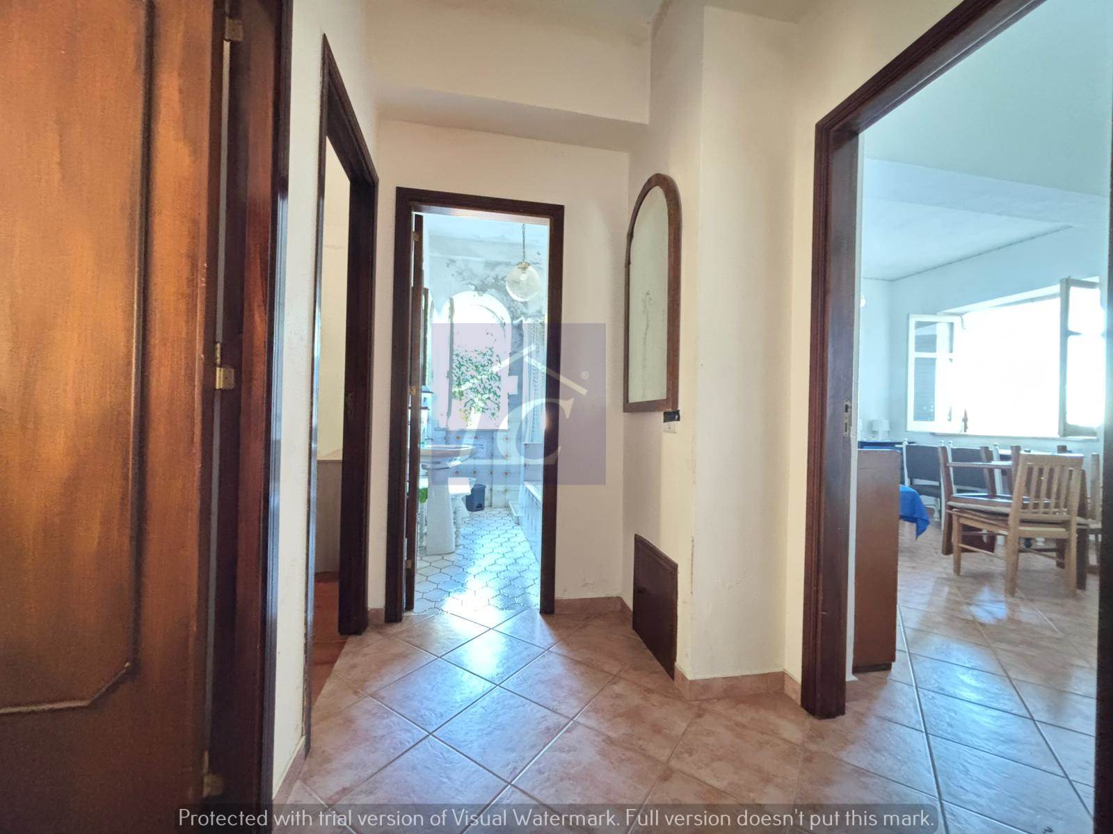 Ground floor apartment - entrance from a corner portico of approximately 40 square meters on a very large living area, attached brick kitchen also with opening onto the portico. From the living area you enter a hallway where we find the sleeping area with three double bedrooms and a bathroom. An external masonry staircase leads to the first floor, which consists of a hallway entrance attached to the living area with a double opening onto the semi-porticoed corner terrace, sea view, two bathrooms and two bedrooms.
