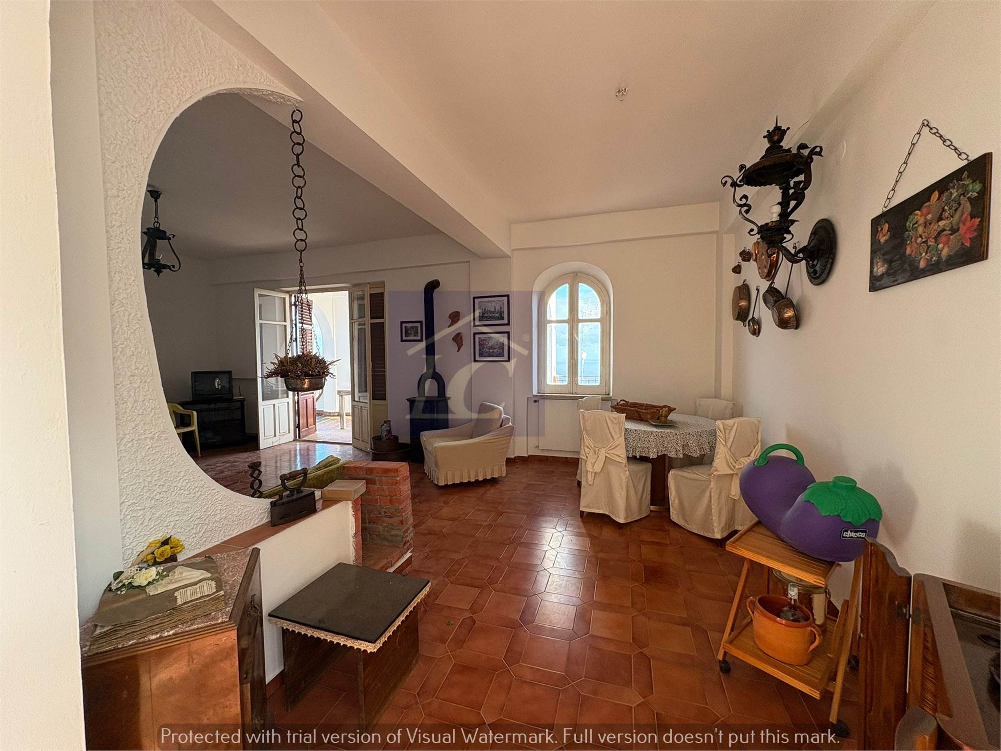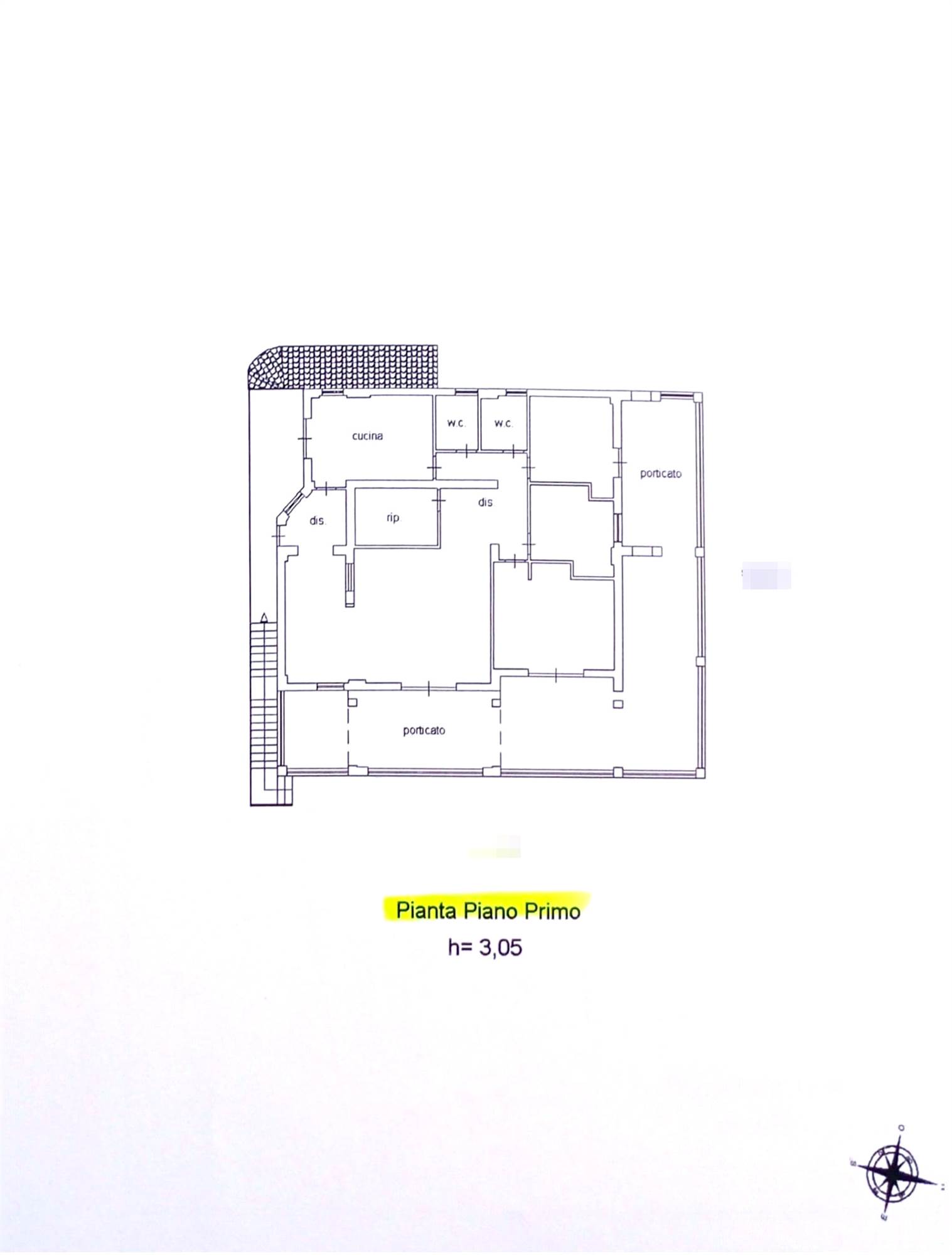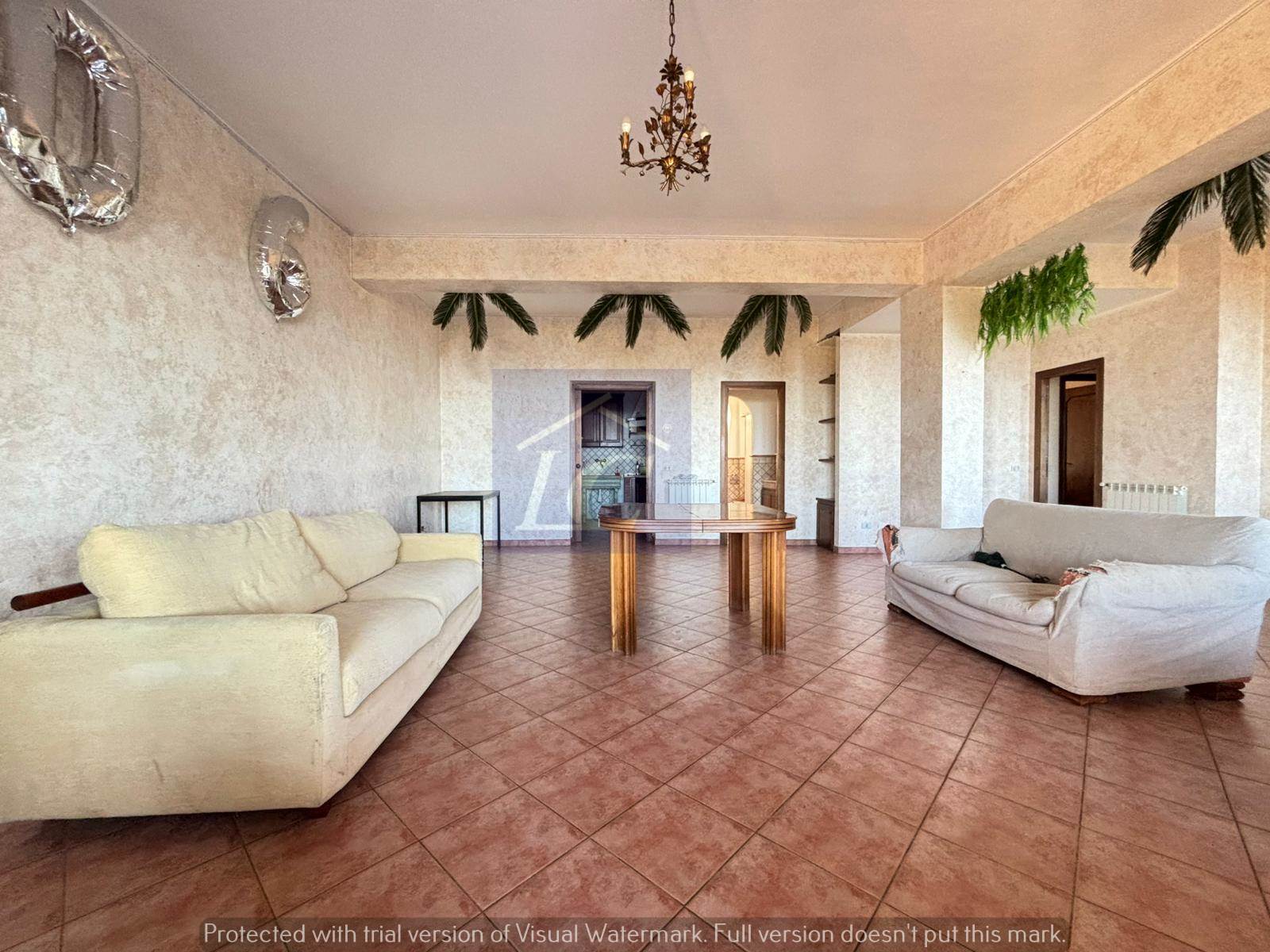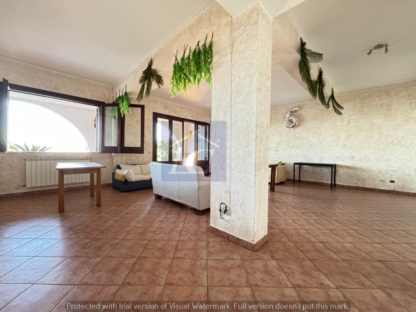 Ground floor apartment - entrance from a corner portico of approximately 40 square meters on a very large living area, attached brick kitchen also with opening onto the portico. From the living area you enter a hallway where we find the sleeping area with three double bedrooms and a bathroom. An external masonry staircase leads to the first floor, which consists of a hallway entrance attached to the living area with a double opening onto the semi-porticoed corner terrace, sea view, two bathrooms and two bedrooms.