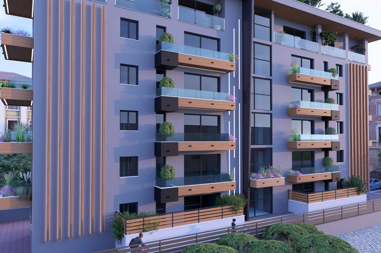 In Viale Regione Siciliana N.O. disponiamo di un appartamento di nuova costruzione in un palazzo di 6 elevazioni oltre piano cantinato destinato a locale tecnico condominiale, al piano terra saranno ubicati posti auto scoperti per ogni unità immobiliare.