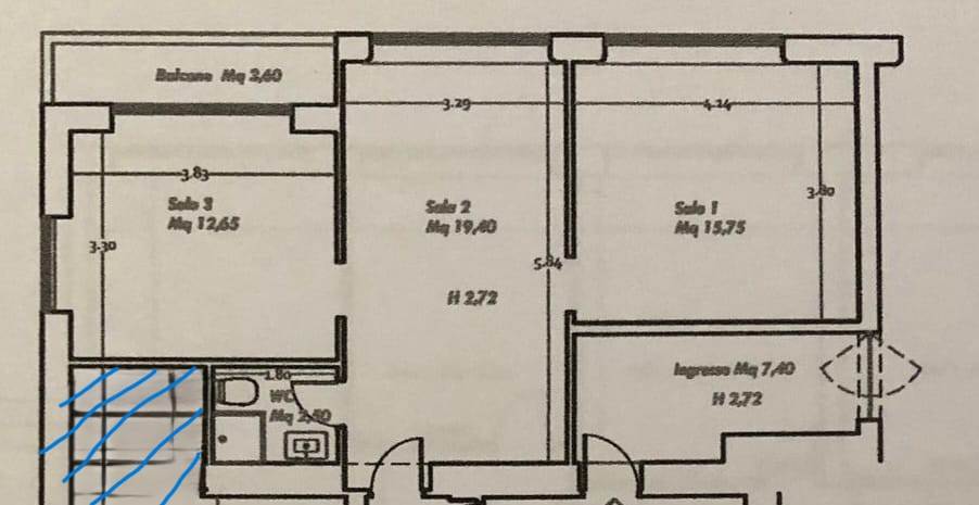 L'ufficio è così disposto: ingresso su disimpegno, tre ampie stanze di cui una con balcone e wc.