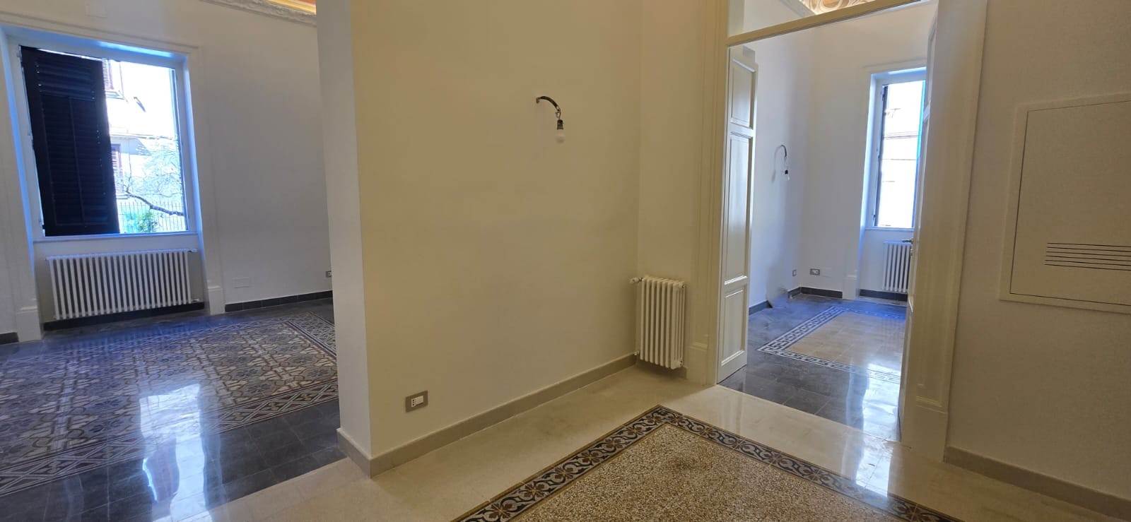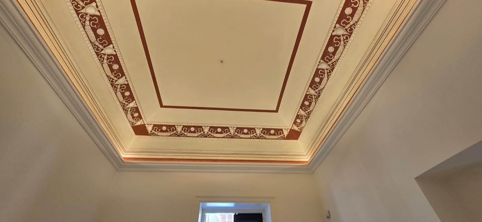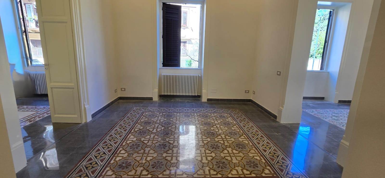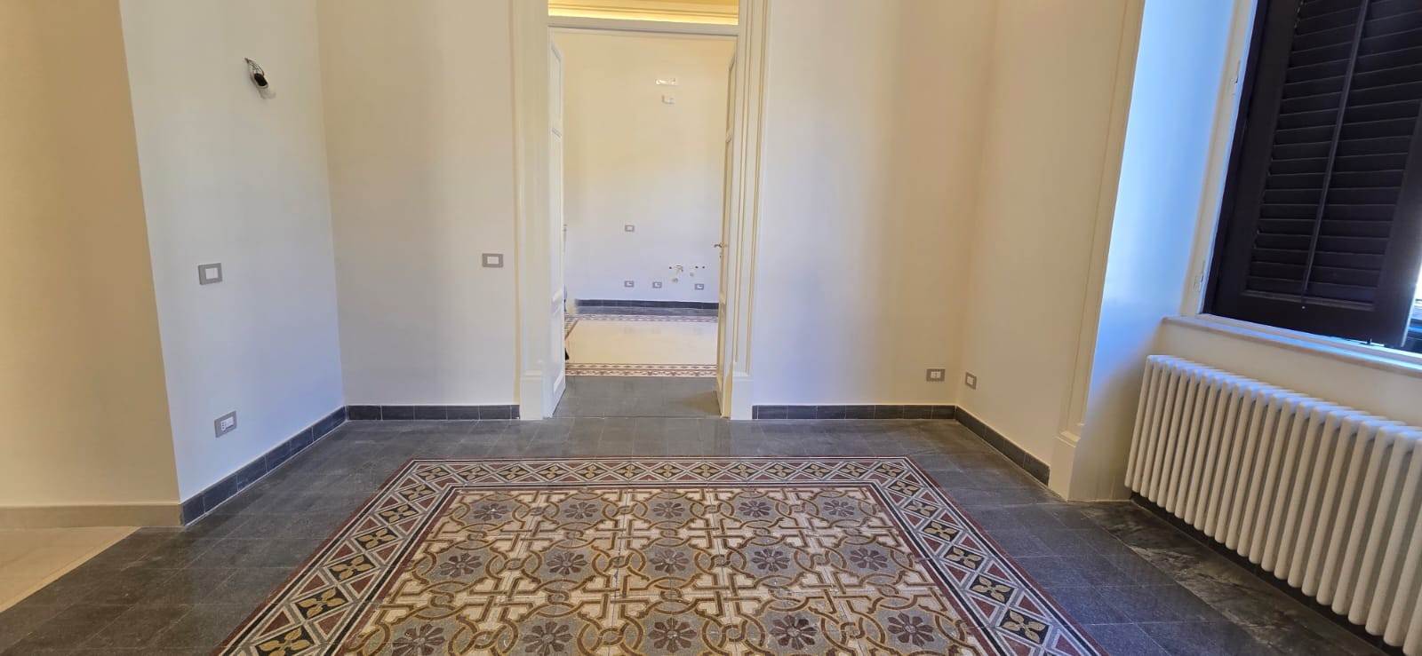 I soffitti alti, con gli affreschi dell'epoca ristrutturati e la pavimentazione in cementine siciliane, rendono questo immobile unico per gli amanti del genere.