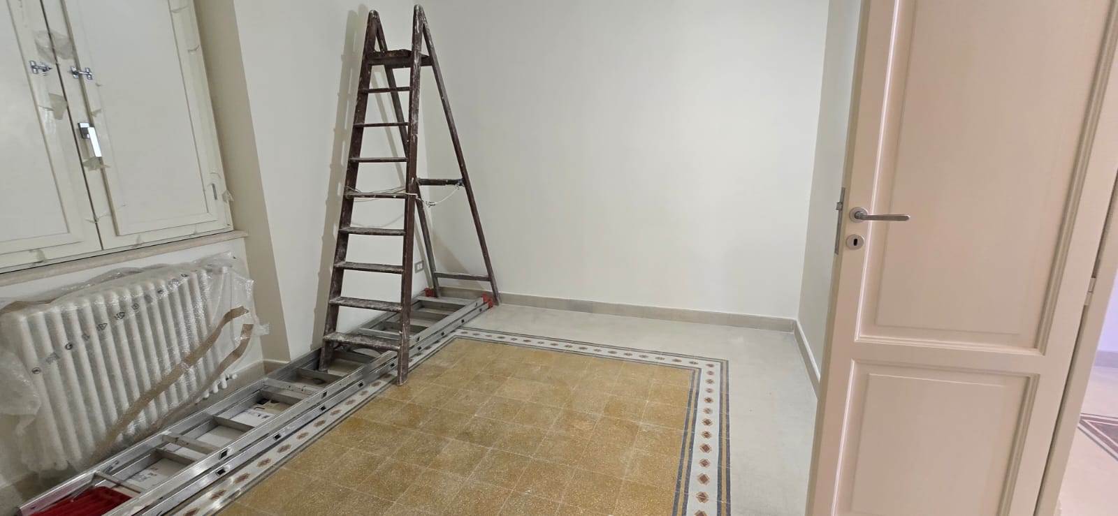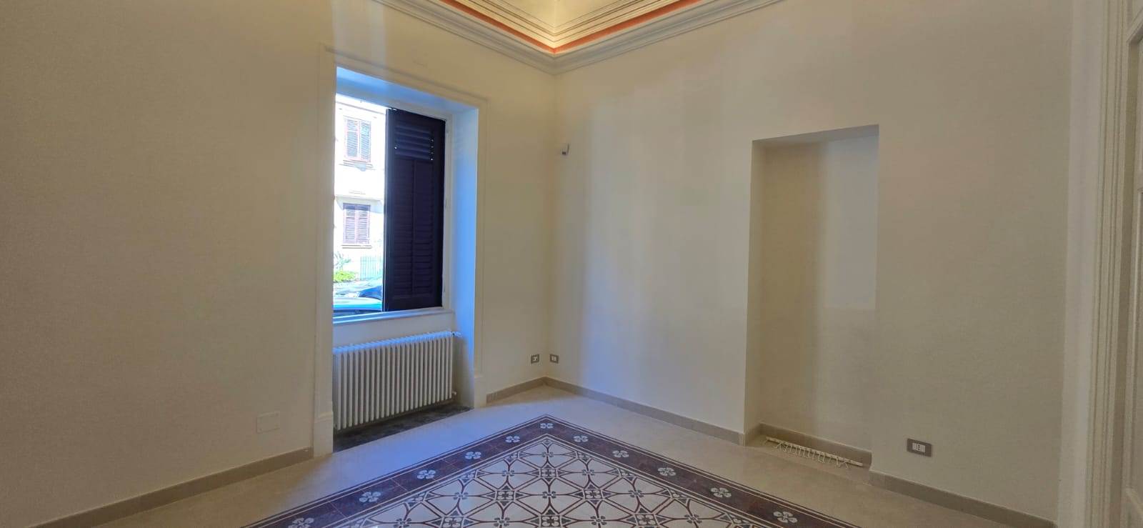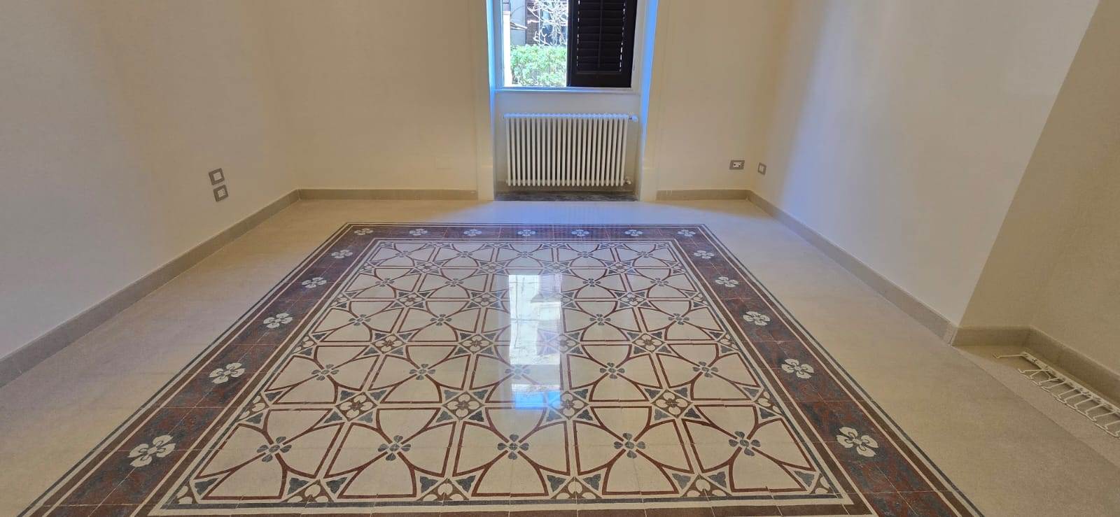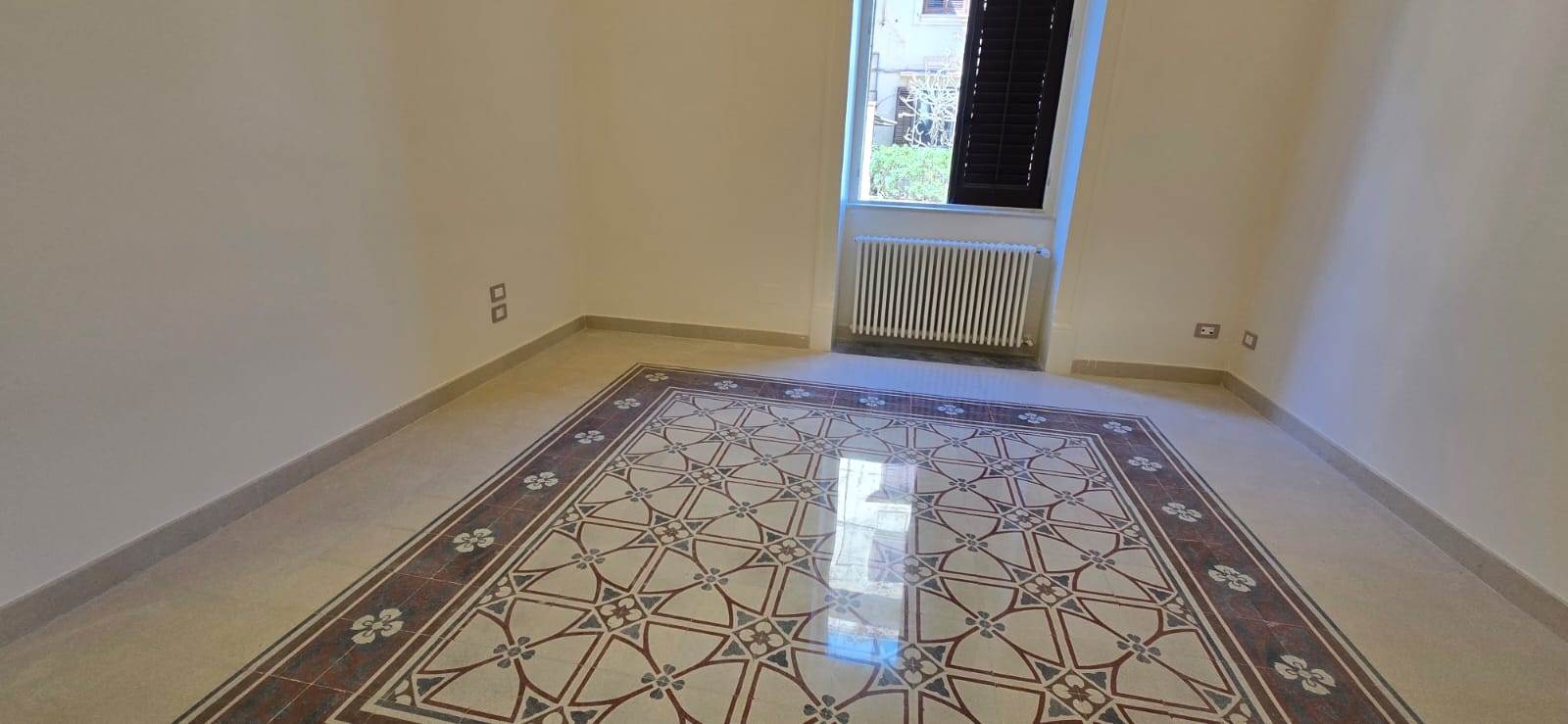 I soffitti alti, con gli affreschi dell'epoca ristrutturati e la pavimentazione in cementine siciliane, rendono questo immobile unico per gli amanti del genere.