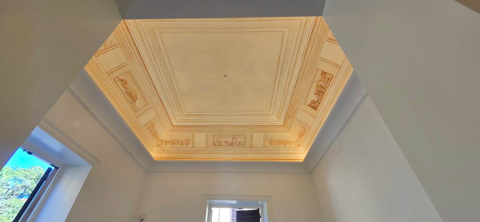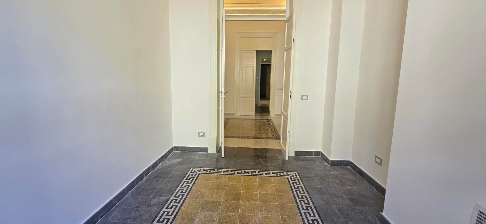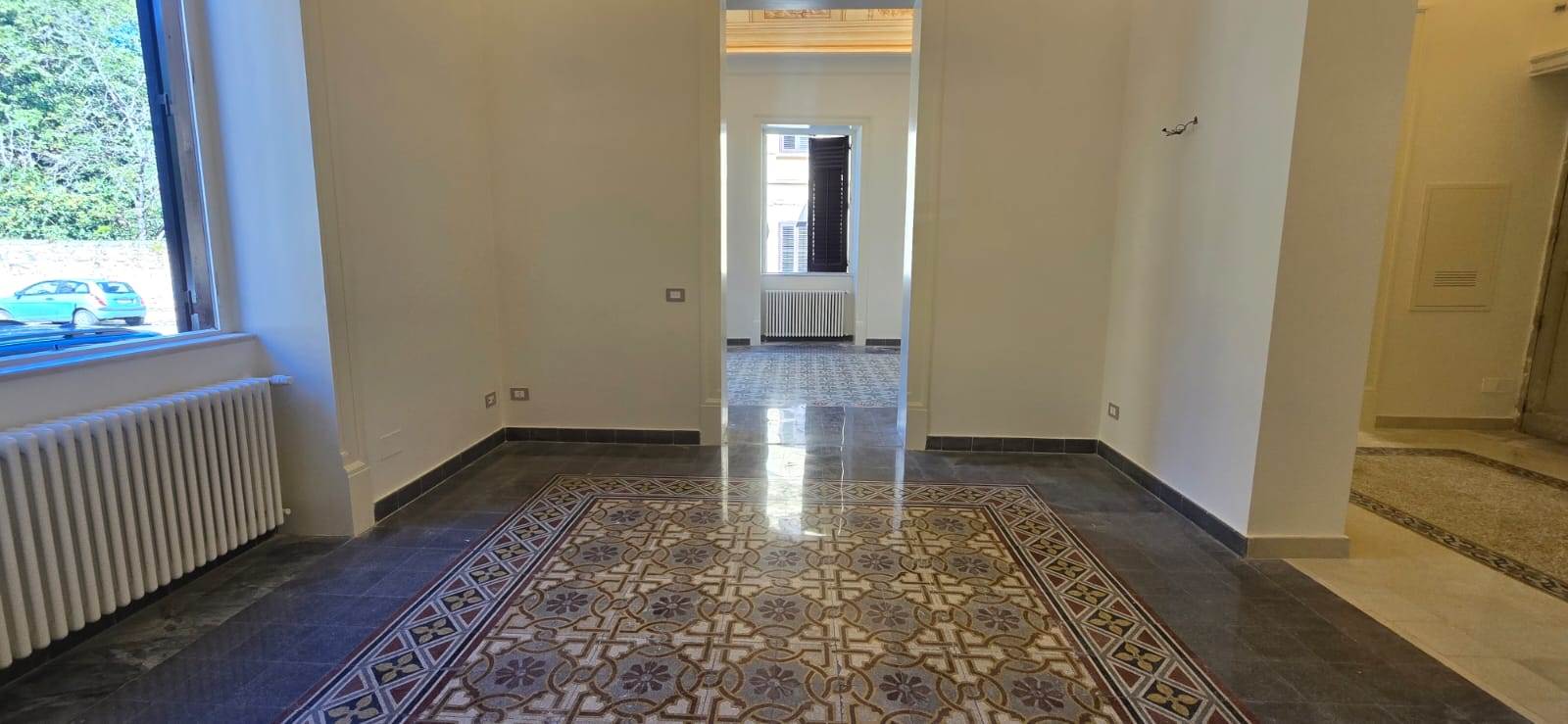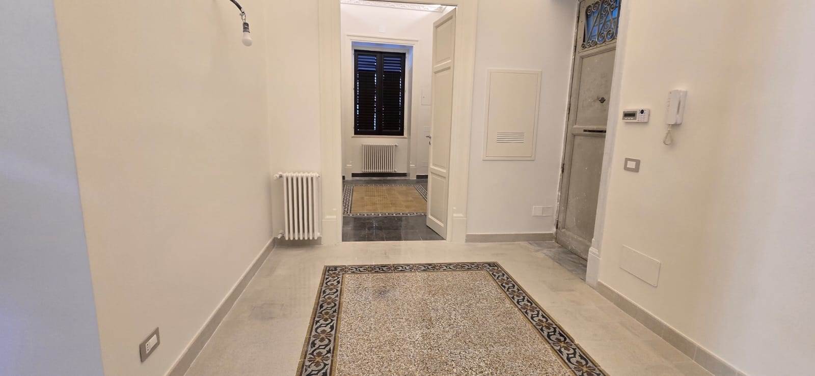 I soffitti alti, con gli affreschi dell'epoca ristrutturati e la pavimentazione in cementine siciliane, rendono questo immobile unico per gli amanti del genere.