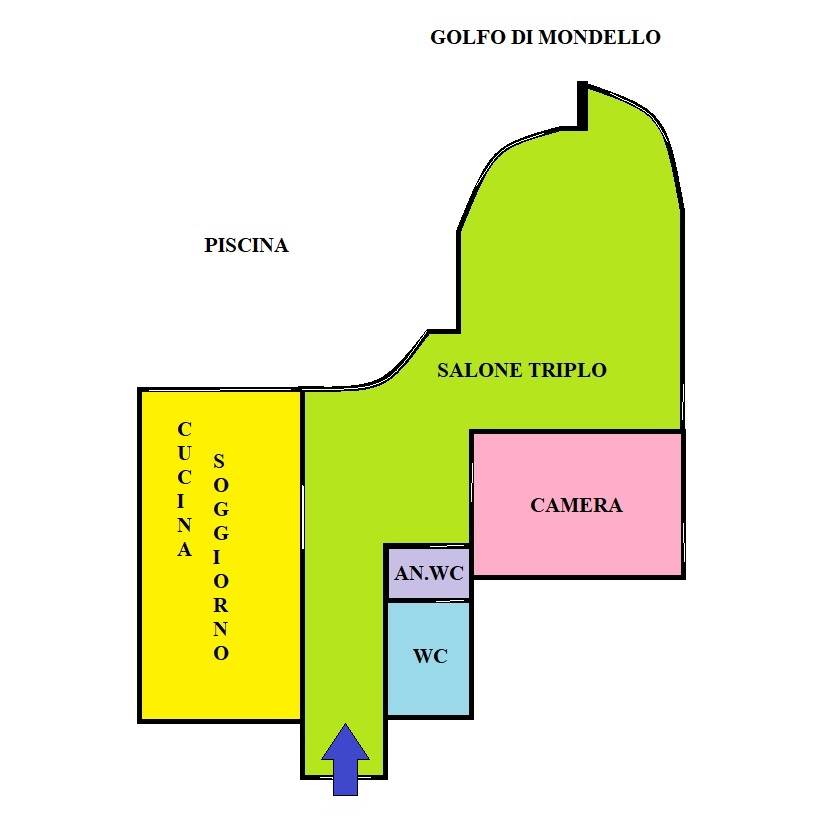 L'unità immobiliare accoglie con un ampio ingresso che si apre su un luminosissimo salone triplo. Le sue vetrate offrono una vista mozzafiato panoramica che abbraccia l'intero Golfo di Mondello, e il verde circostante, con uno sguardo privilegiato sulla splendida piscina del residence. Completano l’immobile una cucina/soggiorno verandata, bagno e una camera da letto matrimoniale.