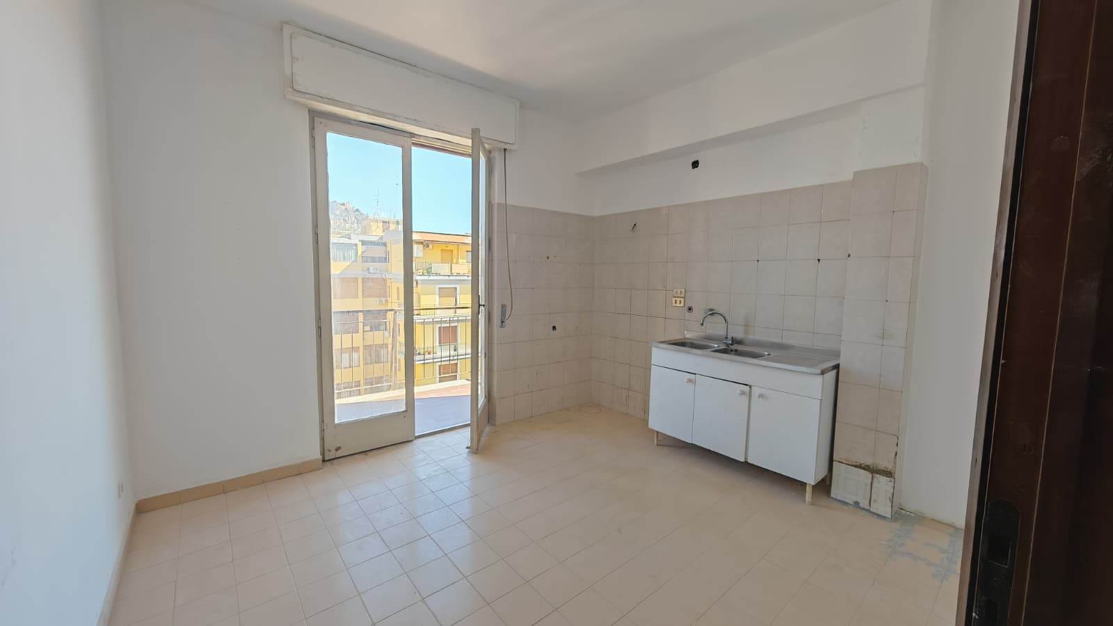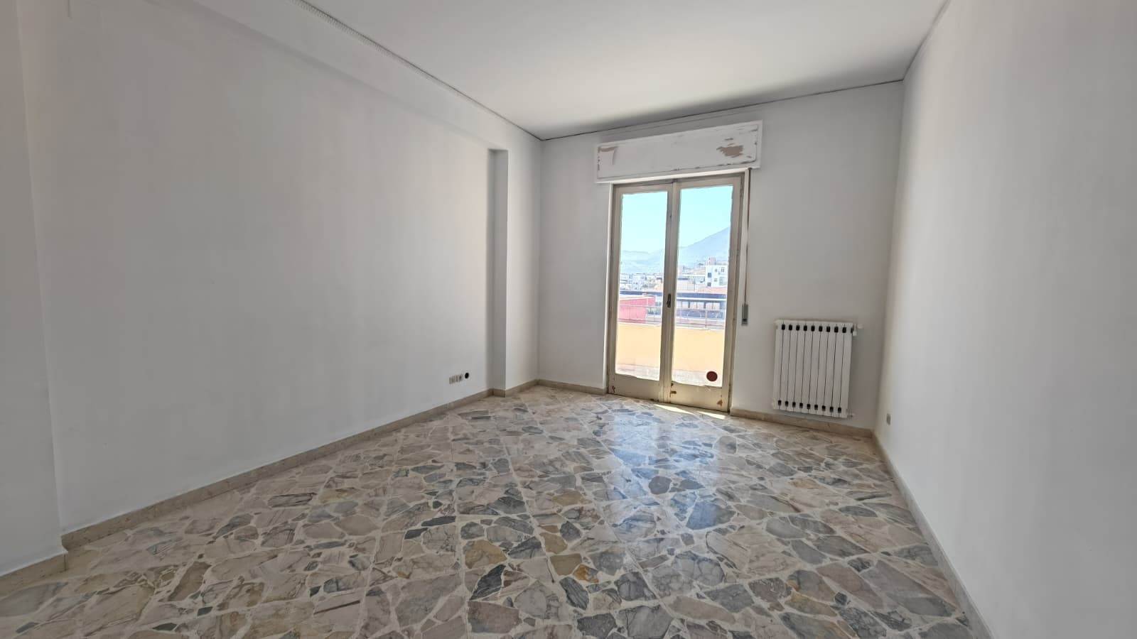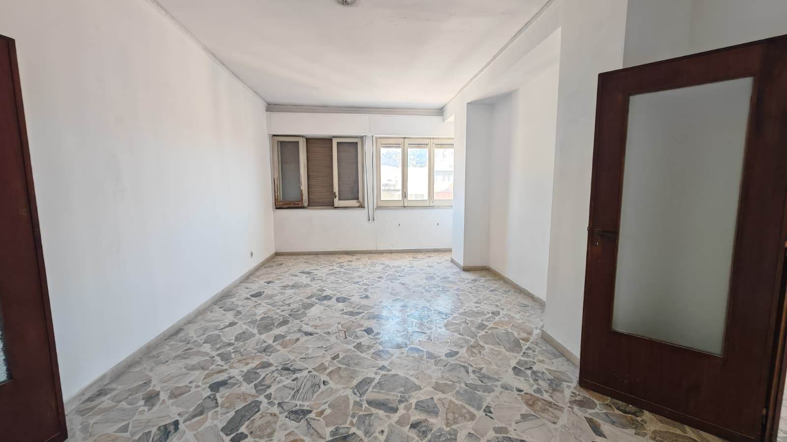 Ingresso ampio, salone, 2 camere da letto, cucina abitabile, bagno grande (precedentemente 2), grande camera su terrazza verandata (sanata) due grandi balconi vivibili e panoramici.
