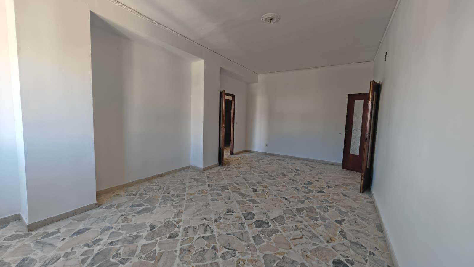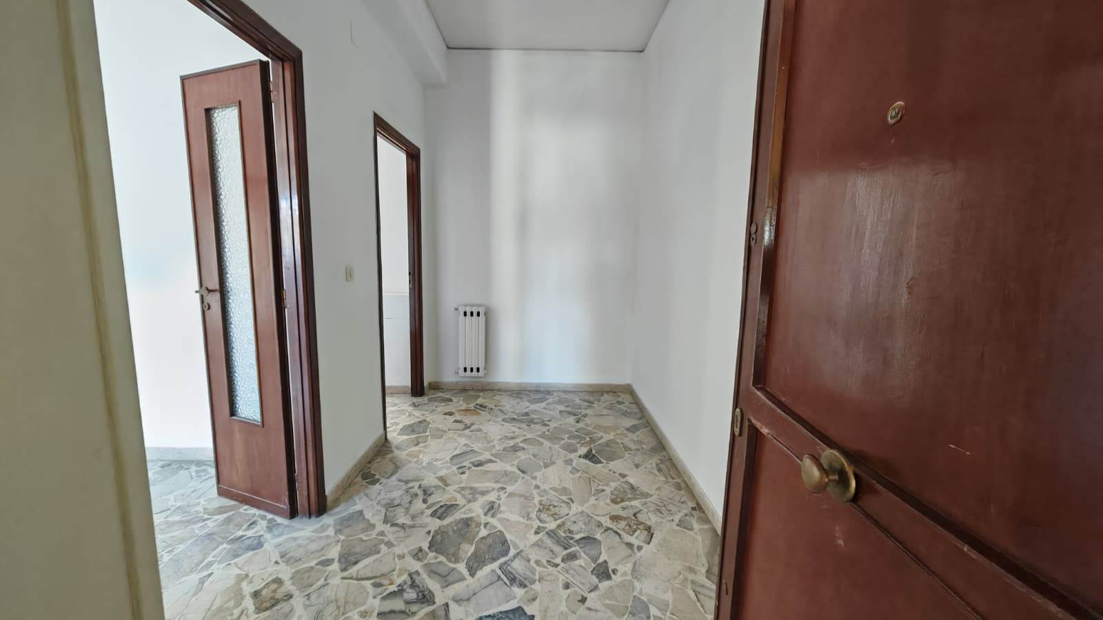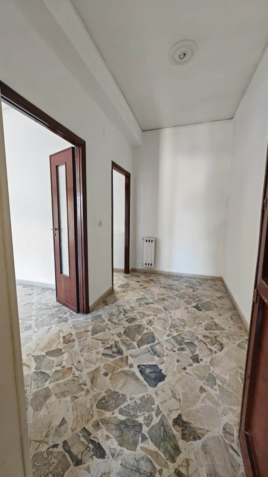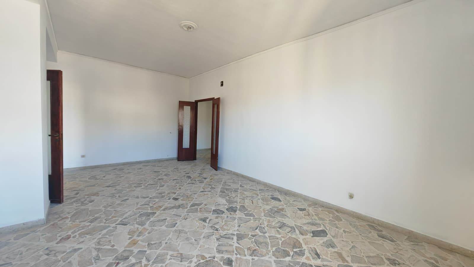 Ingresso ampio, salone, 2 camere da letto, cucina abitabile, bagno grande (precedentemente 2), grande camera su terrazza verandata (sanata) due grandi balconi vivibili e panoramici.