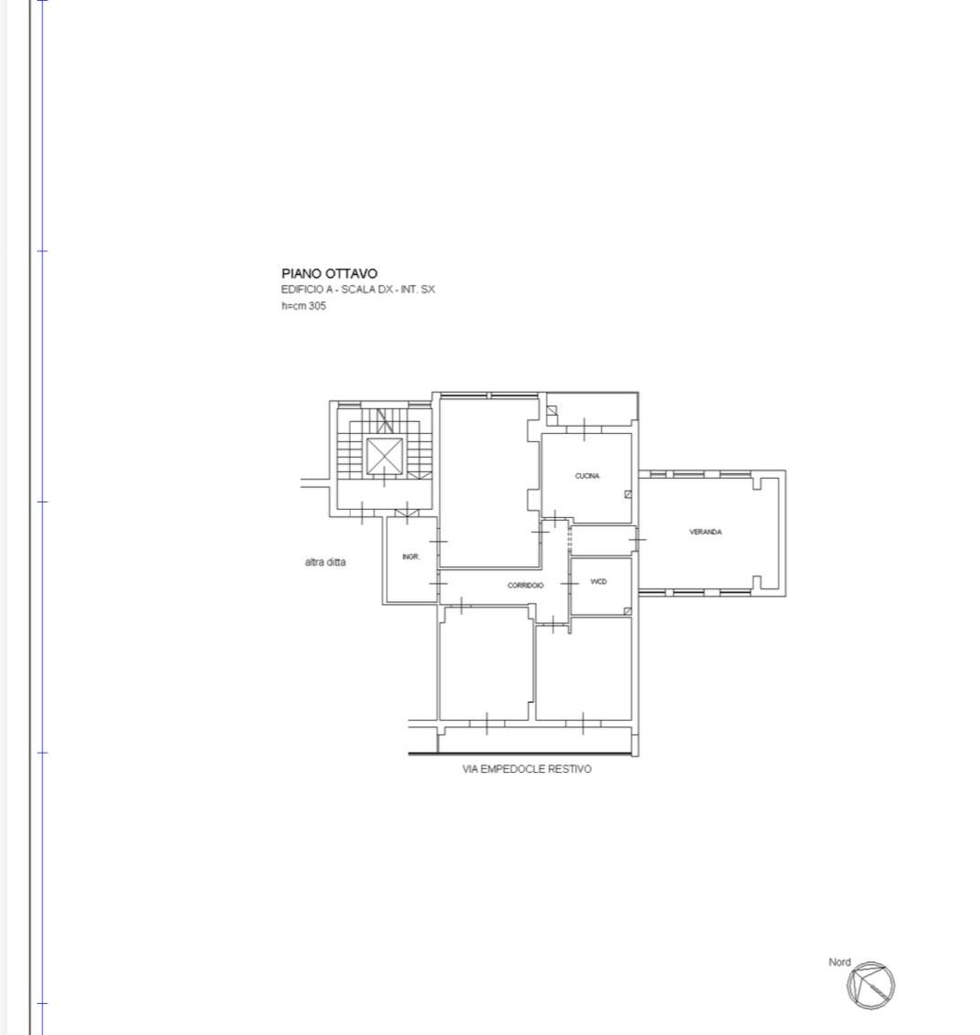 ZONA RESTIVO/DE GASPERI: In via Empedocle Restivo proponiamo in vendita splendido appartamento panoramico su tutta la città. con doppia esposizione. Con una superficie di 145 mq. Posto al 8° e attualmente cosi diviso: