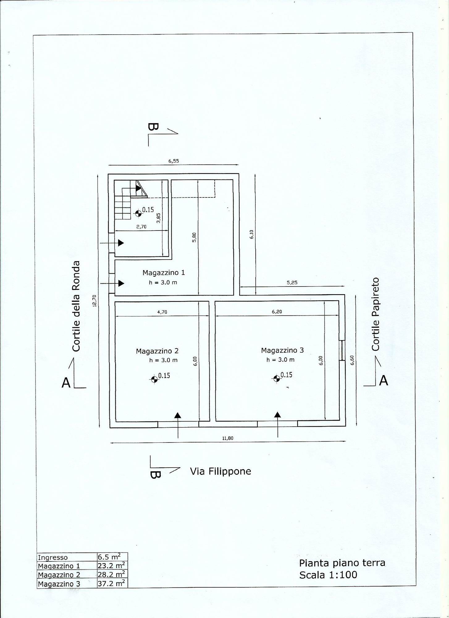 Attualmente l’ immobile è costituito da 3 magazzini posti al piano terra per un totale di 110 mq.