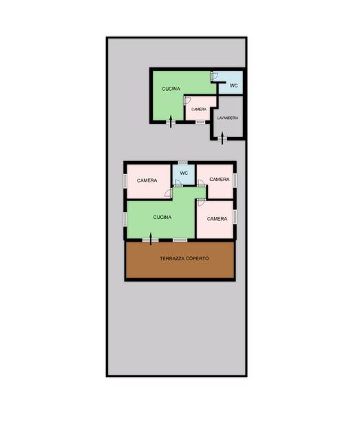La prima di 93 mq è costituita da ingresso su soggiorno cucina, tre camere, bagno e terrazzo coperto; la seconda di 57 mq è costituita da ingresso su cucina/soggiorno, cameretta, bagno e lavanderia.