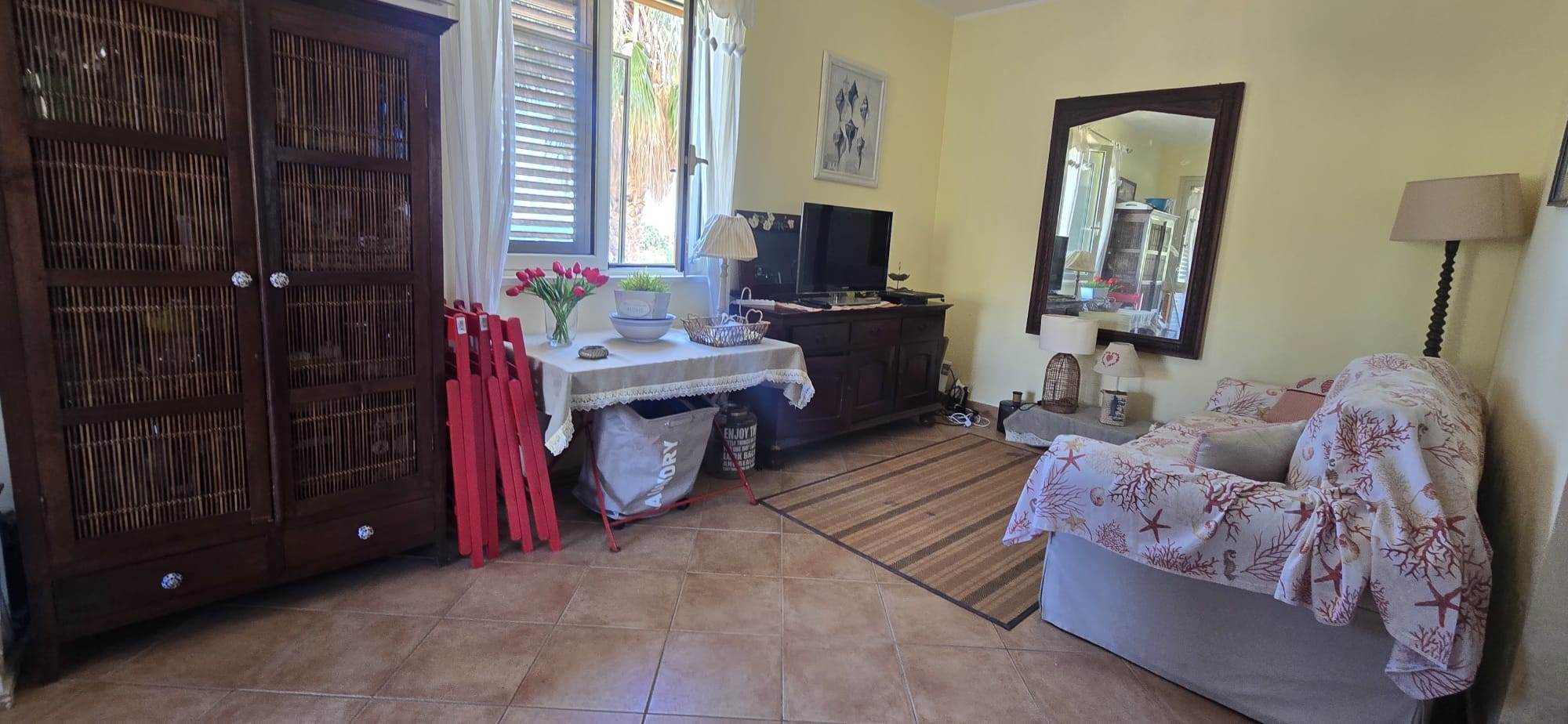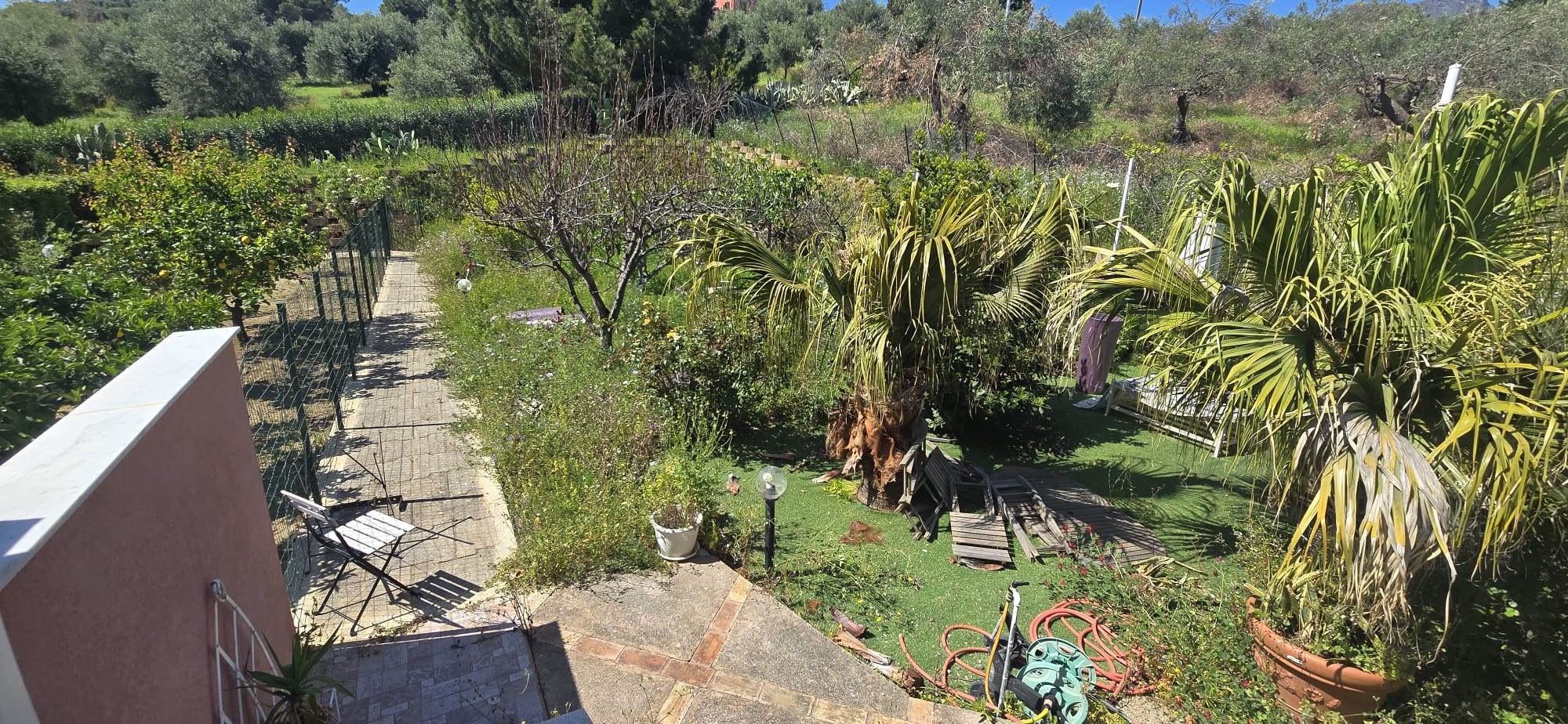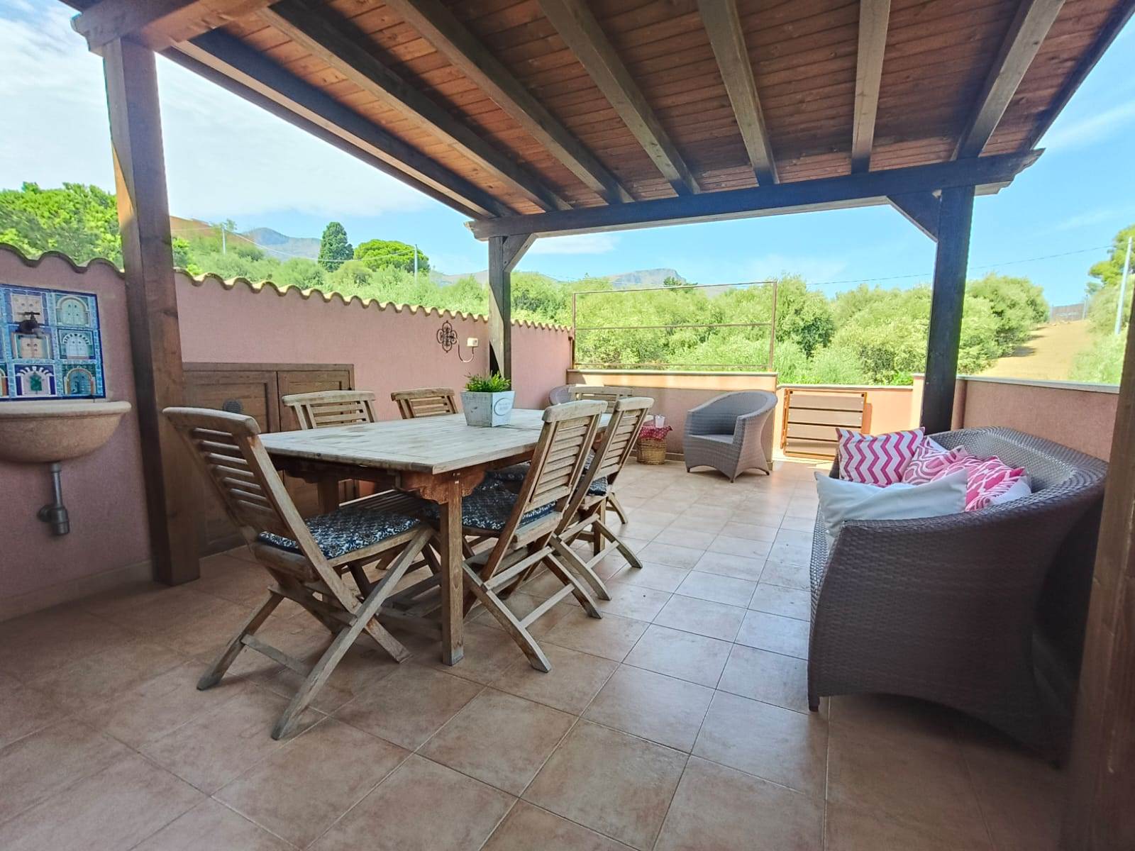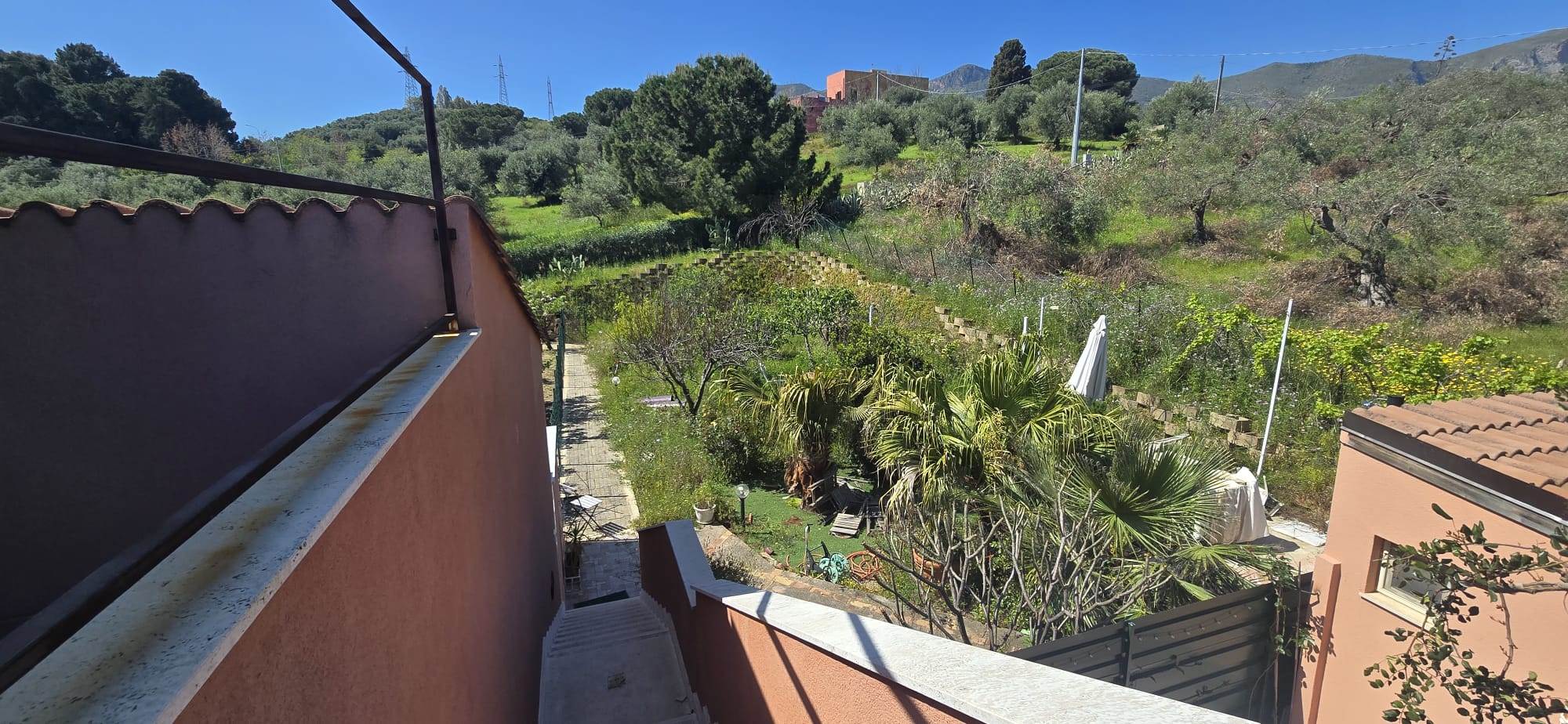 Nella splendida cornice della costa siciliana e precisamente tra Trabia e San Nicola L’Arena in Contrada Sant'Onofrio, all'interno dell'elegante Residence Acquamarina, proponiamo la vendita di una splendida porzione di villa con posizione ESCLUSIVA angolare dove si può godere di una vista mozzafiato e di tranquillità, di mq. 60 con corte esclusiva di circa mq. 200 ben curata (coltivato come giardino in parte e frutteto per la restante parte). La proprietà è così distribuita: dal cancello di accesso alla corte esclusiva si arriva alla scala dove si accede al primo piano che ci porta all'ampio terrazzo coperto dove troviamo l'ingresso dell'abitazione, qui ci accoglie una cucina a vista con comodo living, un piccolo disimpegno ci conduce alla zona notte composta da due camere servite da un servizio con doccia finestrato. l'appartamento viene venduto completo di tutti gli arredi e gli elettrodomestici. L'ampia terrazza coperta consente di godere di panorami suggestivi e mozzafiato. La proprietà è dotata di caldaia a gas per l'acqua sanitaria e per la cucina, infissi interni in pvc con vetrocamera, zanzariere, persiane esterne in pvc, ripostiglio, climatizzatori, arredi esterni sia per il terrazzo coperto che per il giardino ed infine funzionali ripostigli adiacenti al terrazzo. Per ogni villetta è riservato un posto auto davanti all'accesso della villa plurifamiliare. Il residence Acquamarina si trova a circa 1,5 km. dal mare, è dotato di due ingressi, un lido a mare esclusivo per i residenti, un servizio gratuito di navetta per il periodo estivo, campo di calcio, e grande sala riunioni con tavolo pingpong, mini club attrezzato con giochi e servizi. La pulizia del residence è sempre compresa nella quota condominiale.
