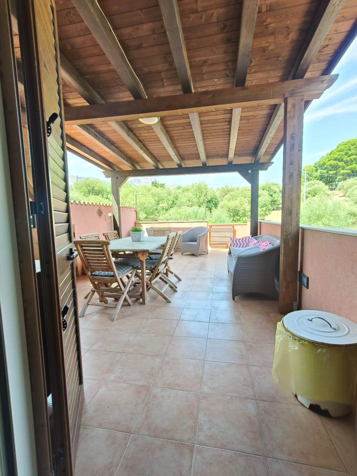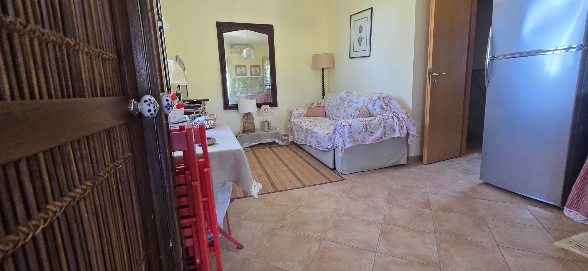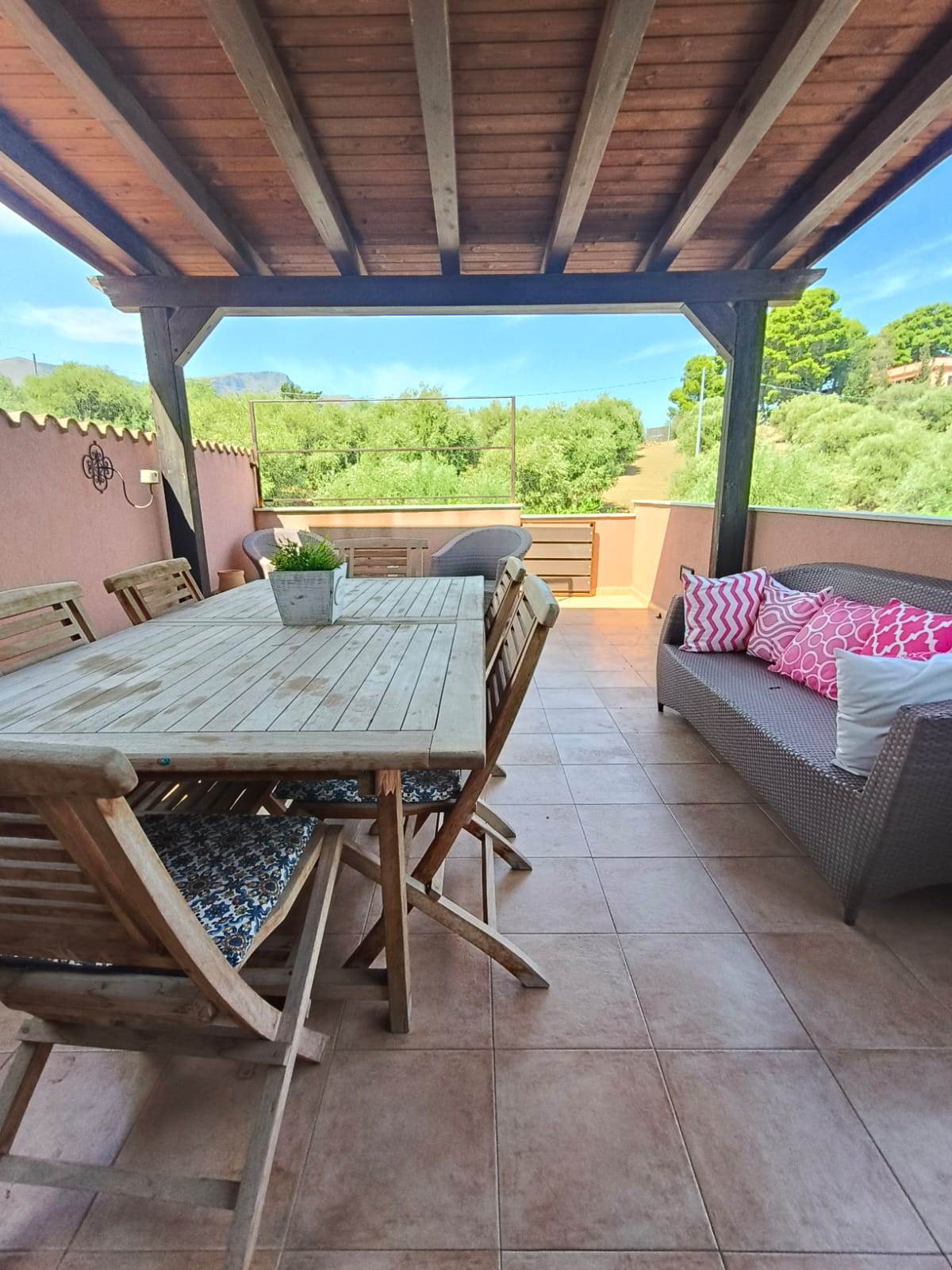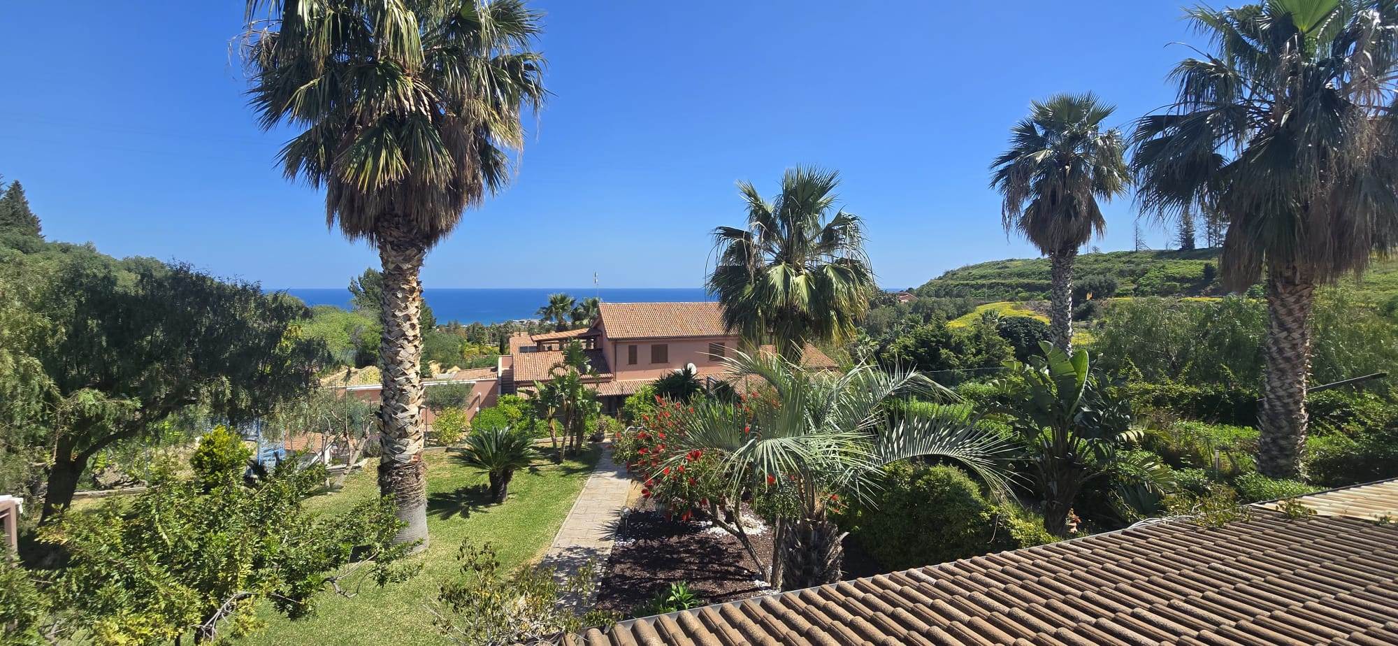 Nella splendida cornice della costa siciliana e precisamente tra Trabia e San Nicola L’Arena in Contrada Sant'Onofrio, all'interno dell'elegante Residence Acquamarina, proponiamo la vendita di una splendida porzione di villa con posizione ESCLUSIVA angolare dove si può godere di una vista mozzafiato e di tranquillità, di mq. 60 con corte esclusiva di circa mq. 200 ben curata (coltivato come giardino in parte e frutteto per la restante parte). La proprietà è così distribuita: dal cancello di accesso alla corte esclusiva si arriva alla scala dove si accede al primo piano che ci porta all'ampio terrazzo coperto dove troviamo l'ingresso dell'abitazione, qui ci accoglie una cucina a vista con comodo living, un piccolo disimpegno ci conduce alla zona notte composta da due camere servite da un servizio con doccia finestrato. l'appartamento viene venduto completo di tutti gli arredi e gli elettrodomestici. L'ampia terrazza coperta consente di godere di panorami suggestivi e mozzafiato. La proprietà è dotata di caldaia a gas per l'acqua sanitaria e per la cucina, infissi interni in pvc con vetrocamera, zanzariere, persiane esterne in pvc, ripostiglio, climatizzatori, arredi esterni sia per il terrazzo coperto che per il giardino ed infine funzionali ripostigli adiacenti al terrazzo. Per ogni villetta è riservato un posto auto davanti all'accesso della villa plurifamiliare. Il residence Acquamarina si trova a circa 1,5 km. dal mare, è dotato di due ingressi, un lido a mare esclusivo per i residenti, un servizio gratuito di navetta per il periodo estivo, campo di calcio, e grande sala riunioni con tavolo pingpong, mini club attrezzato con giochi e servizi. La pulizia del residence è sempre compresa nella quota condominiale.