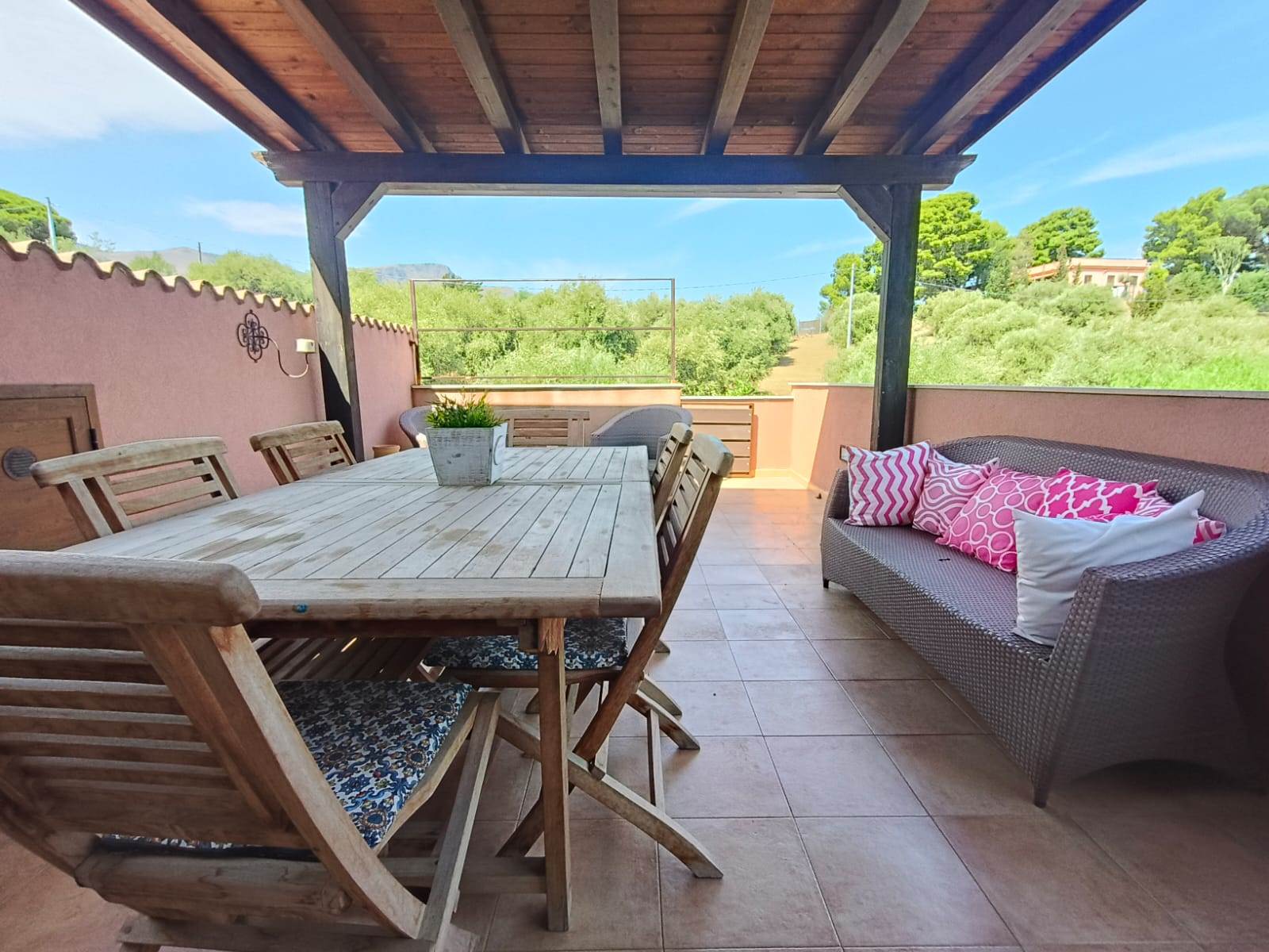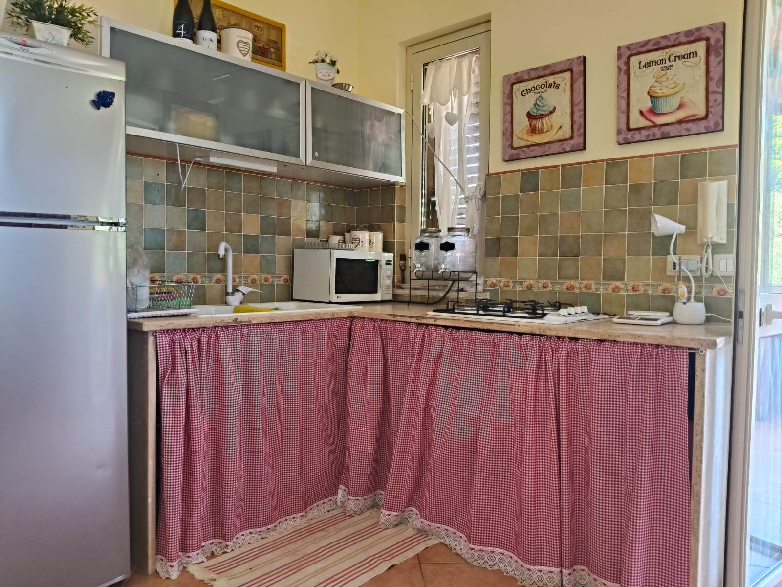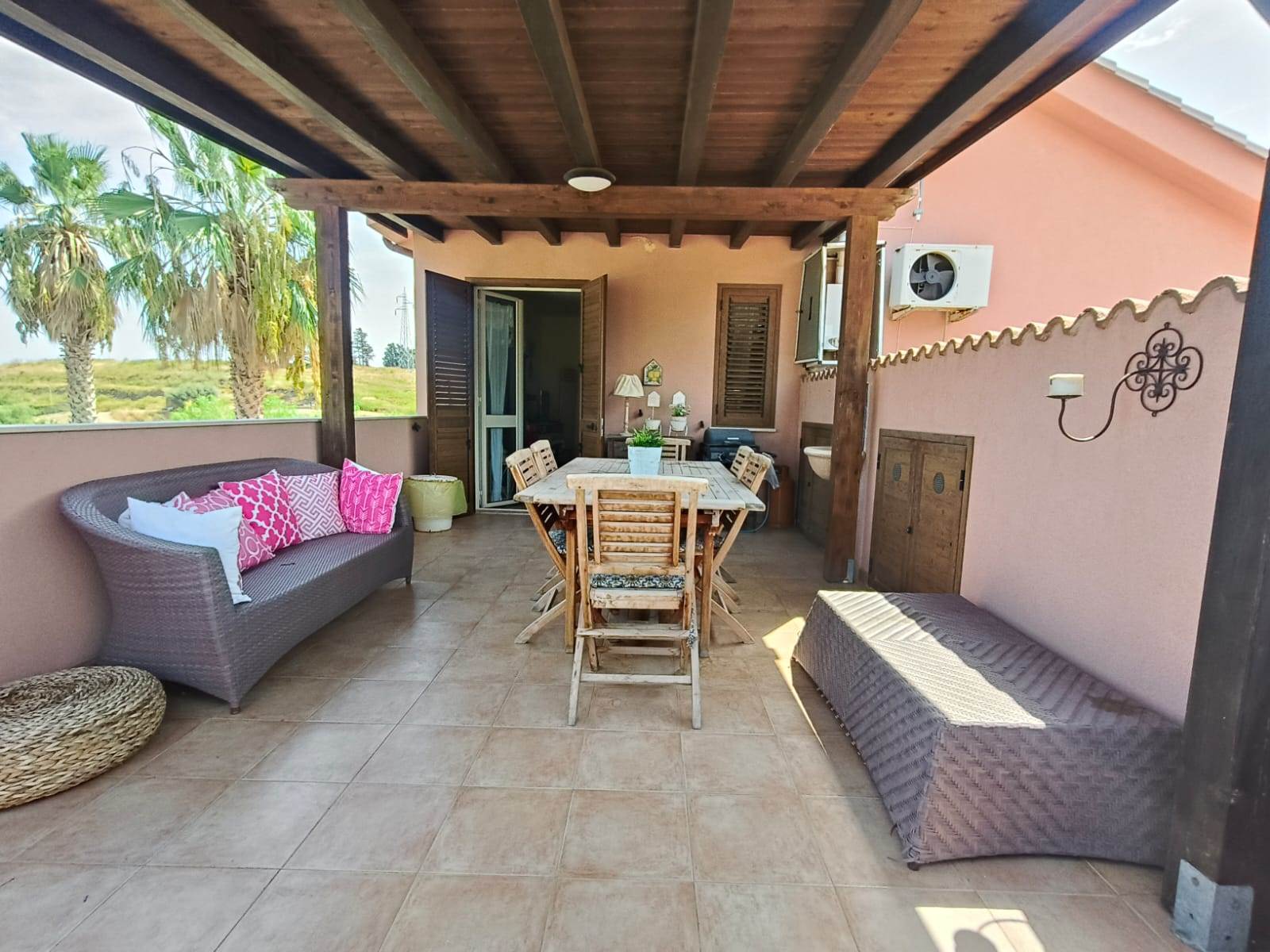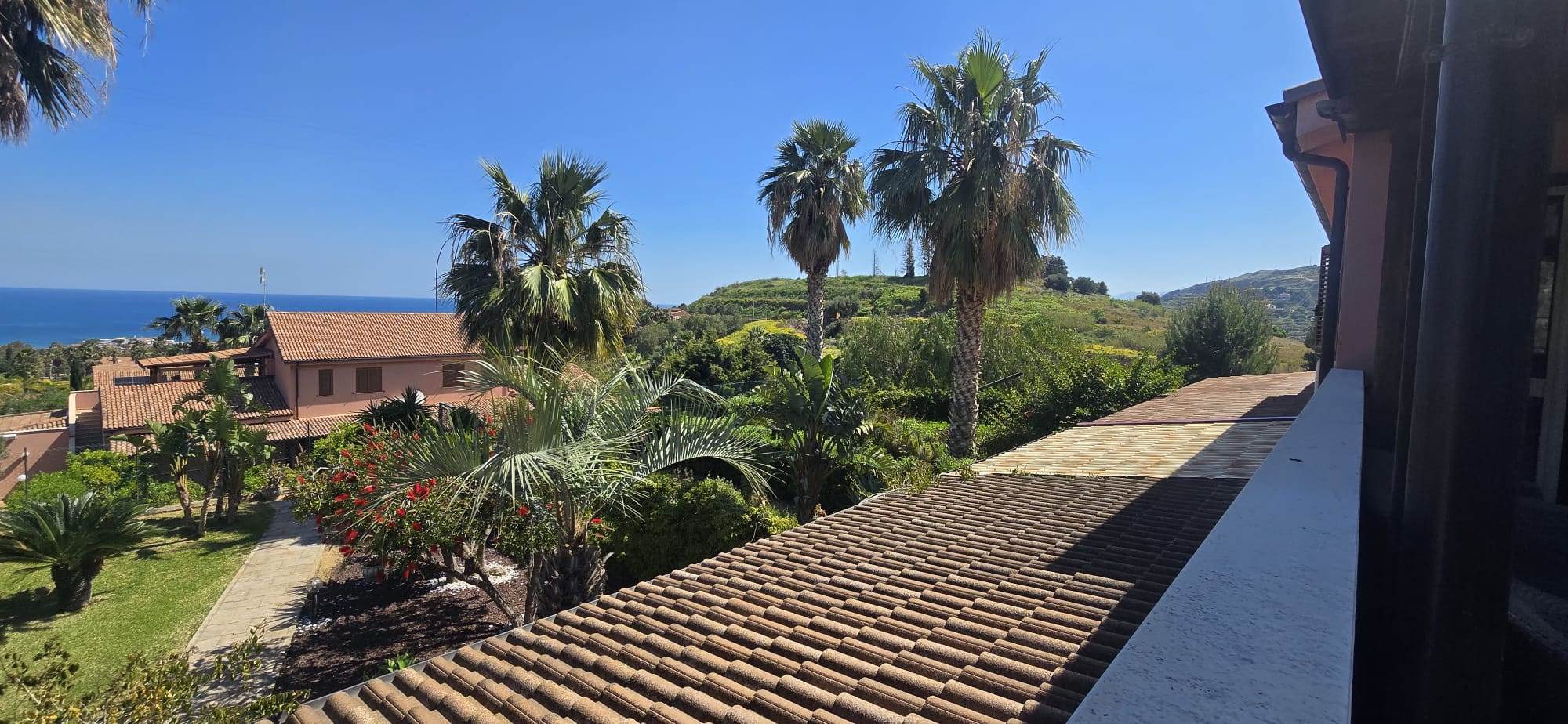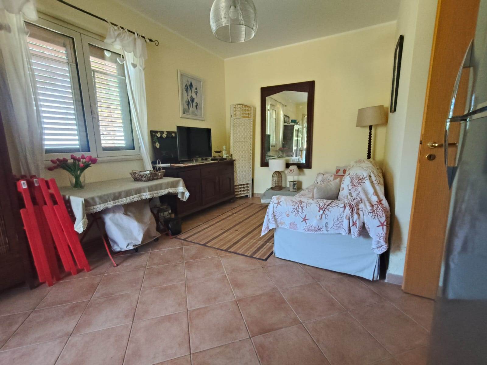 Nella splendida cornice della costa siciliana e precisamente tra Trabia e San Nicola L’Arena in Contrada Sant'Onofrio, all'interno dell'elegante Residence Acquamarina, proponiamo la vendita di una splendida porzione di villa con posizione ESCLUSIVA angolare dove si può godere di una vista mozzafiato e di tranquillità, di mq. 60 con corte esclusiva di circa mq. 200 ben curata (coltivato come giardino in parte e frutteto per la restante parte). La proprietà è così distribuita: dal cancello di accesso alla corte esclusiva si arriva alla scala dove si accede al primo piano che ci porta all'ampio terrazzo coperto dove troviamo l'ingresso dell'abitazione, qui ci accoglie una cucina a vista con comodo living, un piccolo disimpegno ci conduce alla zona notte composta da due camere servite da un servizio con doccia finestrato. l'appartamento viene venduto completo di tutti gli arredi e gli elettrodomestici. L'ampia terrazza coperta consente di godere di panorami suggestivi e mozzafiato. La proprietà è dotata di caldaia a gas per l'acqua sanitaria e per la cucina, infissi interni in pvc con vetrocamera, zanzariere, persiane esterne in pvc, ripostiglio, climatizzatori, arredi esterni sia per il terrazzo coperto che per il giardino ed infine funzionali ripostigli adiacenti al terrazzo. Per ogni villetta è riservato un posto auto davanti all'accesso della villa plurifamiliare. Il residence Acquamarina si trova a circa 1,5 km. dal mare, è dotato di due ingressi, un lido a mare esclusivo per i residenti, un servizio gratuito di navetta per il periodo estivo, campo di calcio, e grande sala riunioni con tavolo pingpong, mini club attrezzato con giochi e servizi. La pulizia del residence è sempre compresa nella quota condominiale.