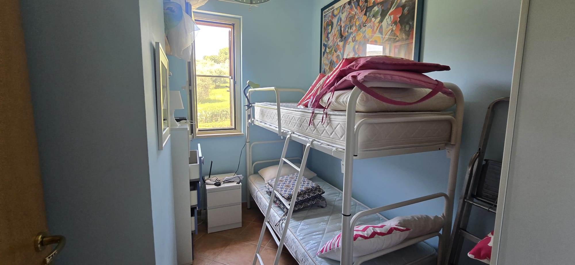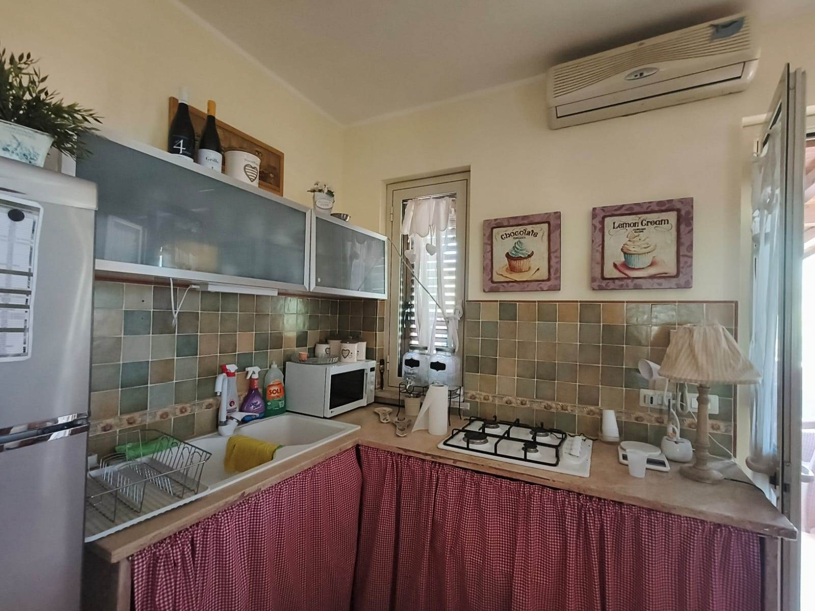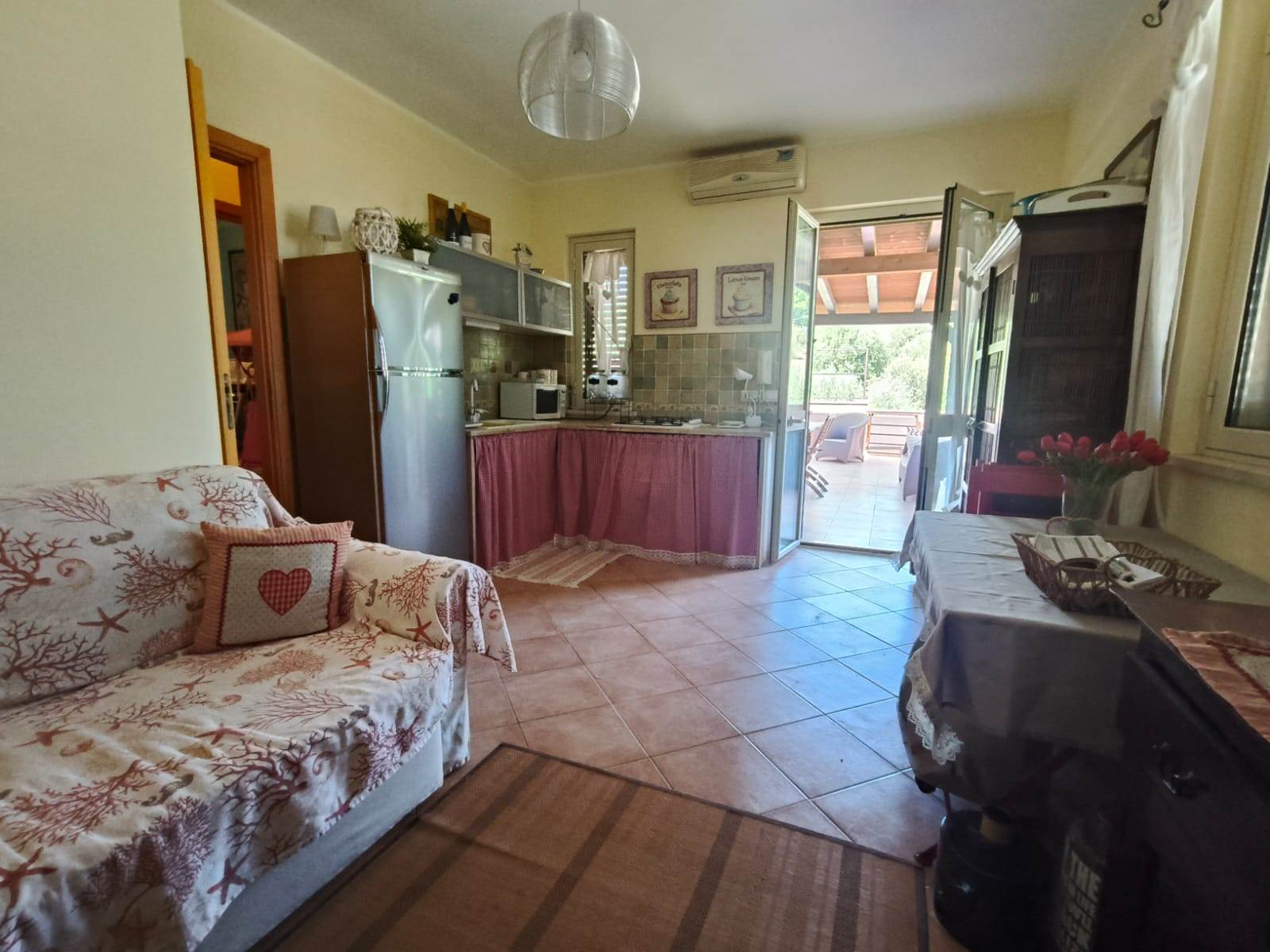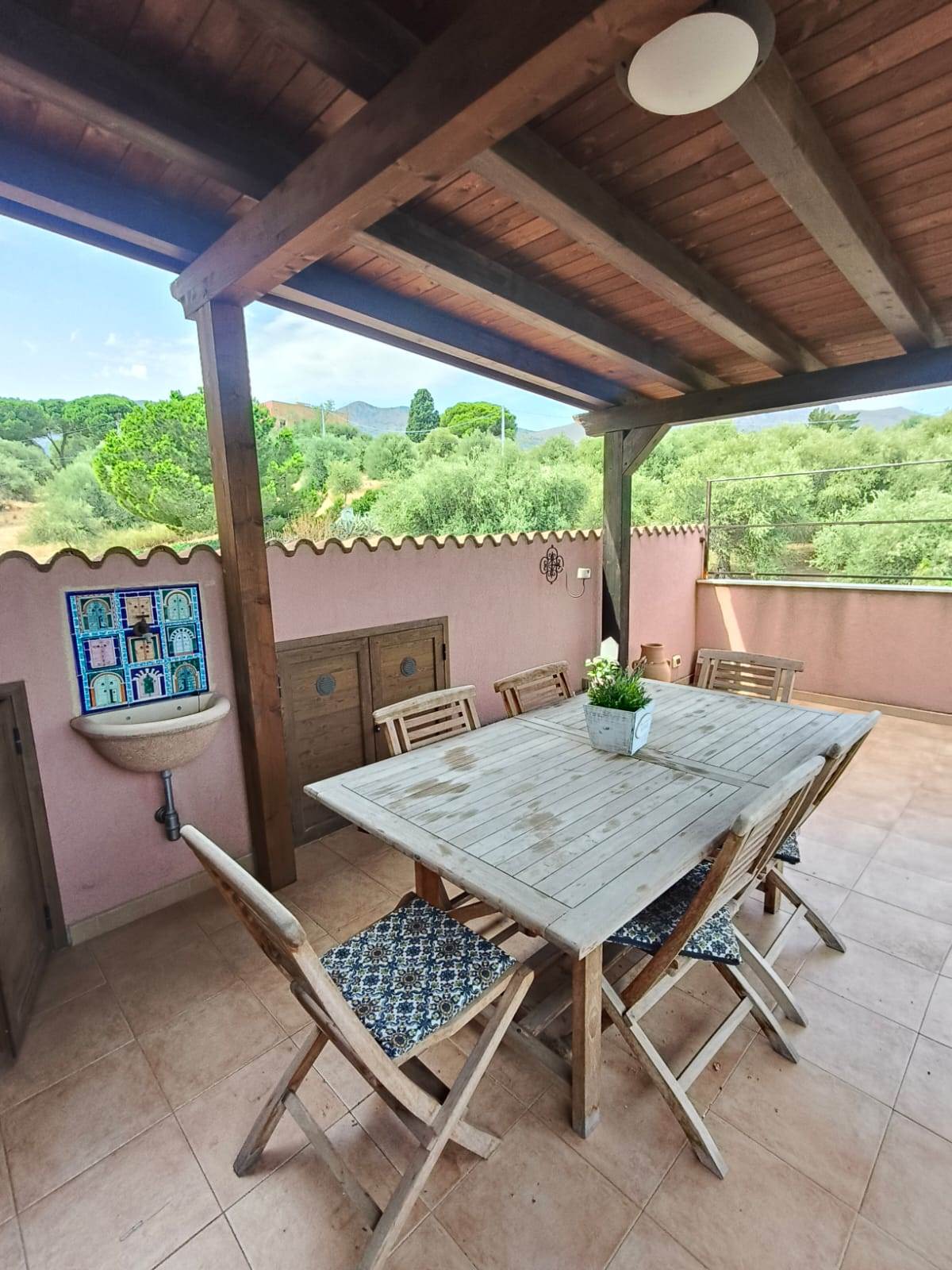 Nella splendida cornice della costa siciliana e precisamente tra Trabia e San Nicola L’Arena in Contrada Sant'Onofrio, all'interno dell'elegante Residence Acquamarina, proponiamo la vendita di una splendida porzione di villa con posizione ESCLUSIVA angolare dove si può godere di una vista mozzafiato e di tranquillità, di mq. 60 con corte esclusiva di circa mq. 200 ben curata (coltivato come giardino in parte e frutteto per la restante parte). La proprietà è così distribuita: dal cancello di accesso alla corte esclusiva si arriva alla scala dove si accede al primo piano che ci porta all'ampio terrazzo coperto dove troviamo l'ingresso dell'abitazione, qui ci accoglie una cucina a vista con comodo living, un piccolo disimpegno ci conduce alla zona notte composta da due camere servite da un servizio con doccia finestrato. l'appartamento viene venduto completo di tutti gli arredi e gli elettrodomestici. L'ampia terrazza coperta consente di godere di panorami suggestivi e mozzafiato. La proprietà è dotata di caldaia a gas per l'acqua sanitaria e per la cucina, infissi interni in pvc con vetrocamera, zanzariere, persiane esterne in pvc, ripostiglio, climatizzatori, arredi esterni sia per il terrazzo coperto che per il giardino ed infine funzionali ripostigli adiacenti al terrazzo. Per ogni villetta è riservato un posto auto davanti all'accesso della villa plurifamiliare. Il residence Acquamarina si trova a circa 1,5 km. dal mare, è dotato di due ingressi, un lido a mare esclusivo per i residenti, un servizio gratuito di navetta per il periodo estivo, campo di calcio, e grande sala riunioni con tavolo pingpong, mini club attrezzato con giochi e servizi. La pulizia del residence è sempre compresa nella quota condominiale.