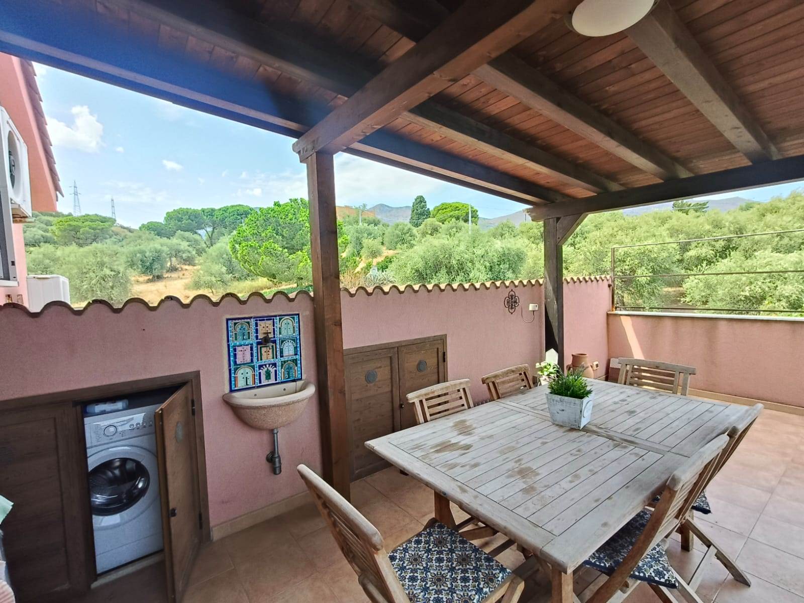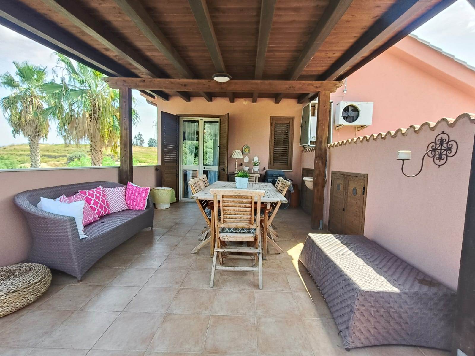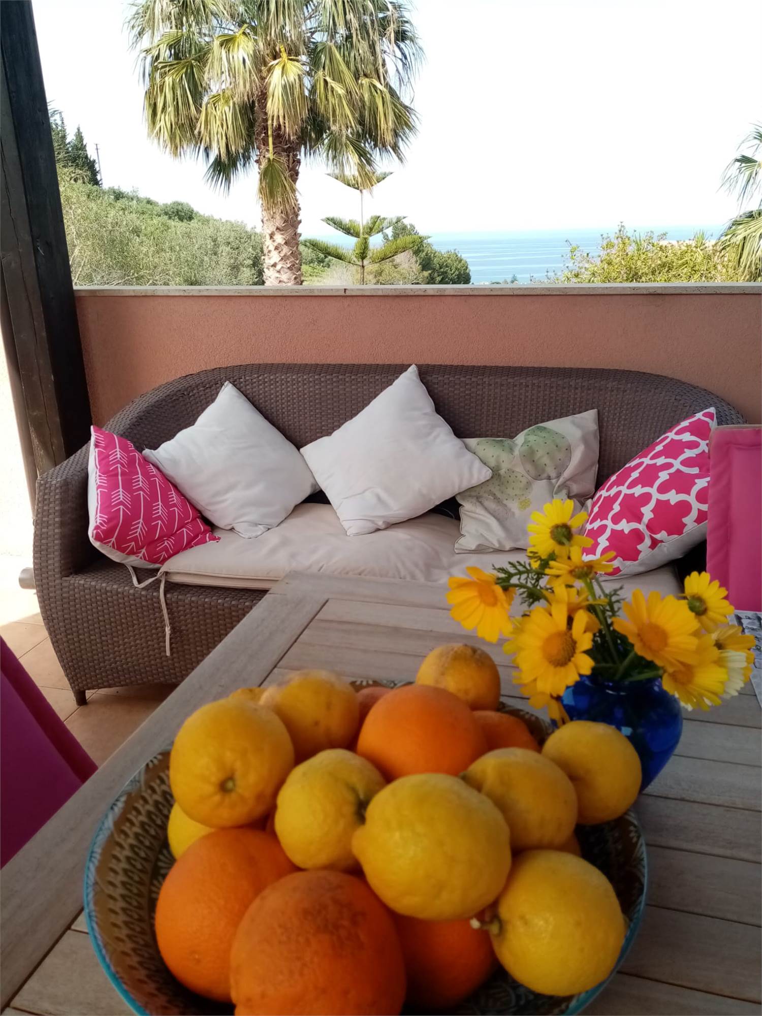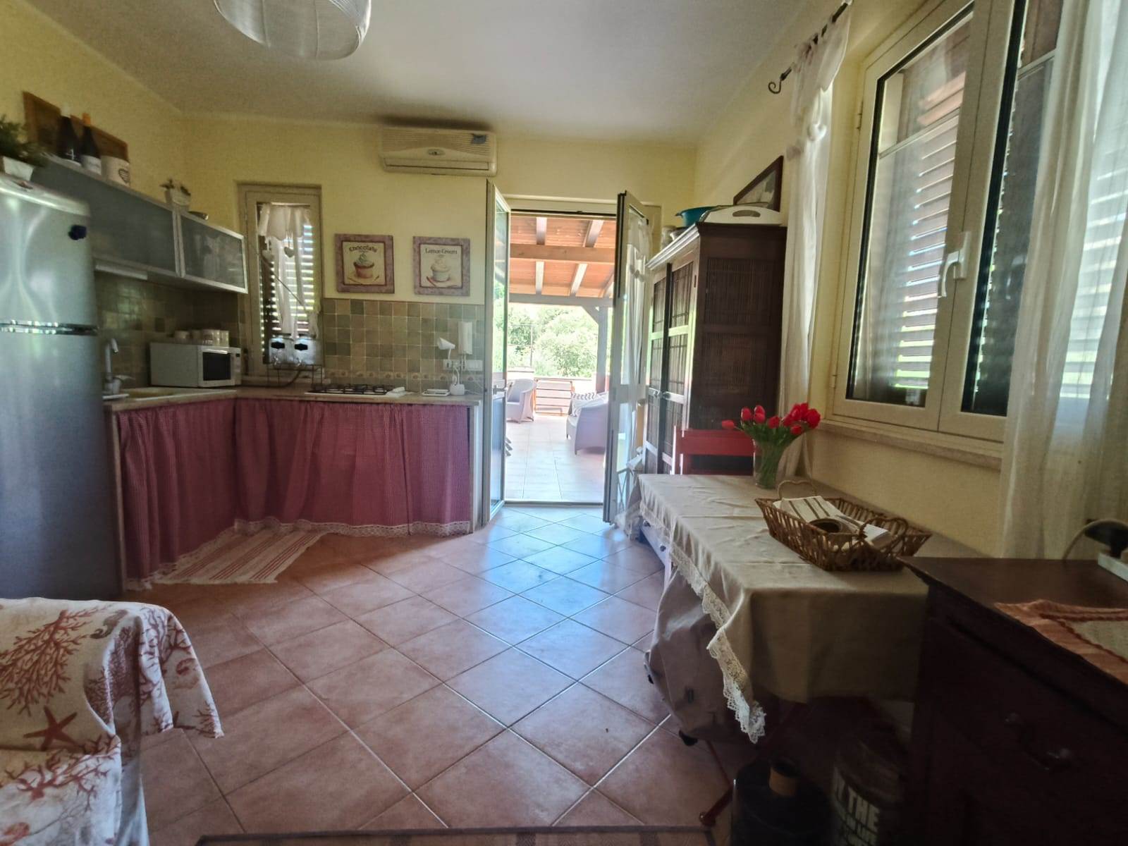 Nella splendida cornice della costa siciliana e precisamente tra Trabia e San Nicola L’Arena in Contrada Sant'Onofrio, all'interno dell'elegante Residence Acquamarina, proponiamo la vendita di una splendida porzione di villa con posizione ESCLUSIVA angolare dove si può godere di una vista mozzafiato e di tranquillità, di mq. 60 con corte esclusiva di circa mq. 200 ben curata (coltivato come giardino in parte e frutteto per la restante parte). La proprietà è così distribuita: dal cancello di accesso alla corte esclusiva si arriva alla scala dove si accede al primo piano che ci porta all'ampio terrazzo coperto dove troviamo l'ingresso dell'abitazione, qui ci accoglie una cucina a vista con comodo living, un piccolo disimpegno ci conduce alla zona notte composta da due camere servite da un servizio con doccia finestrato. l'appartamento viene venduto completo di tutti gli arredi e gli elettrodomestici. L'ampia terrazza coperta consente di godere di panorami suggestivi e mozzafiato. La proprietà è dotata di caldaia a gas per l'acqua sanitaria e per la cucina, infissi interni in pvc con vetrocamera, zanzariere, persiane esterne in pvc, ripostiglio, climatizzatori, arredi esterni sia per il terrazzo coperto che per il giardino ed infine funzionali ripostigli adiacenti al terrazzo. Per ogni villetta è riservato un posto auto davanti all'accesso della villa plurifamiliare. Il residence Acquamarina si trova a circa 1,5 km. dal mare, è dotato di due ingressi, un lido a mare esclusivo per i residenti, un servizio gratuito di navetta per il periodo estivo, campo di calcio, e grande sala riunioni con tavolo pingpong, mini club attrezzato con giochi e servizi. La pulizia del residence è sempre compresa nella quota condominiale.