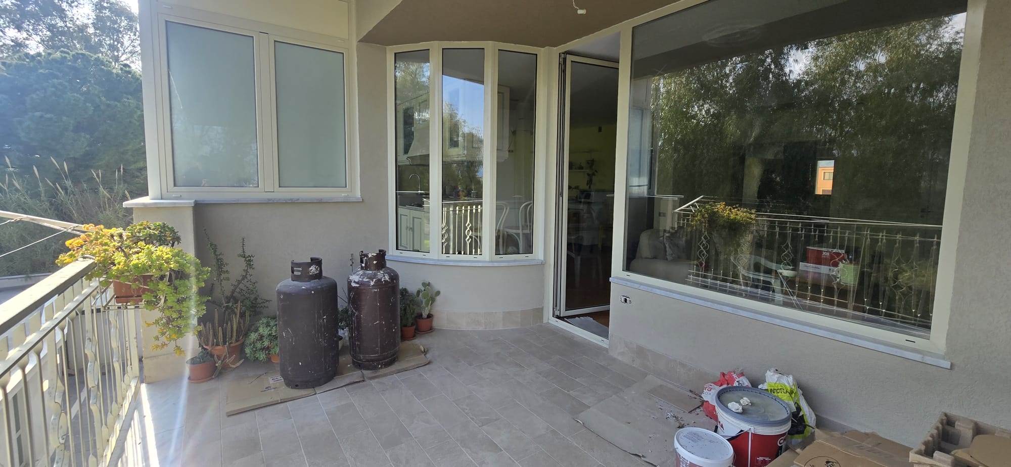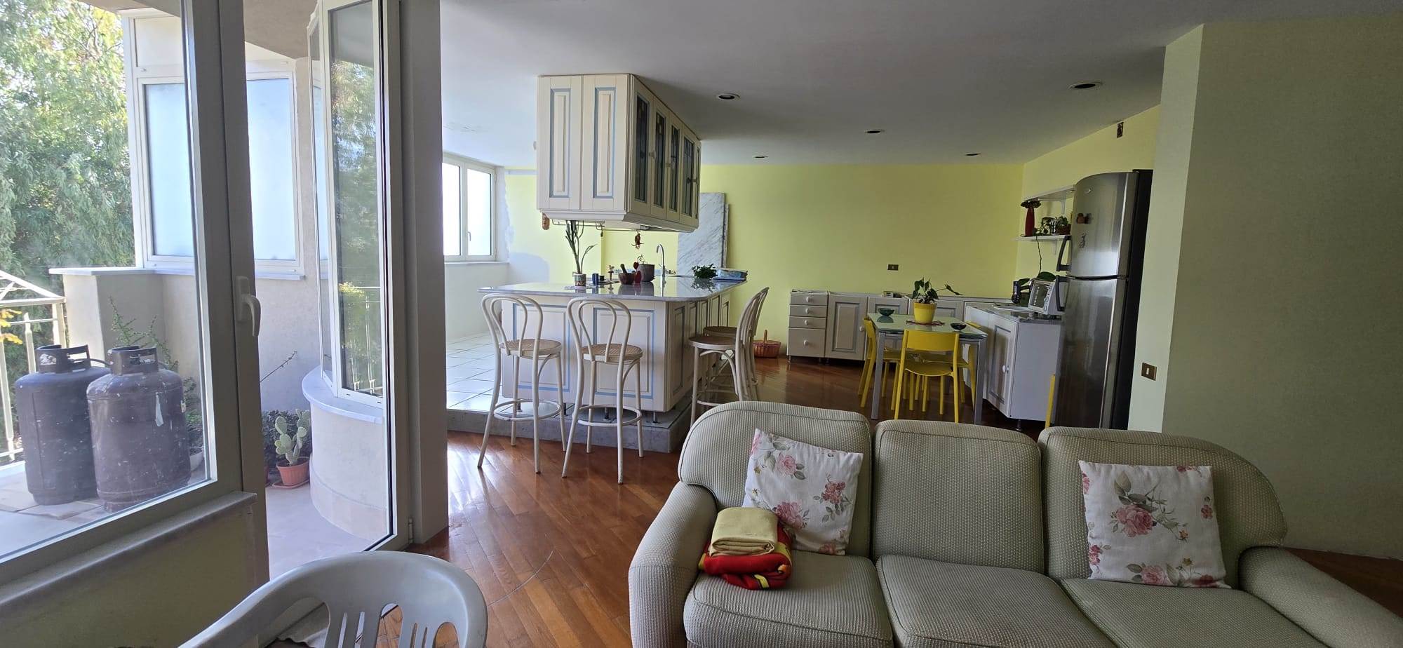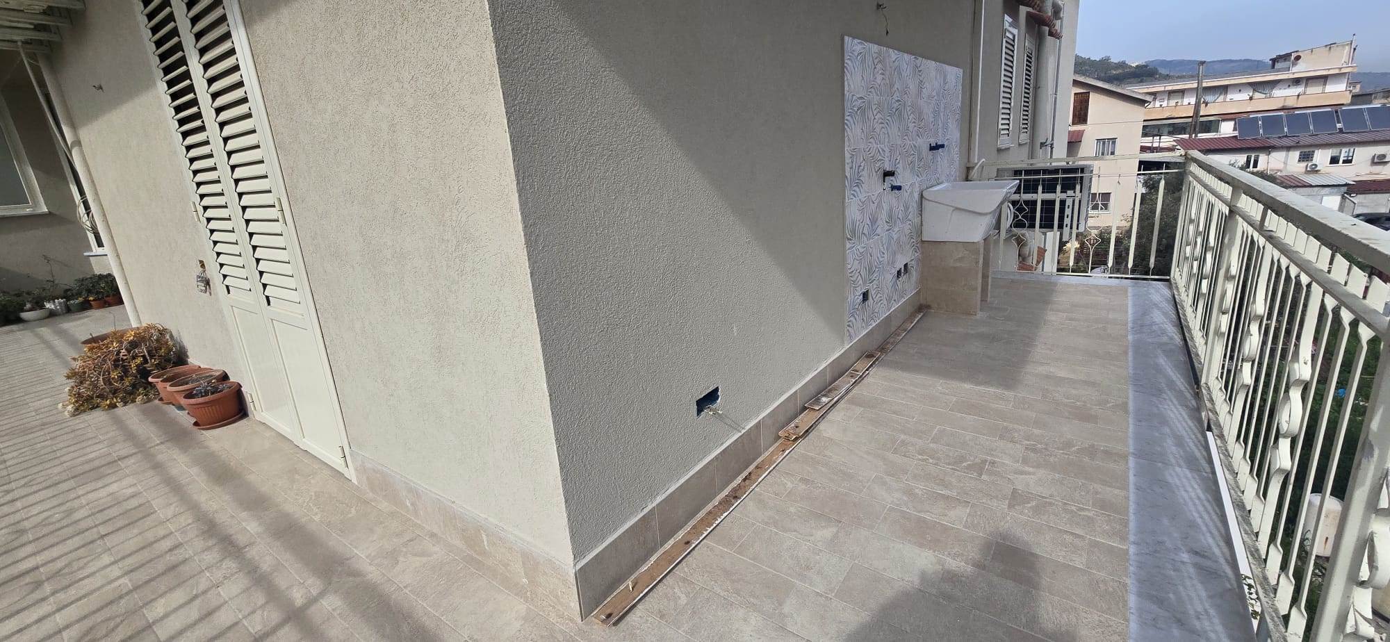 Disponiamo, in una palazzina appena ristrutturata con progetto 110%, con cappotto termico, infissi nuovi a taglio termico PVC, pannelli fotovoltaici per uso e spese condominiali, colonnina elettrica per alimentazione auto, UN APPARTAMENTO DI CIRCA 115 MQ posto al secondo piano senza ascensore ma con la presenza di montascale, così disposto: ingresso su disimpegno,ampia cucina in parte verandata, soggiorno con pavimentazione in parquet con balcone molto ampio angolare con lavanderia, 2 camere con armadiature a muro e un bagno con doccia.