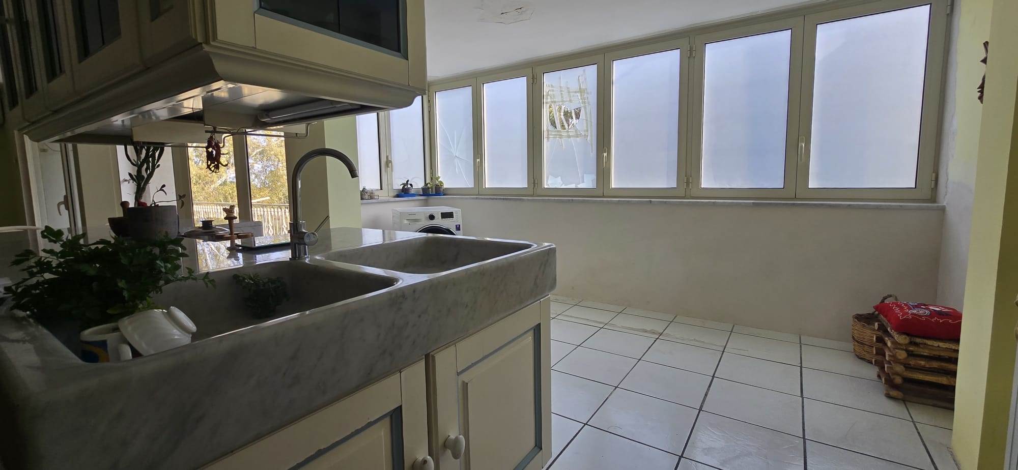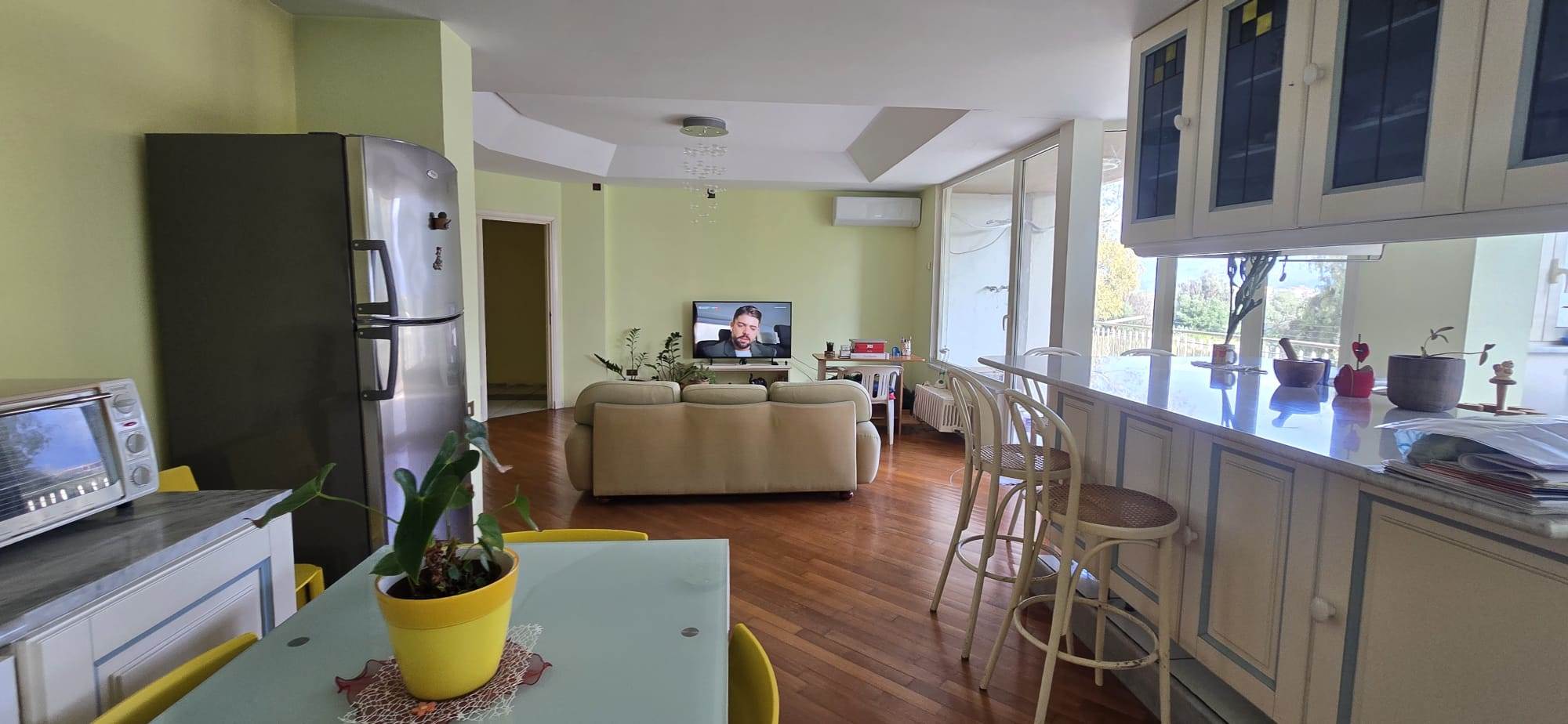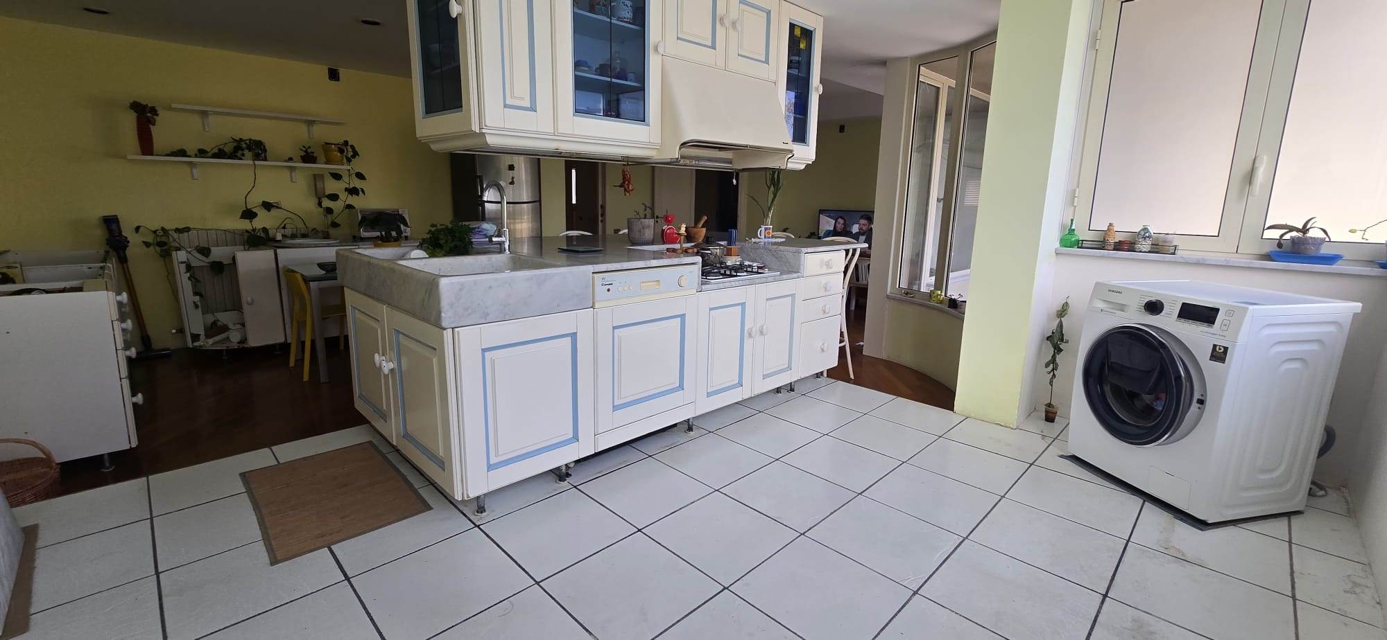 Disponiamo, in una palazzina appena ristrutturata con progetto 110%, con cappotto termico, infissi nuovi a taglio termico PVC, pannelli fotovoltaici per uso e spese condominiali, colonnina elettrica per alimentazione auto, UN APPARTAMENTO DI CIRCA 115 MQ posto al secondo piano senza ascensore ma con la presenza di montascale, così disposto: ingresso su disimpegno,ampia cucina in parte verandata, soggiorno con pavimentazione in parquet con balcone molto ampio angolare con lavanderia, 2 camere con armadiature a muro e un bagno con doccia.