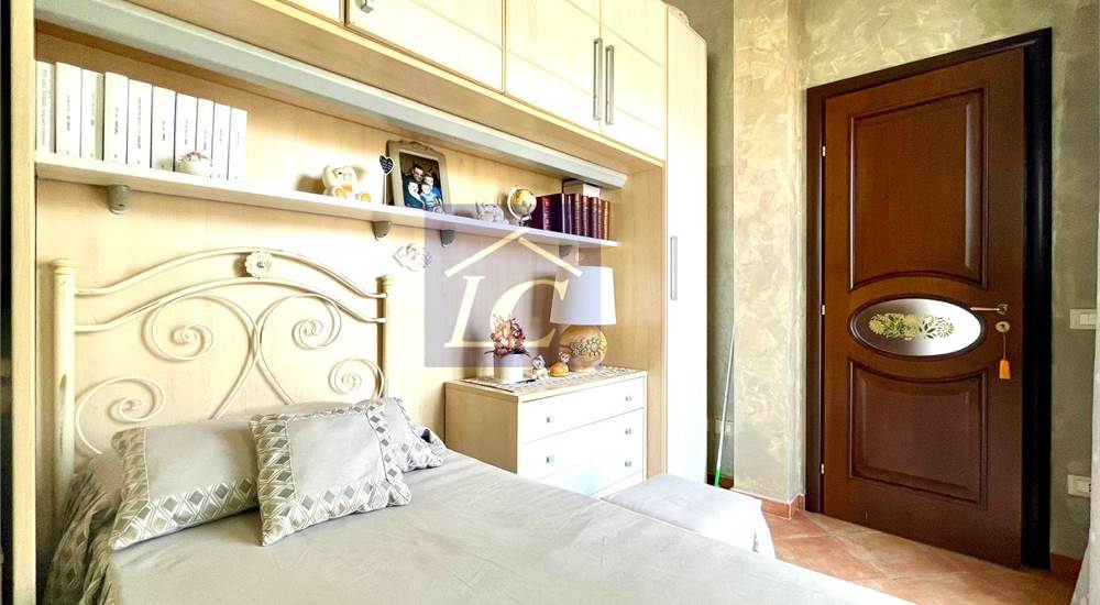 Tramite una scala interna in muratura, rifinita con alzate in maiolica, si accede al primo piano composto da tre camere matrimoniali tutte con apertura su balcone, bagno con box doccia.