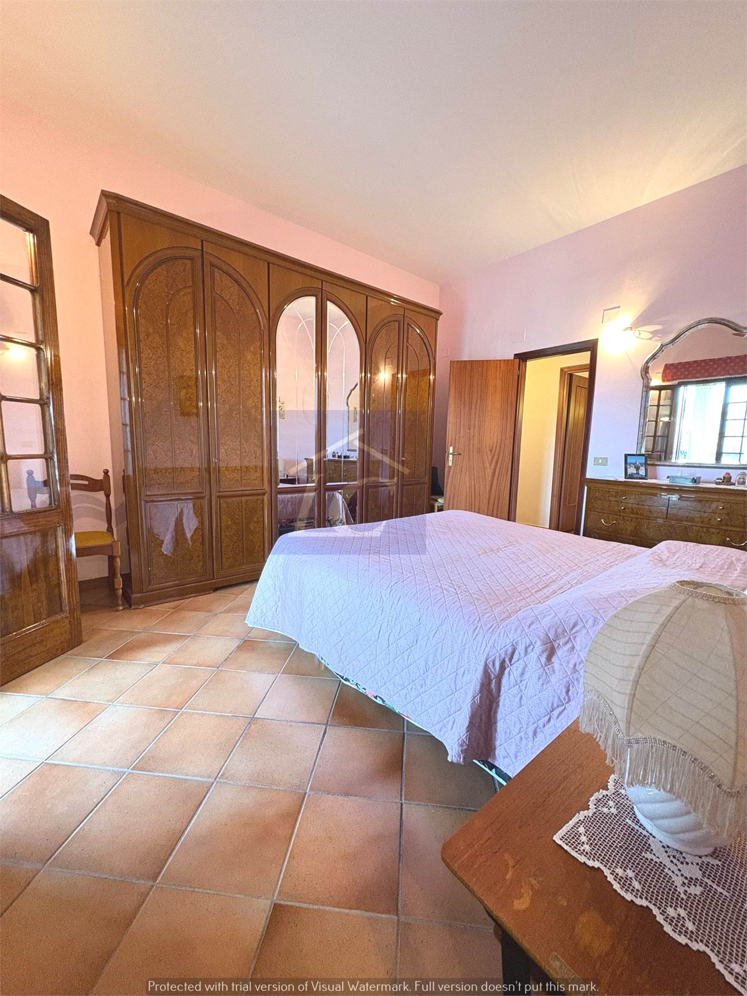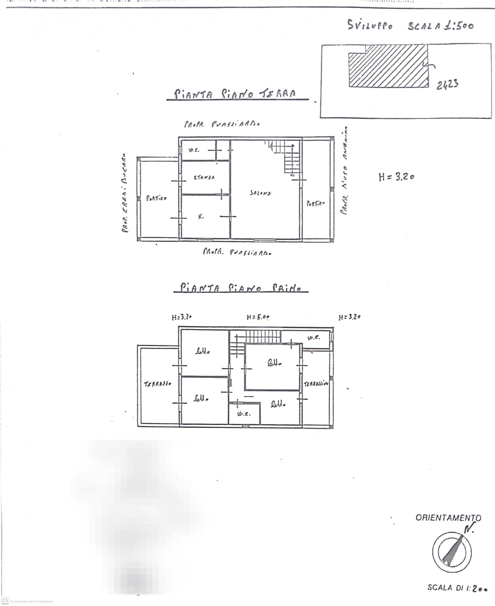 Tramite una scala in muratura si accede al primo piano in cui si sviluppa la zona notte composta da quattro camere da letto di cui una con bagno con doccia, tutte le camere da letto hanno aperture su terrazze vista mare e vista monti, bagno con vasca.