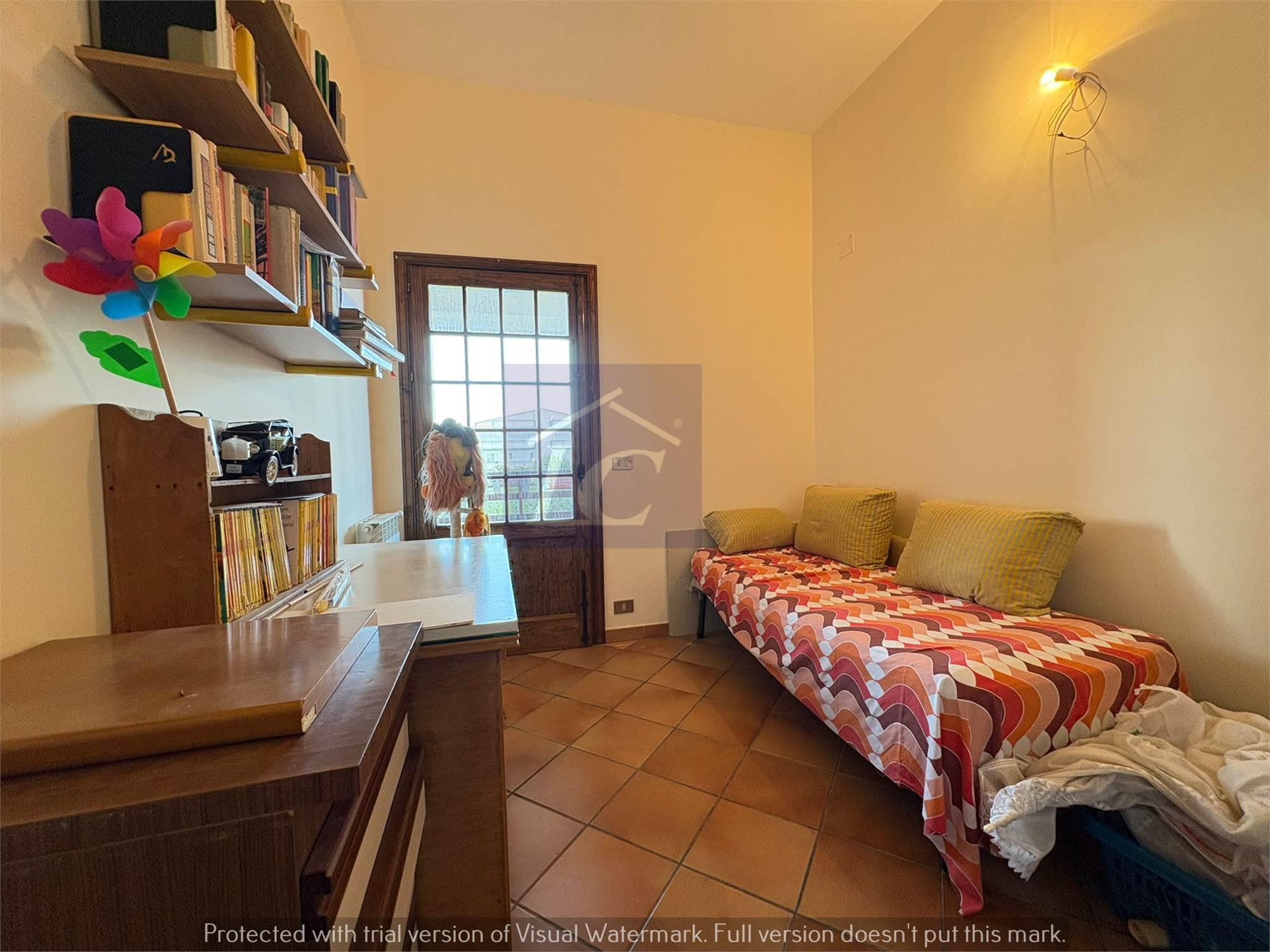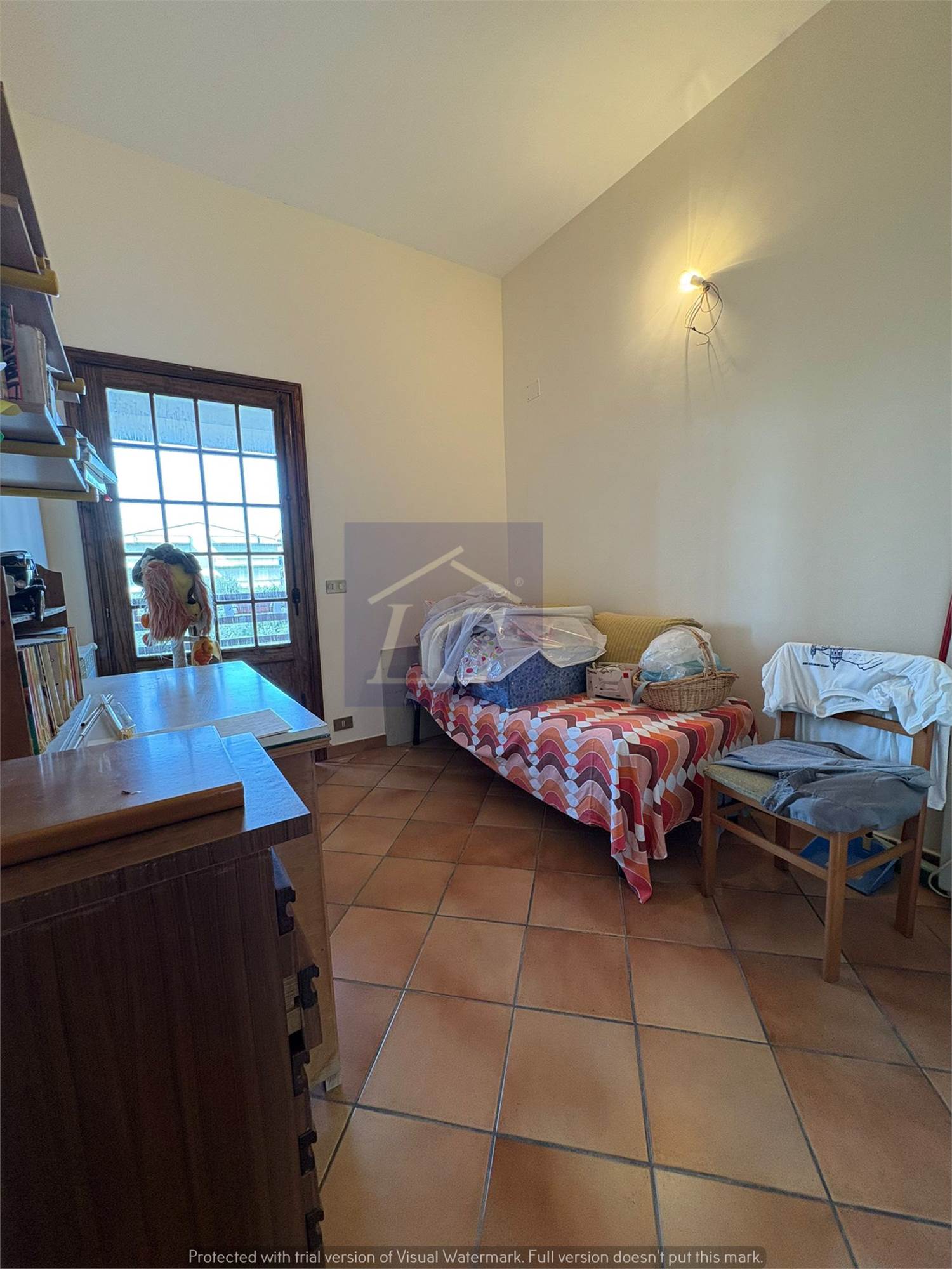 L'immobile è composto da ingresso da portico, in muratura, su ampio soggiorno, cucina abitabile e ripostiglio/dispensa con apertura su portico di esposizione opposta all’ingresso, antibagno e bagno con box doccia.