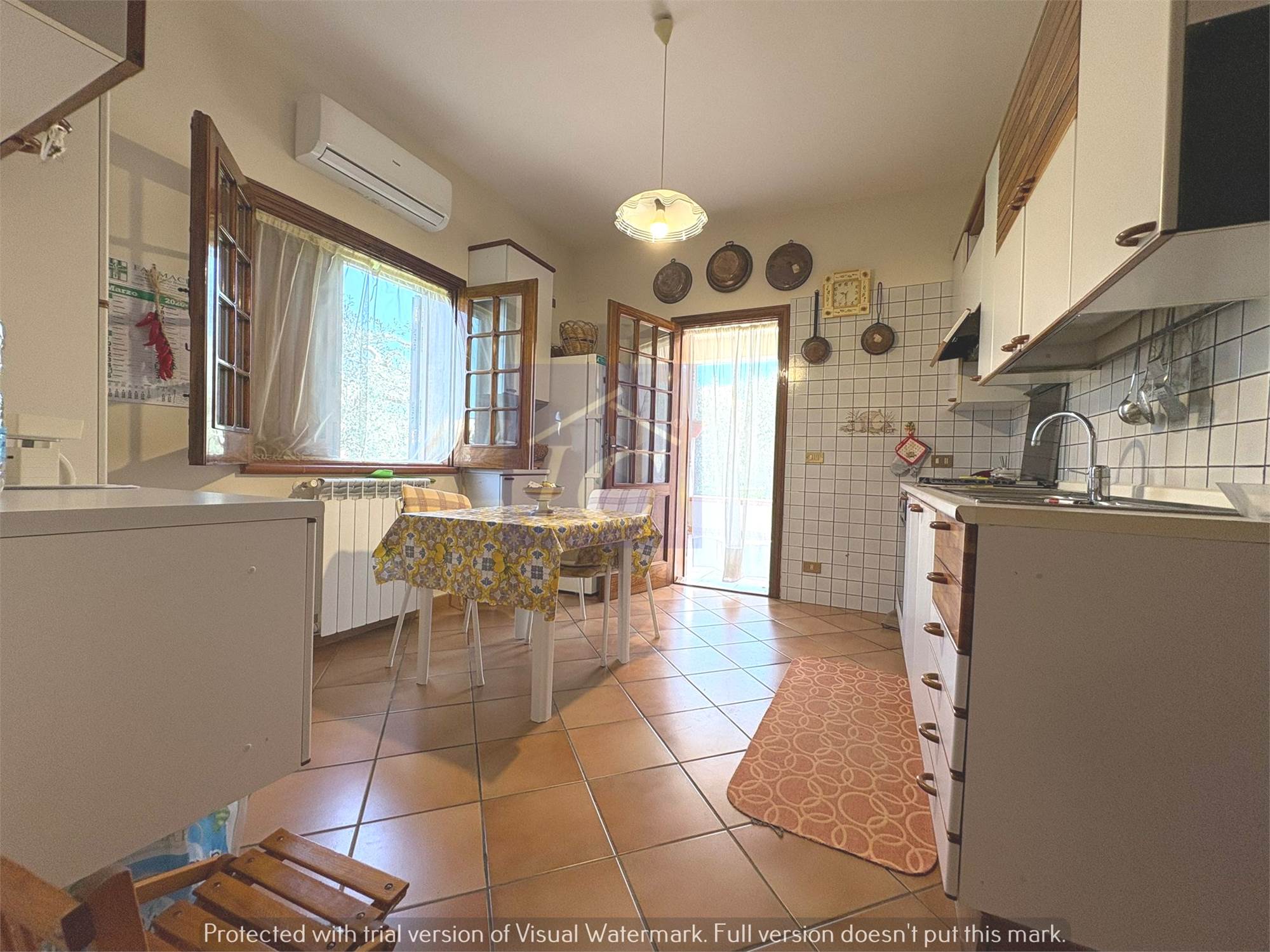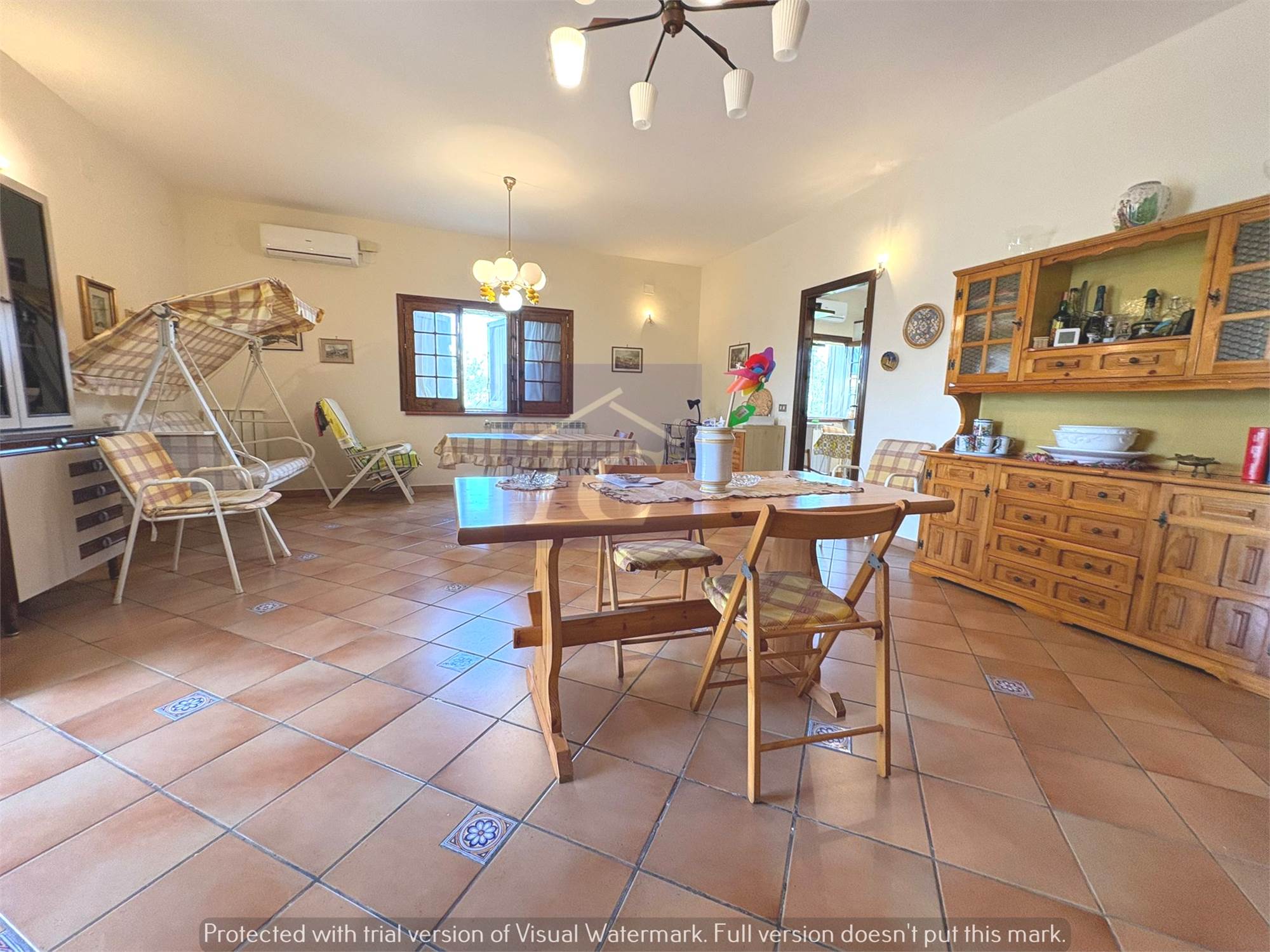 L'unità si presenta in ottimo stato di manutenzione con infissi in legno e vetro camera, impianto di riscaldamento con piastre alimentate da caldaia a metano, climatizzatori, riserva idrica in più di 10.000 lt circa.