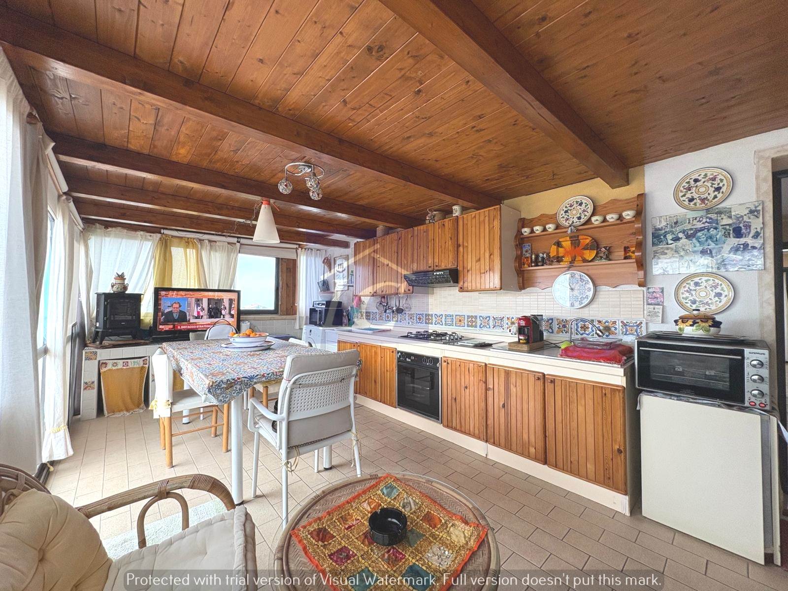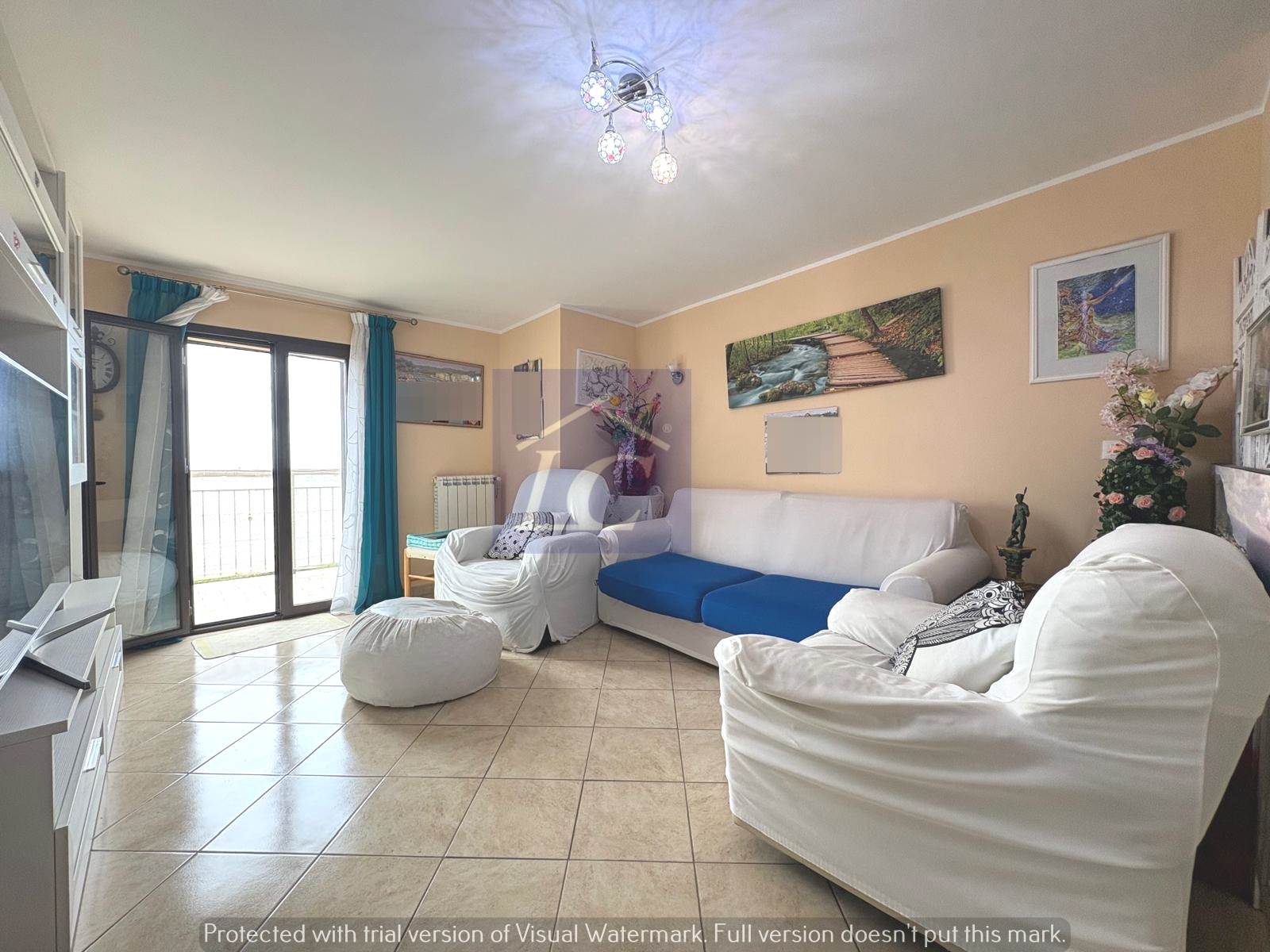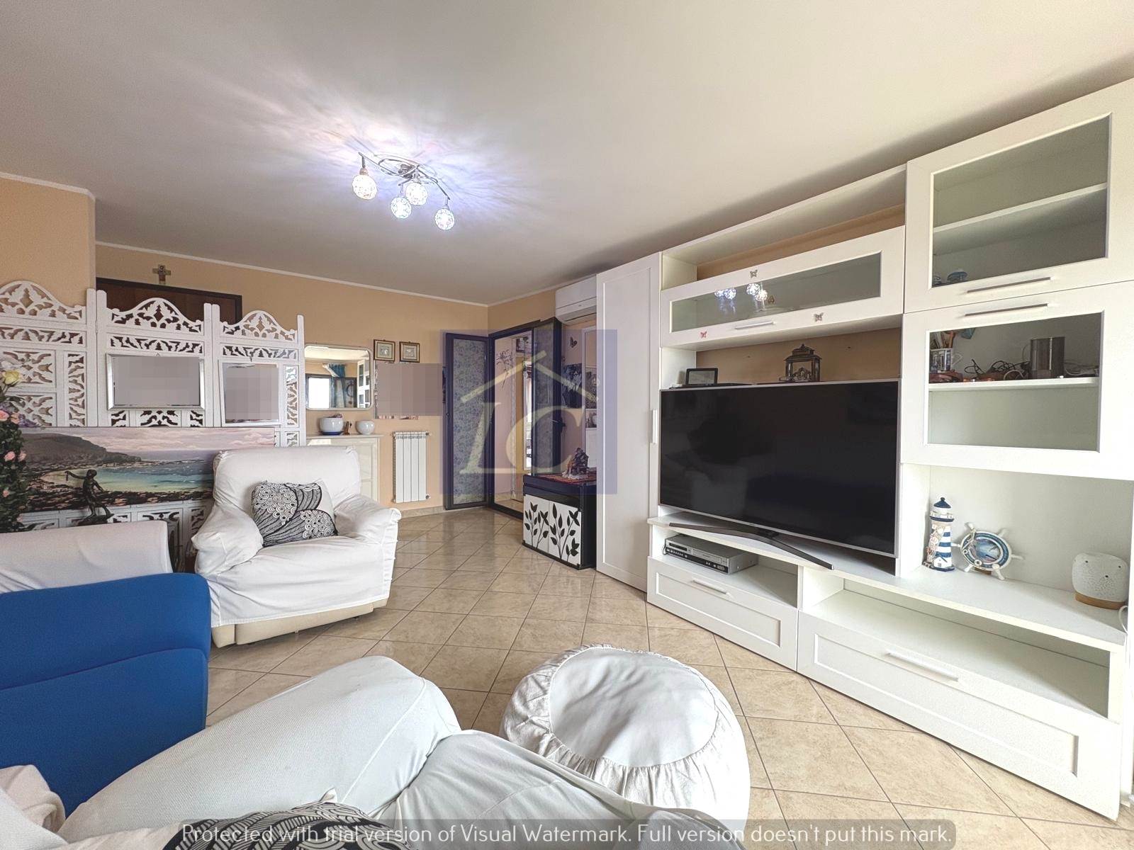 L'immobile è composto da ingresso su soggiorno con accesso al balcone (NORD) e ad una veranda con cucina abitabile che si affaccia su un terrazzo vista mare, due camere da letto matrimoniali di cui una con apertura su terrazza con area porticata vista mare, bagno con box doccia, ripostiglio.
