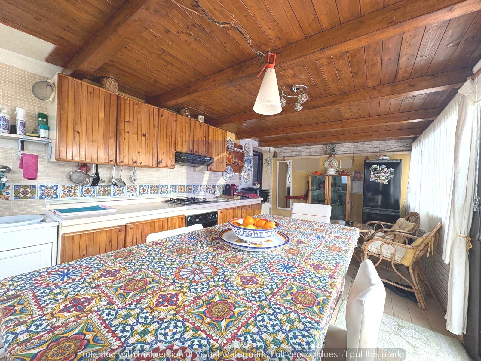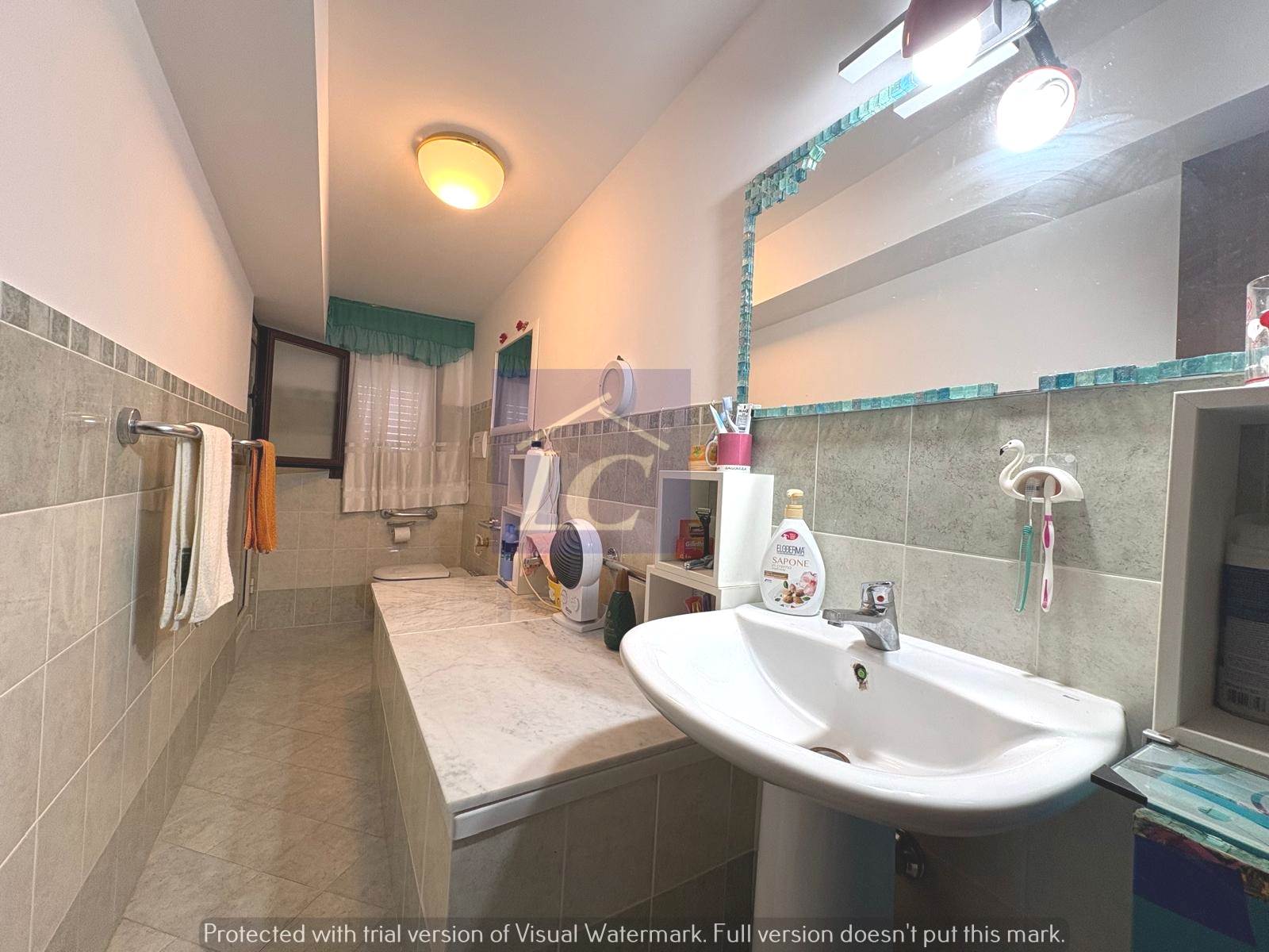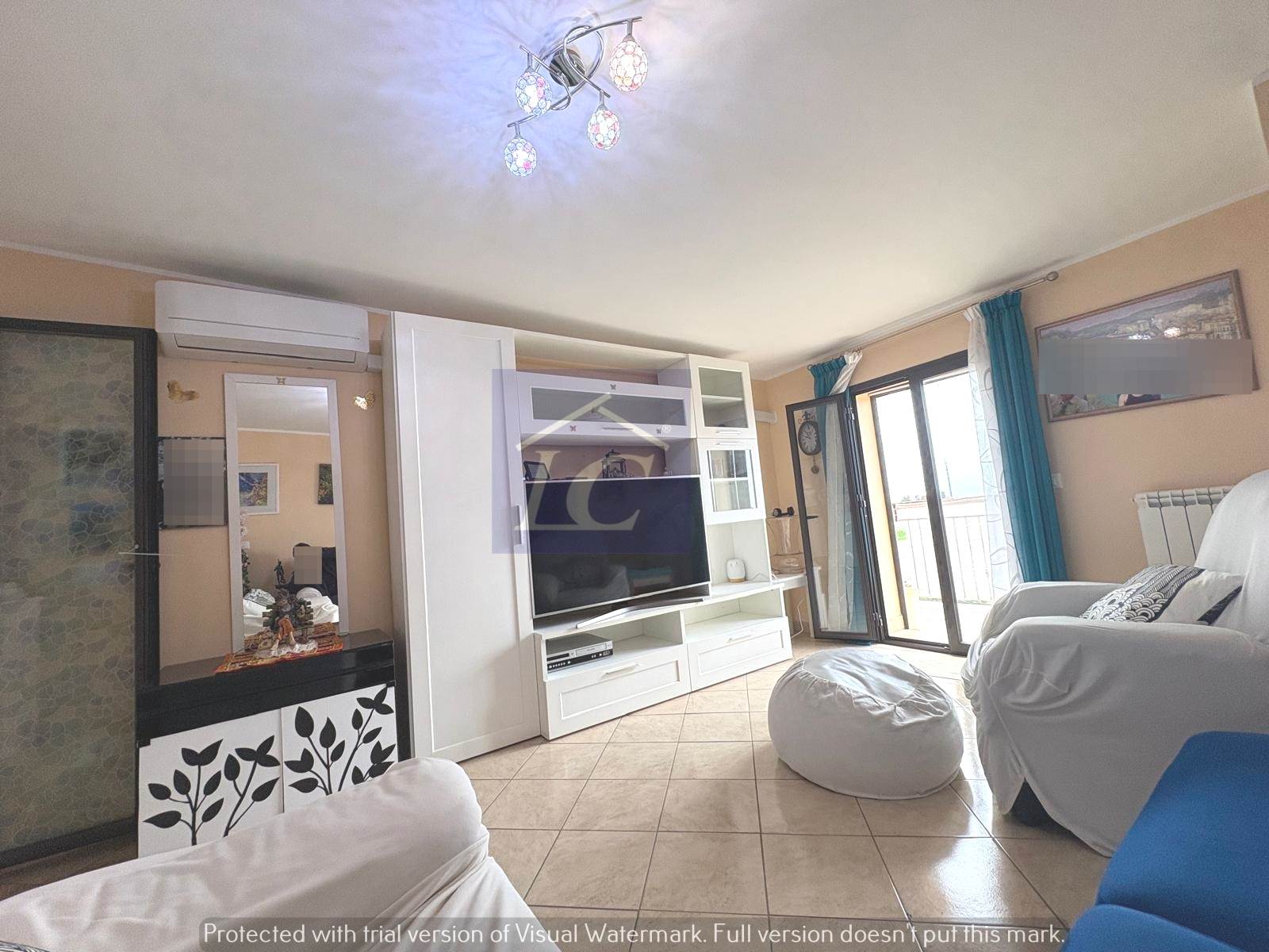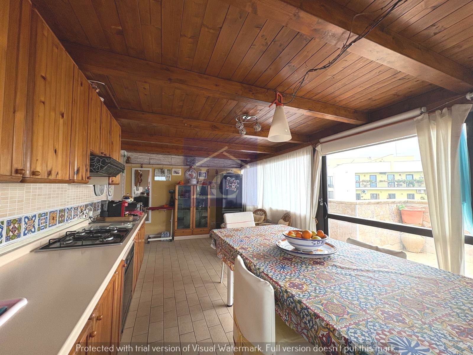 L'immobile è composto da ingresso su soggiorno con accesso al balcone (NORD) e ad una veranda con cucina abitabile che si affaccia su un terrazzo vista mare, due camere da letto matrimoniali di cui una con apertura su terrazza con area porticata vista mare, bagno con box doccia, ripostiglio.