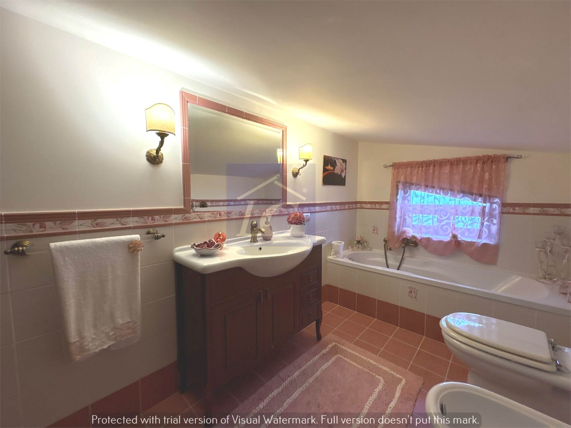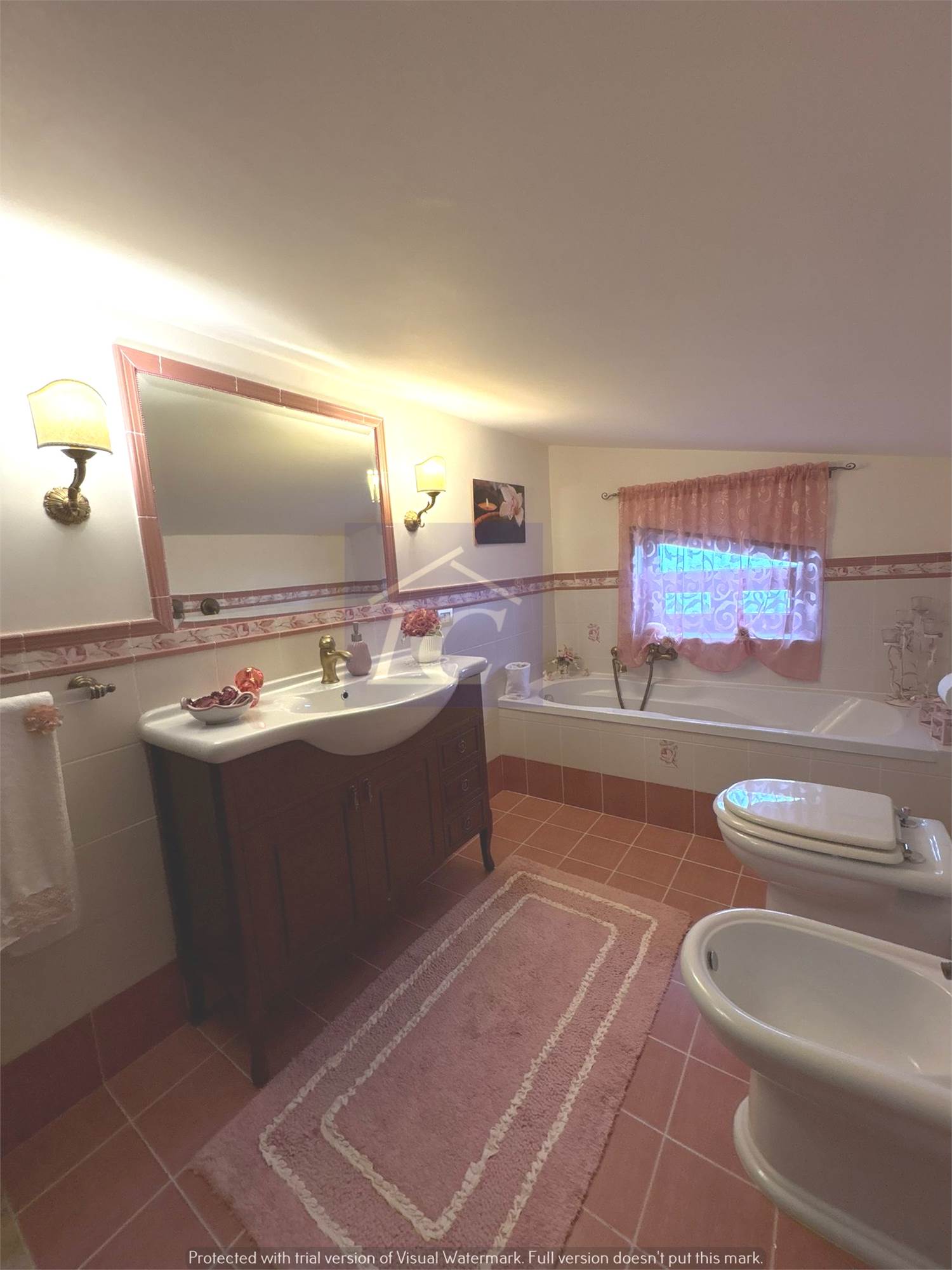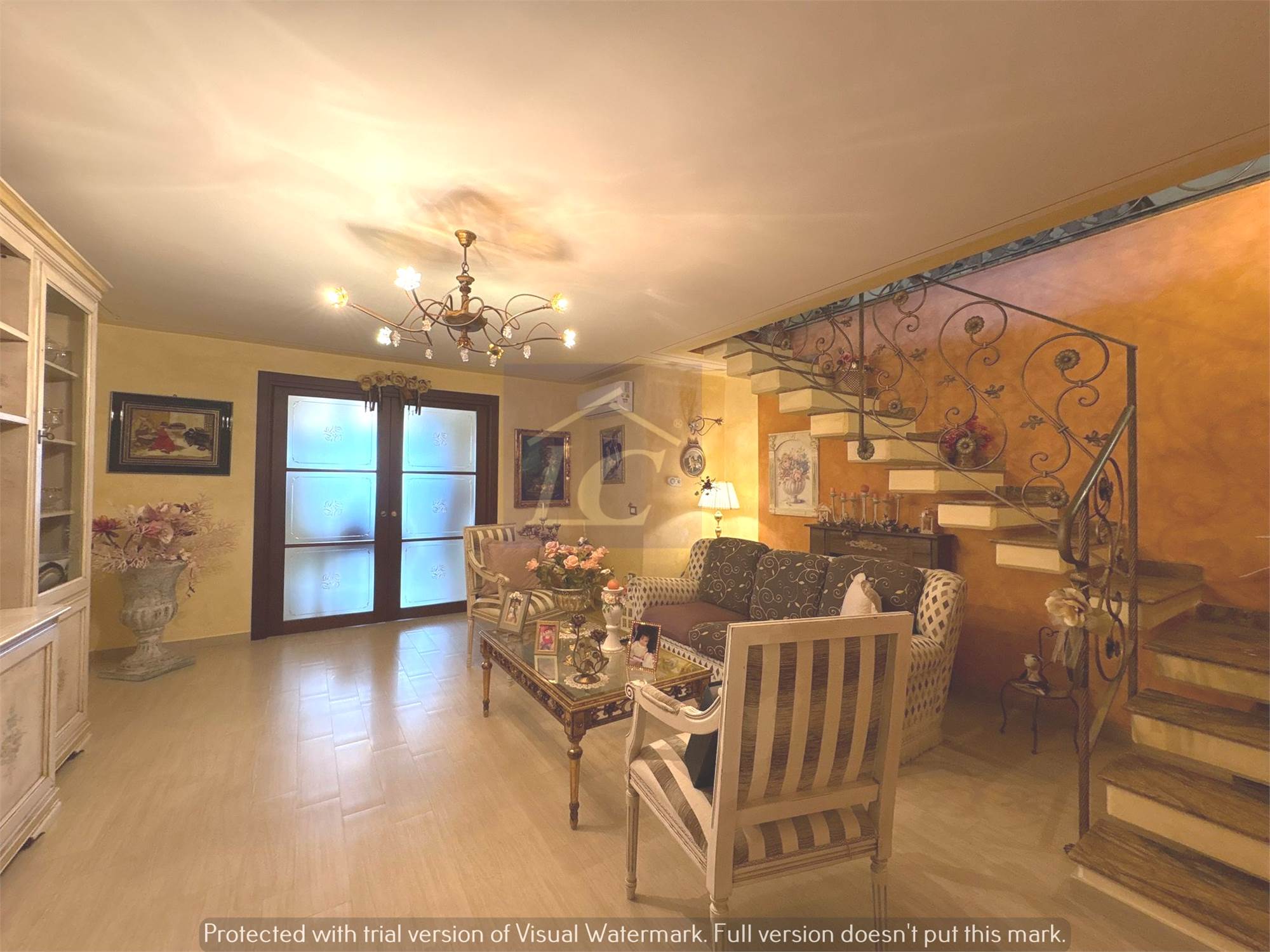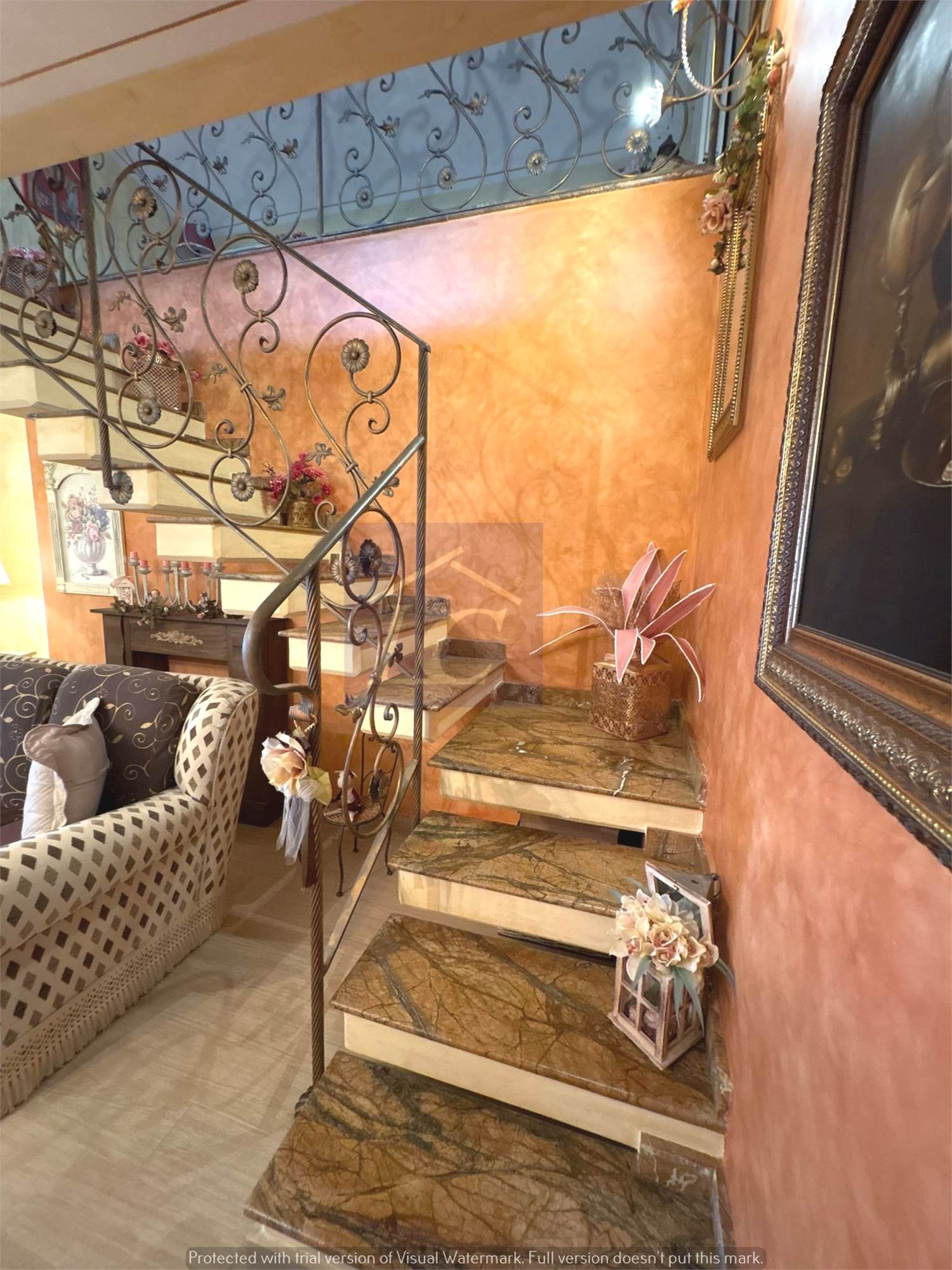 Tramite una scala interna, in marmo indiano e ringhiere in ferro battuto, si accede al piano superiore composto da saletta, una camera matrimoniale con apertura su balcone, camera singola, un bagno con box doccia, un bagno con vasca ed un terrazzino.
