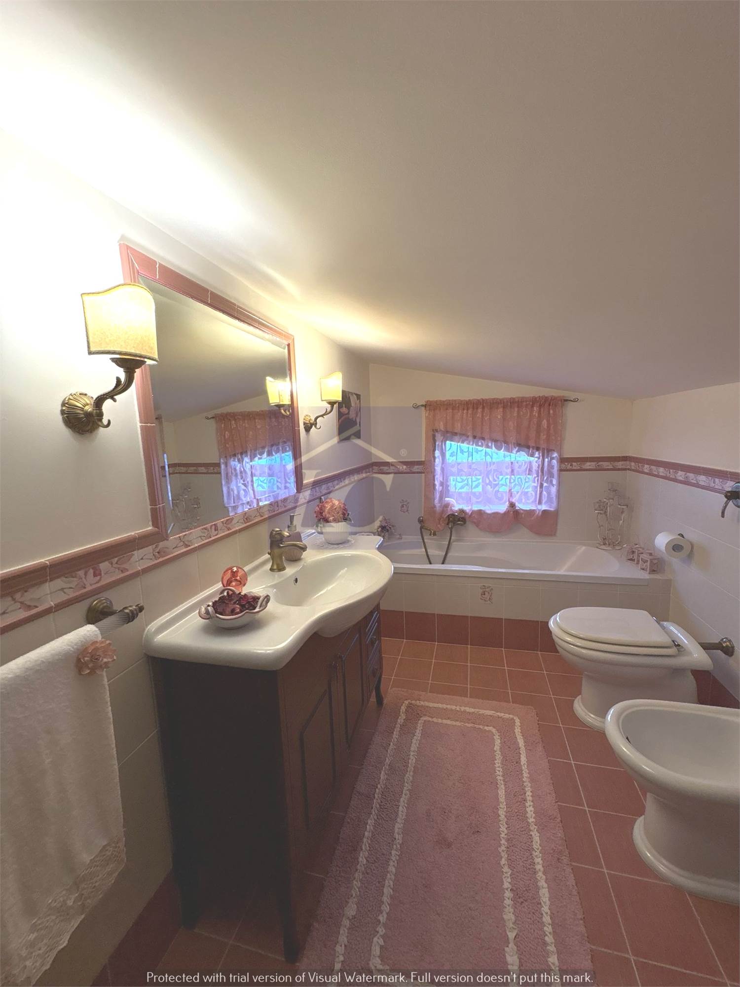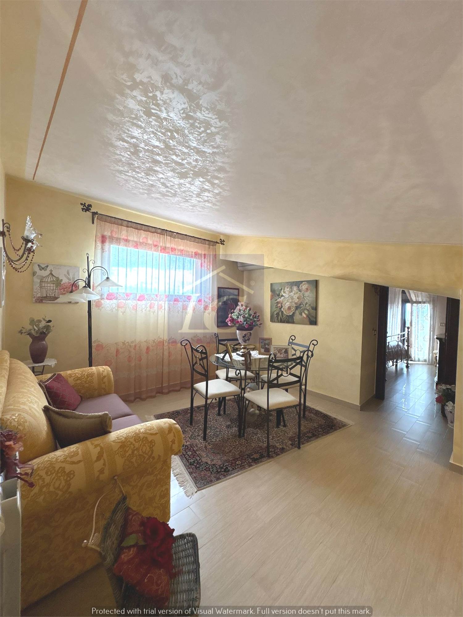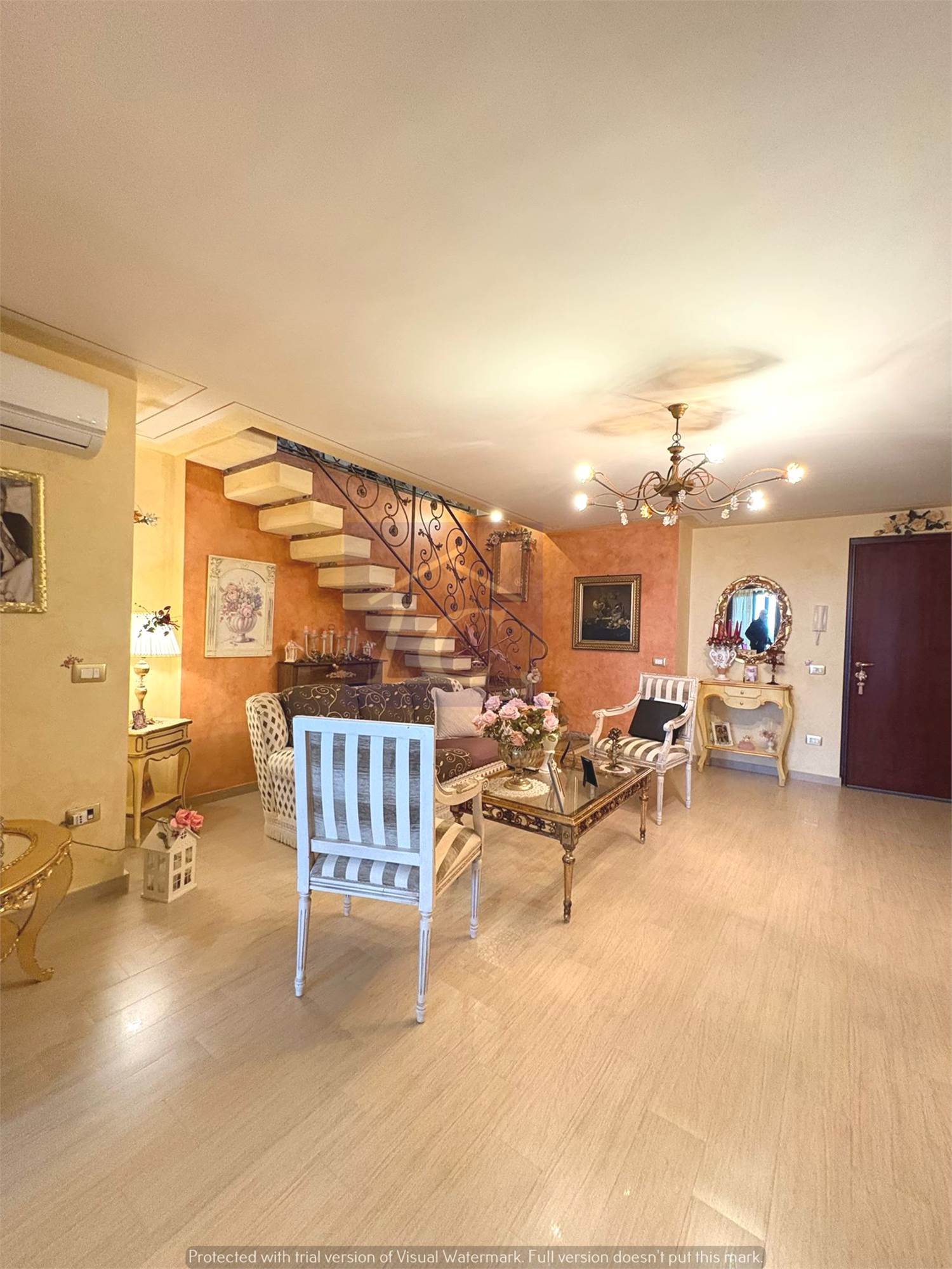 Tramite una scala interna, in marmo indiano e ringhiere in ferro battuto, si accede al piano superiore composto da saletta, una camera matrimoniale con apertura su balcone, camera singola, un bagno con box doccia, un bagno con vasca ed un terrazzino.