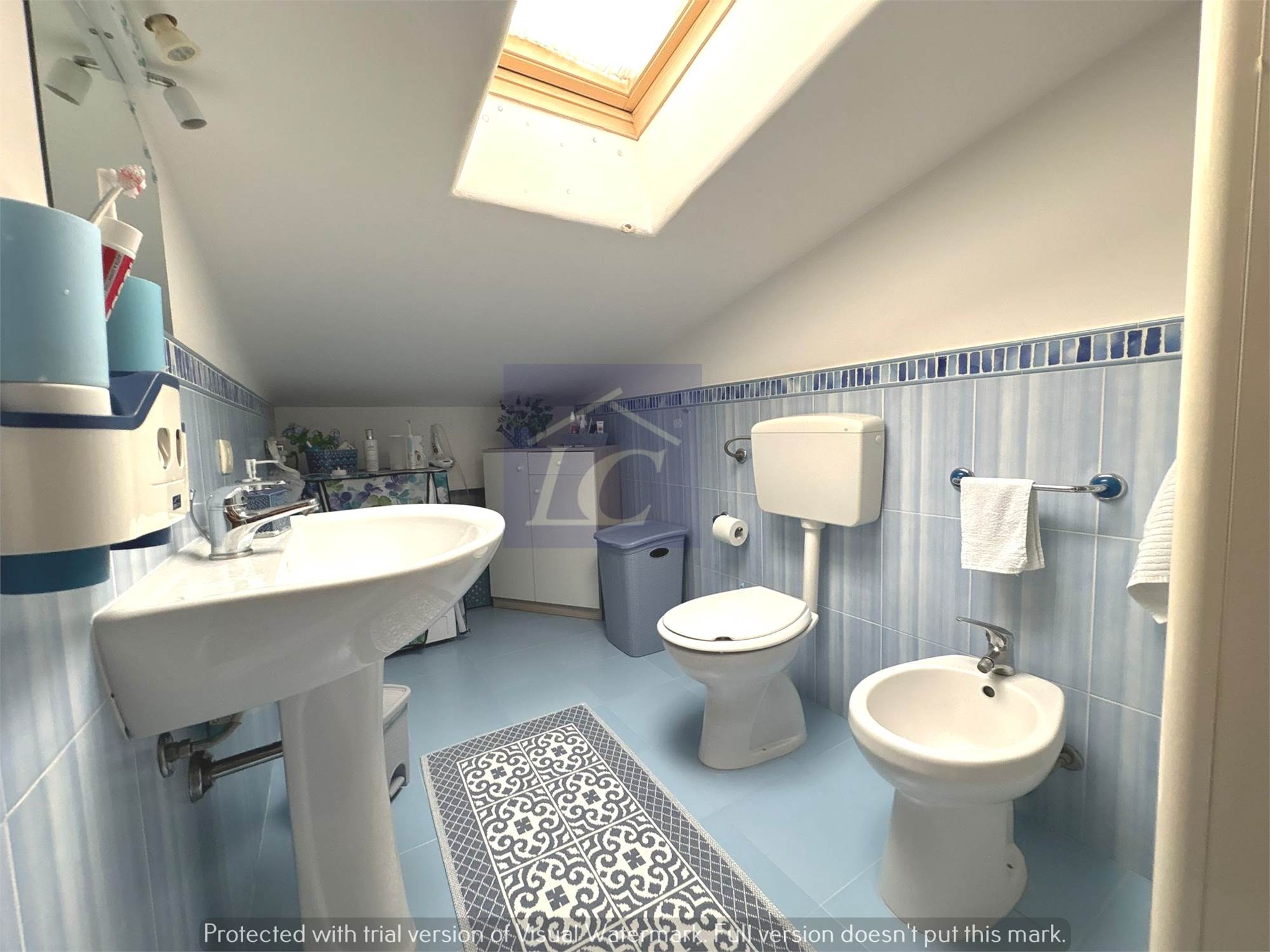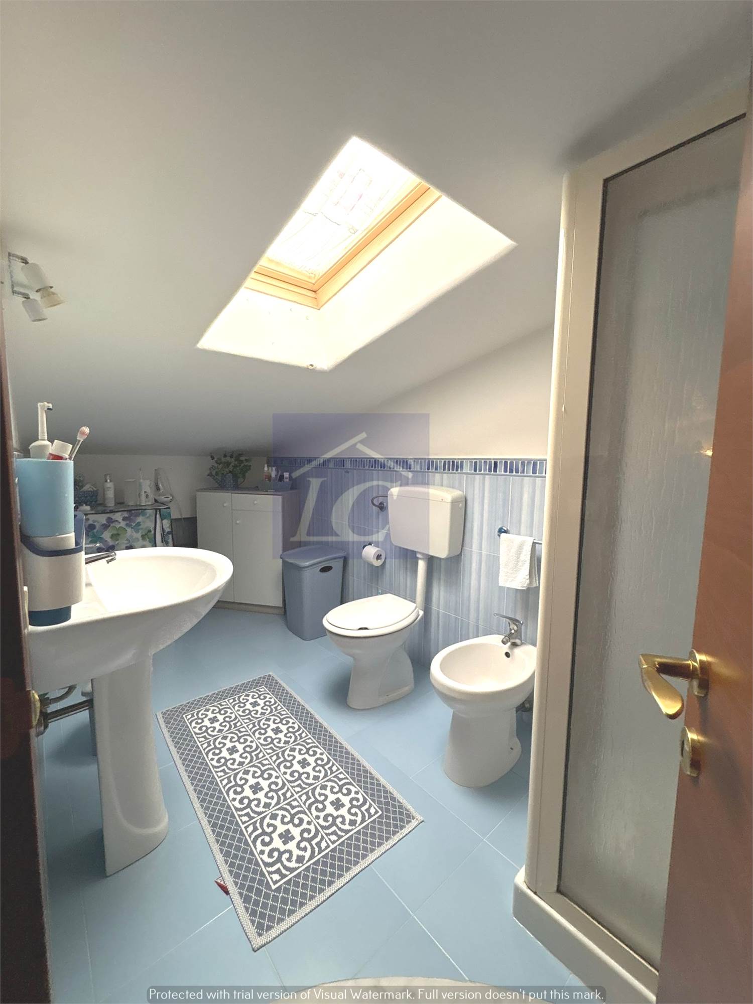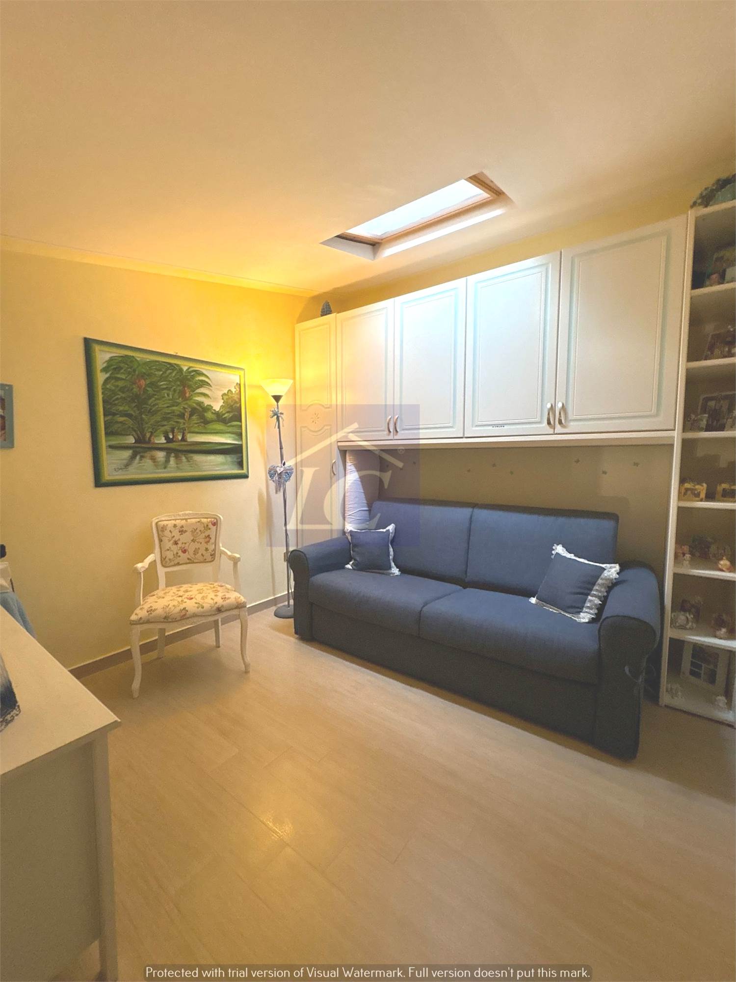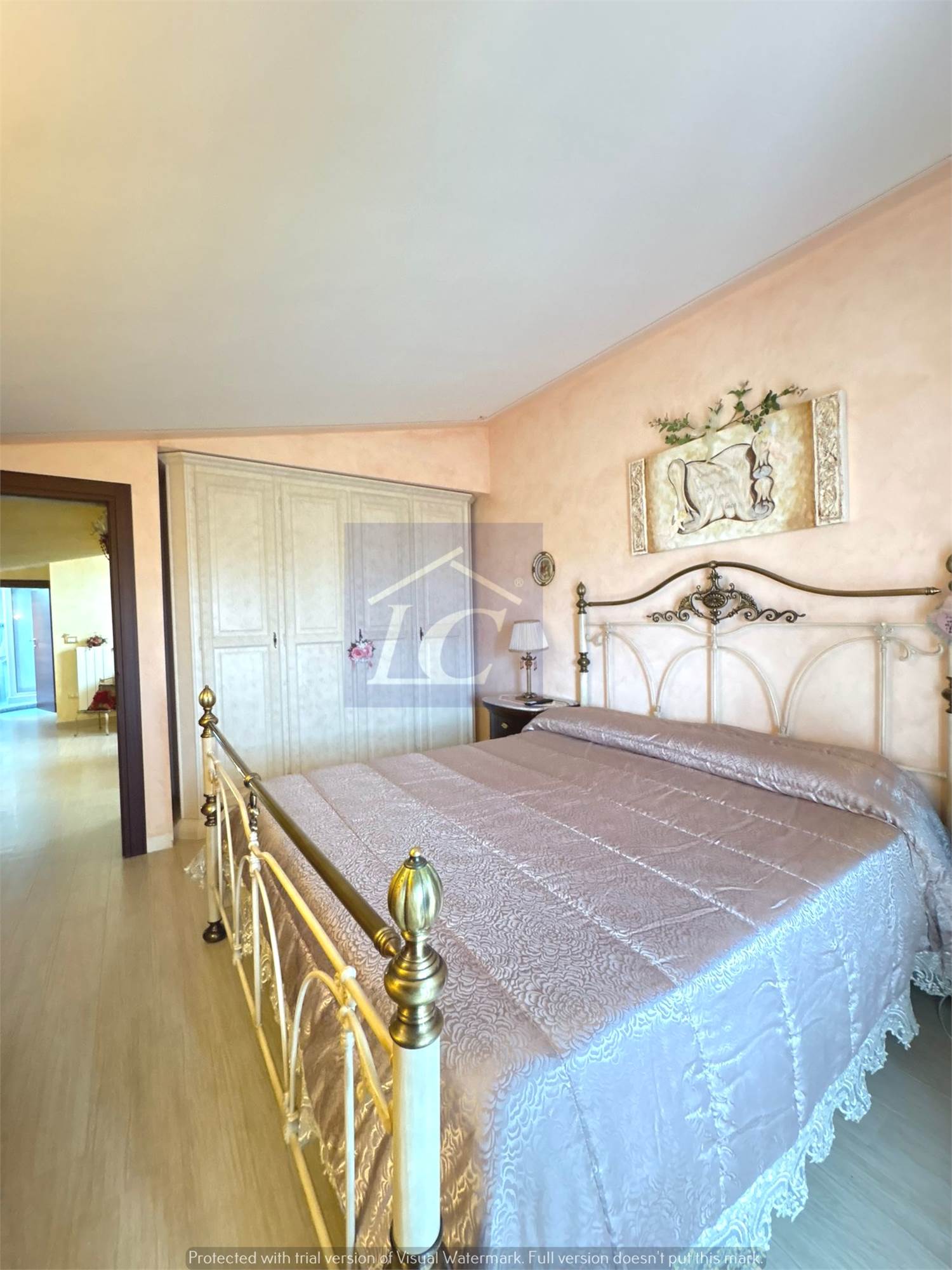 Tramite una scala interna, in marmo indiano e ringhiere in ferro battuto, si accede al piano superiore composto da saletta, una camera matrimoniale con apertura su balcone, camera singola, un bagno con box doccia, un bagno con vasca ed un terrazzino.