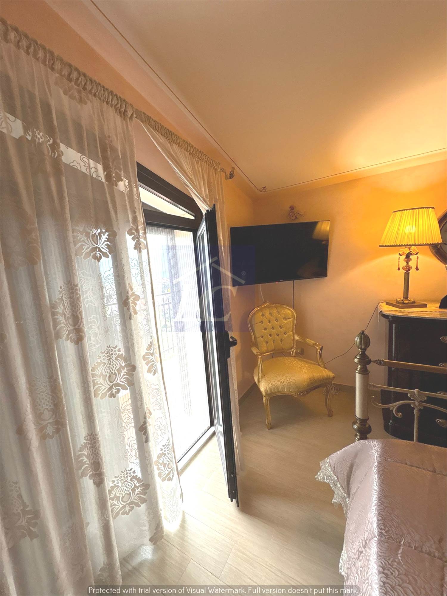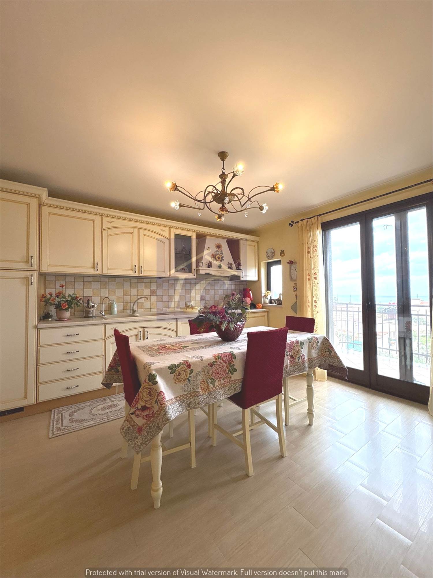 L'immobile si sviluppa su due livelli ed è così composto: ingresso su ampio soggiorno separato dalla cucina abitabile, con portafinestra su balcone panoramico, da una elegante porta in legno e vetro decorato.