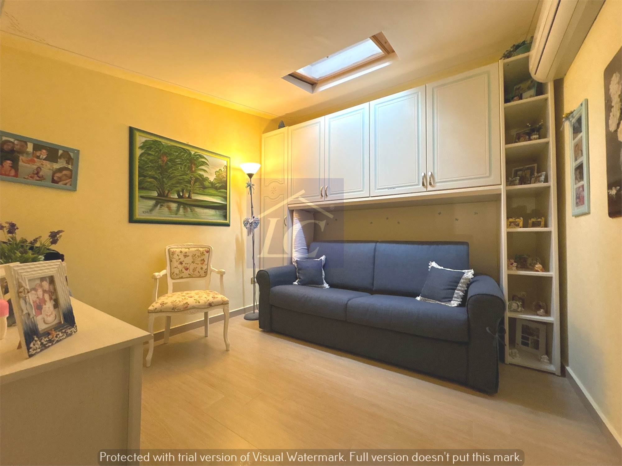 L'unità è rifinita con materiale di pregio con porta blindata, infissi in alluminio e vetro camera, impianto di riscaldamento con piastre radianti alimentate da metano, climatizzatori.
