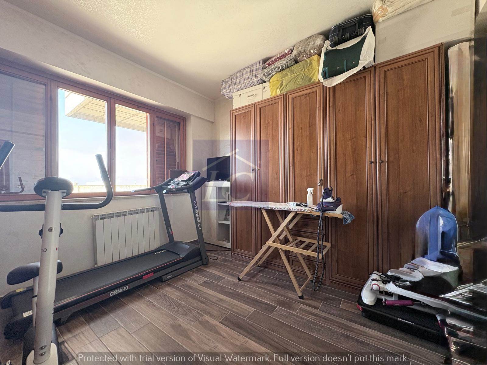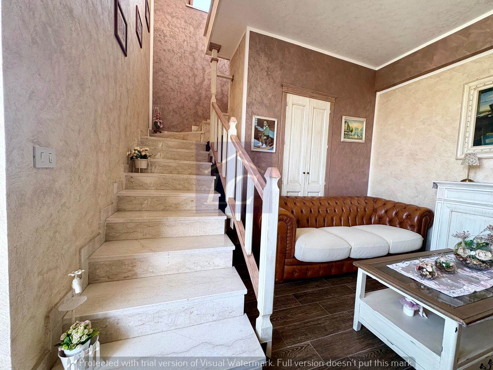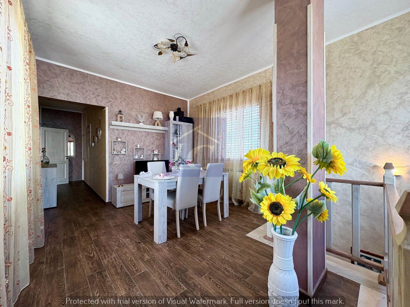 Tramite un'elegante scala in marmo si accede al piano superiore composto da un disimpegno attrezzato a salotto, corridoio con armadio a muro, ampia zona living con cucina a vista e apertura su terrazzo panoramico, tre camere da letto matrimoniali, un bagno con doccia ed un vano lavanderia.
