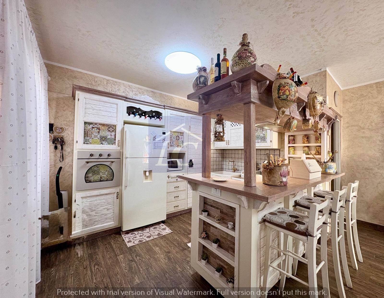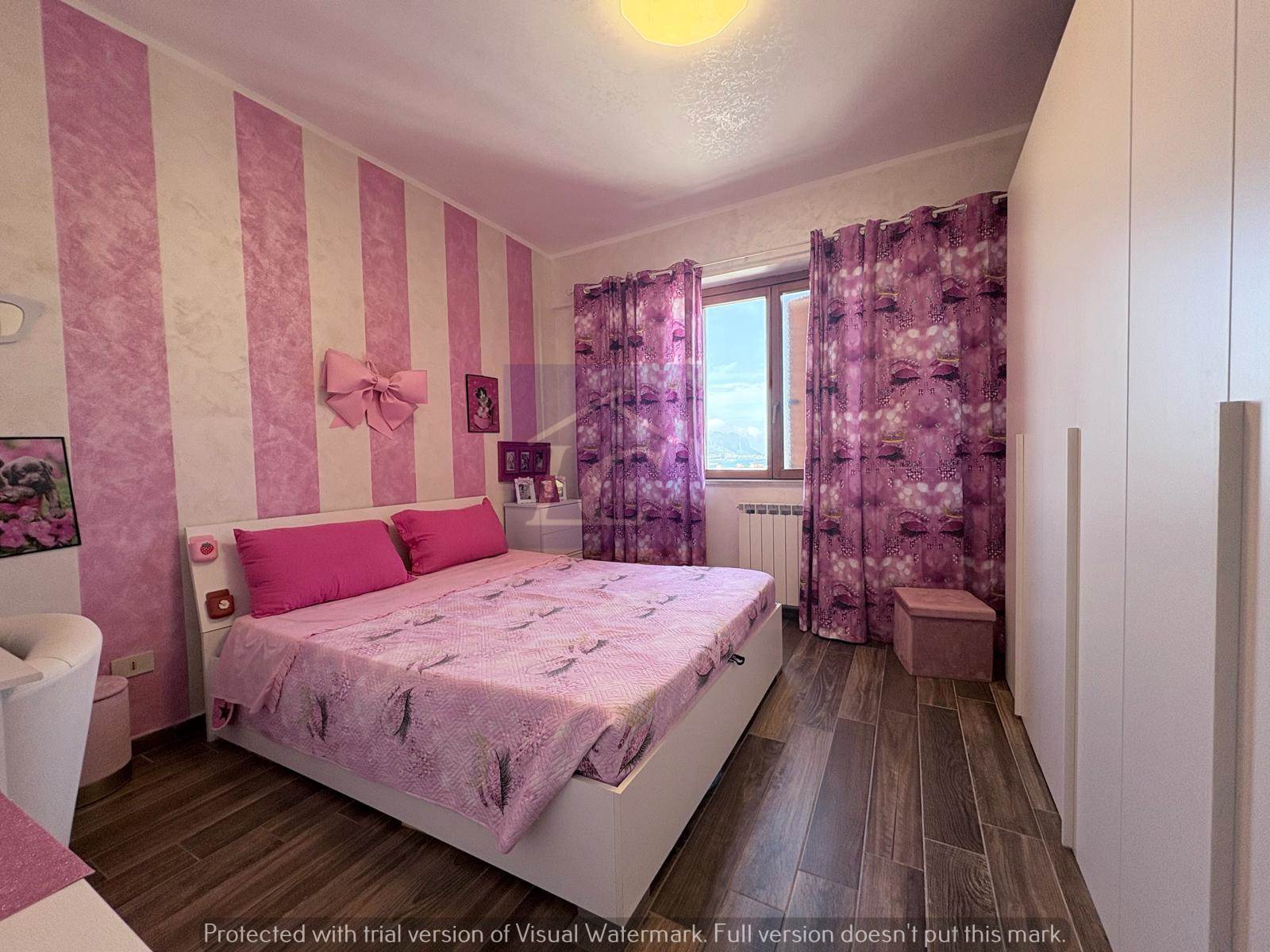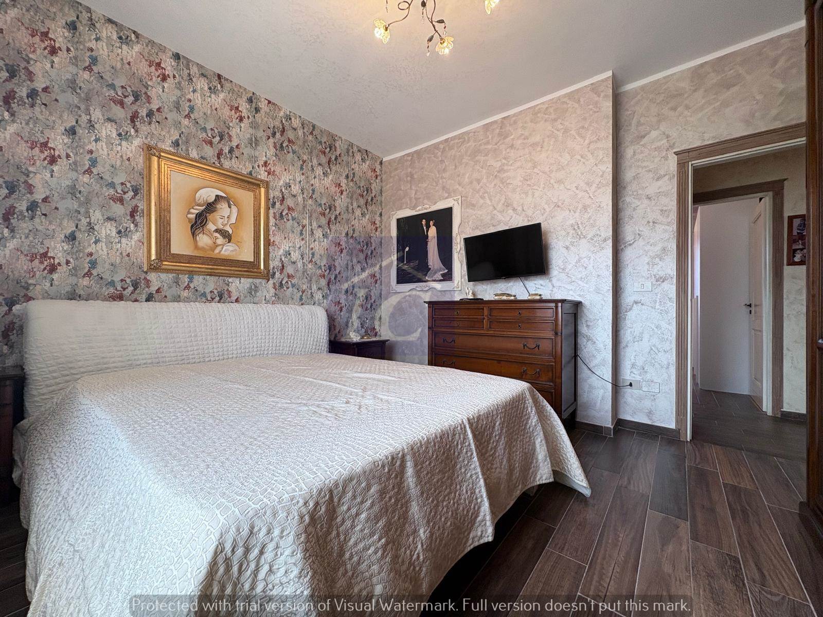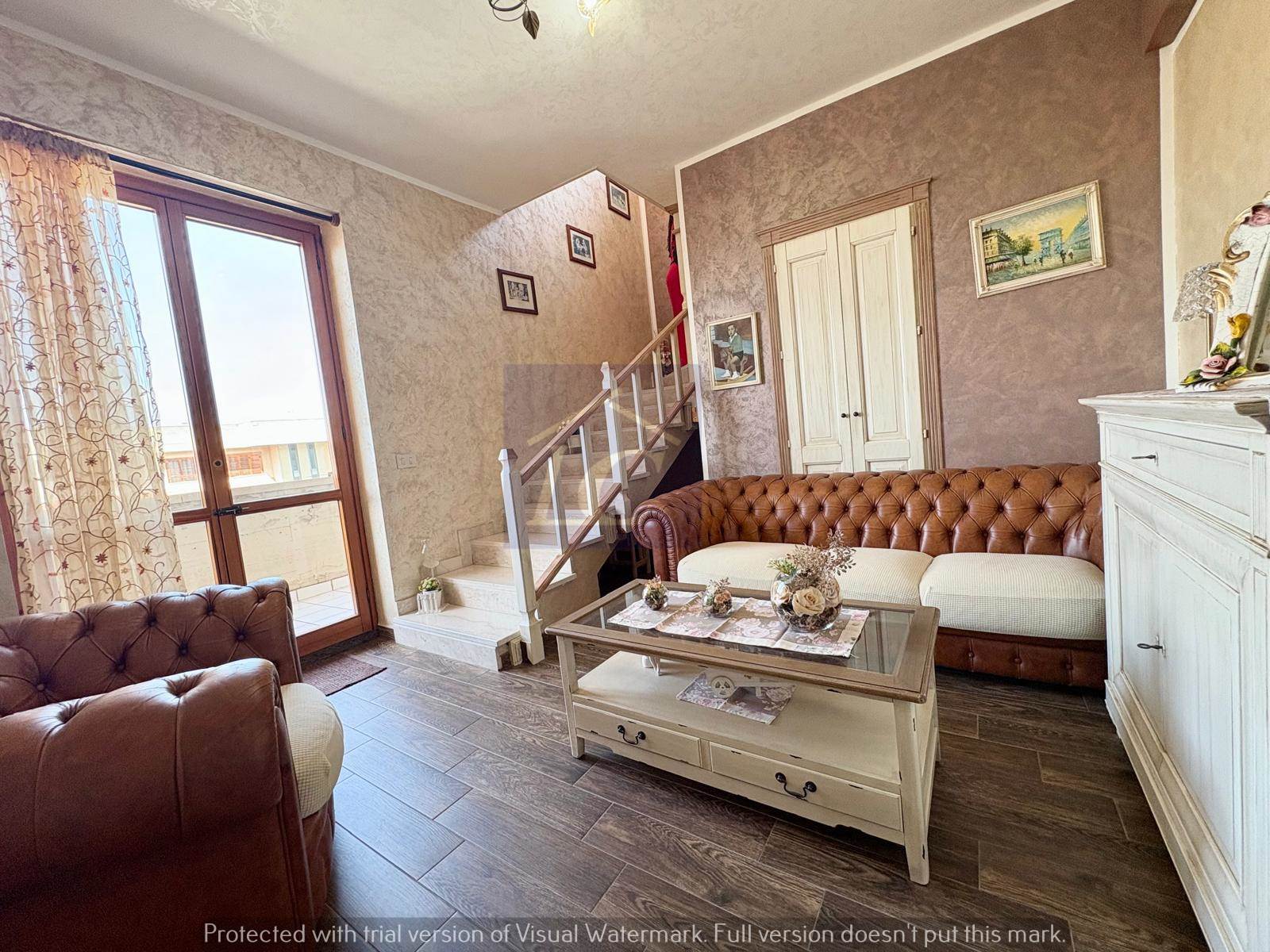 Tramite un'elegante scala in marmo si accede al piano superiore composto da un disimpegno attrezzato a salotto, corridoio con armadio a muro, ampia zona living con cucina a vista e apertura su terrazzo panoramico, tre camere da letto matrimoniali, un bagno con doccia ed un vano lavanderia.